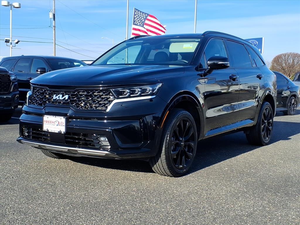 Used 2023 Kia Sorento SX I4 Turbocharged at Freehold Dodge & Ram serving Englishtown NJ 07726Clean CARFAX. Apple CarPlay & Android Auto, Front dual zone A/C, Heated Front Bucket Seats, Power Liftgate, Power moonroof, Wheels: 8.5J x 20 Gloss Black Alloy.