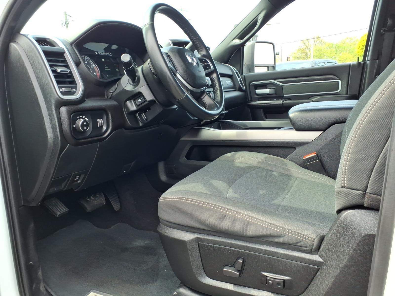 Used 2023 Ram 3500 Big Horn Crew Cab 4x4 Long Box in Bright White Clear-Coat with Black interior. Equipped with a 6.7L Cummins High Output Turbo Diesel and 6-speed Aisin HD automatic transmission, this heavy-duty pickup is built for towing, hauling, and serious work use. Sticker highlights include dual rear wheels, automatic-leveling rear air suspension, Level 2 Equipment Group, Uconnect 5 Nav with 8.4-inch touchscreen, Premium Lighting Group, Sport Appearance Package, Snow Plow Prep Group, and trailer brake controller.Cummins HO Turbo Diesel6-speed Aisin HD automatic4x4 Crew Cab Long BoxDual rear wheelsRear air suspensionUconnect 5 Nav 8.4-inch touchscreenParkSense front/rear park assistHeated front seatsHeated steering wheelTrailer brake controllerAvailable for shoppers near Freehold, Farmingdale, and Colts Neck looking for a used Ram 3500 with diesel power and heavy-duty capability.