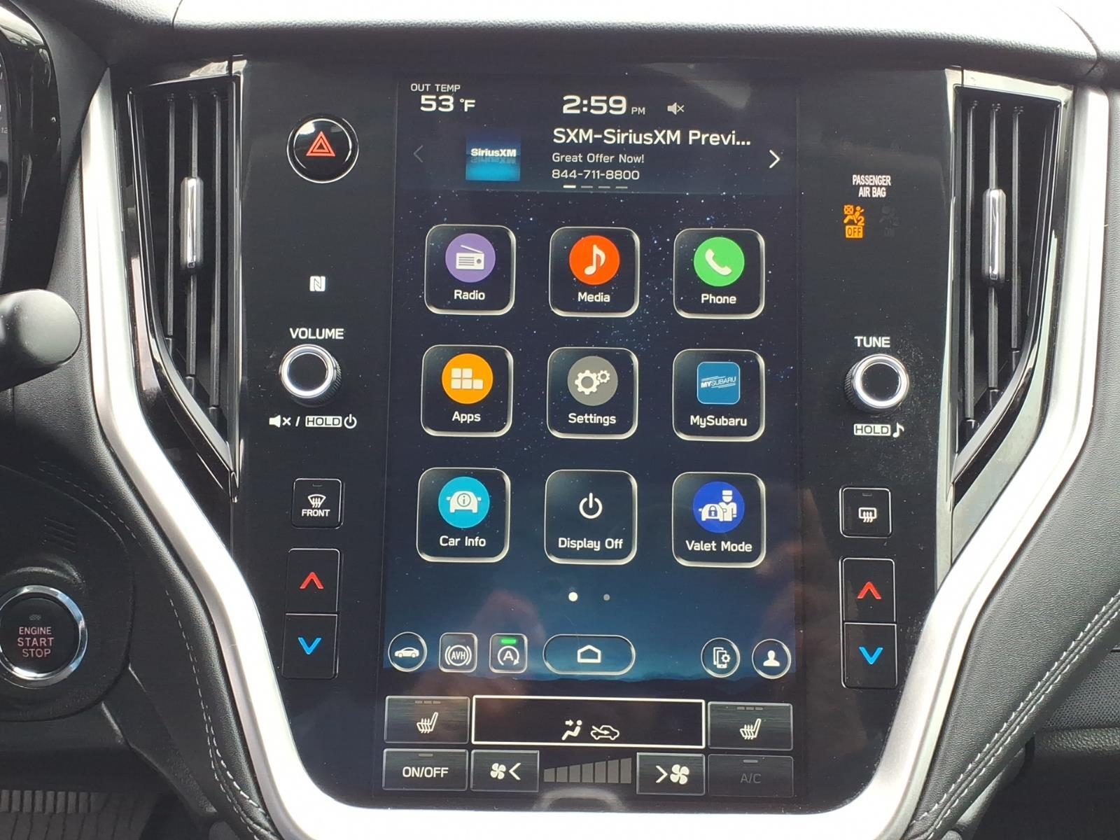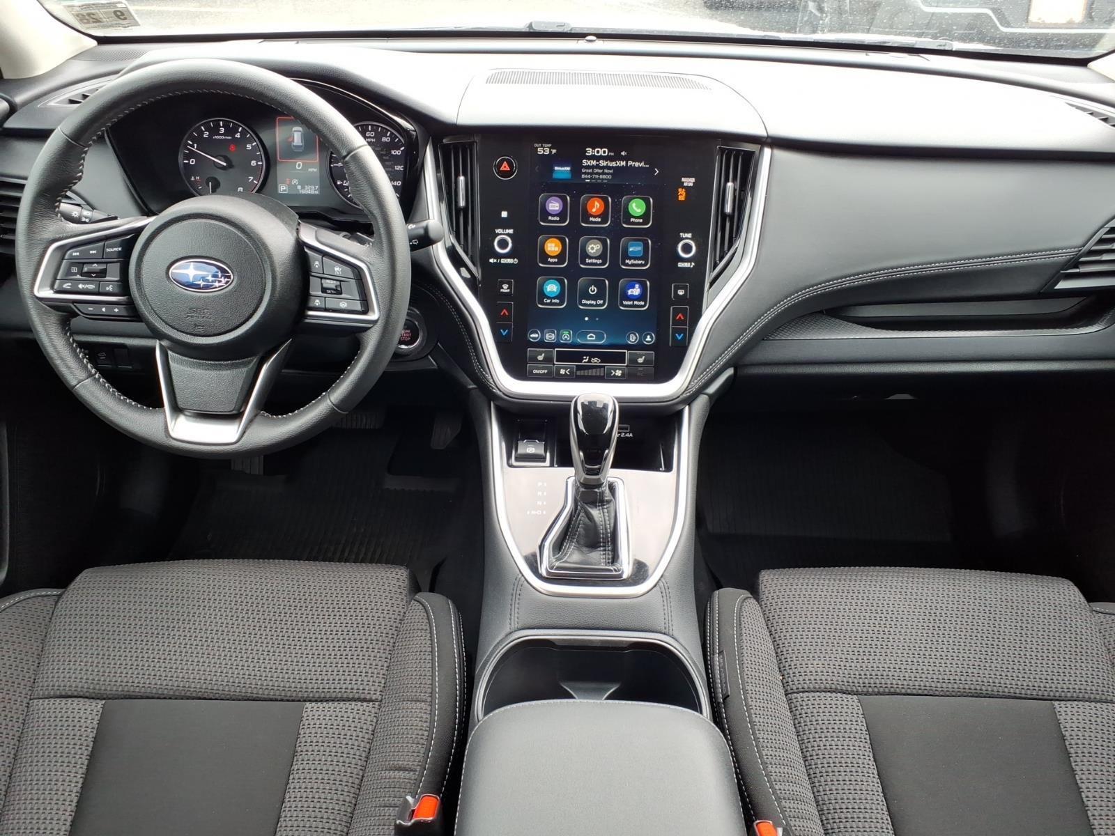 Used 2024 Subaru Outback Premium (RDD) (VIN: 4S4BTADC5R3145004). Symmetrical AWD, 2.5L BOXER w/ Auto Start Stop, Lineartronic CVT w/ 8-speed manual mode, X-MODE, 8.7 ground clearance, 11.6 STARLINK Multimedia Plus, and Advanced Adaptive Cruise Control w/ Lane Centering. Option Package 13 adds Automatic Emergency Steering, Blind Spot Detection/RCTA, Keyless Access/Push Button Start (PIN code access), and Hands-Free Power Rear Gate. Accessories listed include auto-dimming HomeLink mirror, splash guards, door edge guards, rear bumper cover, all-weather liners, and cargo net.