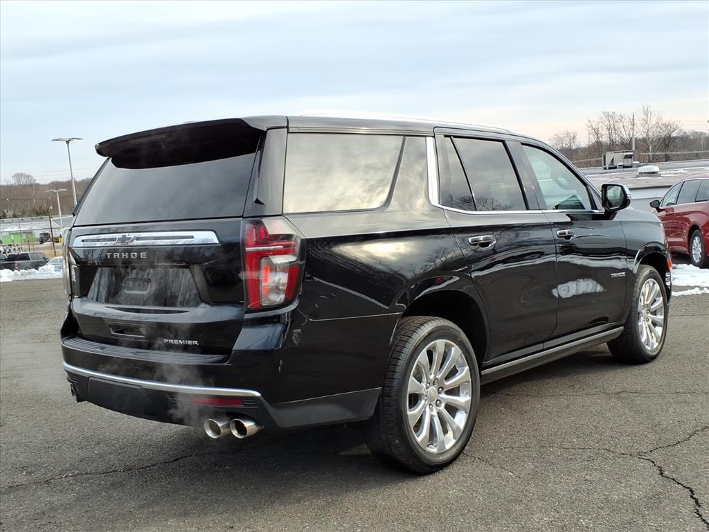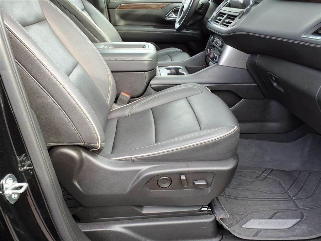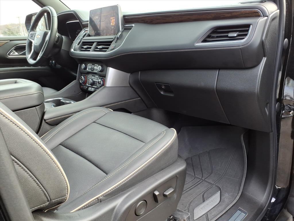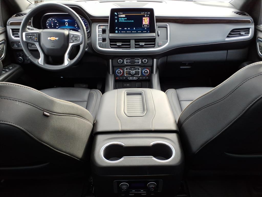 2023 Chevrolet Tahoe Premier Black 10-Speed Automatic with Overdrive 4D Sport Utility EcoTec3 5.3L V8 4WD CARFAX One-Owner. 1st & 2nd Row Color-Keyed Carpeted Floor Mats, 2-Speed Active Electronic AutoTrac Transfer Case, 3rd Row 60/40 Power-Folding Split-Bench Seat, Adaptive suspension, Apple CarPlay/Android Auto, Auto-Dimming Inside Rear-View Mirror, Auto-leveling suspension, Bose 10-Speaker Centerpoint Surround Audio Sys Ft, Bright Front & Rear Door Sill Plates, Chrome Door Handles w/Body-Color Strip, Chrome Mirror Caps, Color-Keyed Carpeting Floor Covering, Driver & Front Outboard Passenger Airbags, Dual Exhaust System, Dual-Pane Power Panoramic Sunroof, Enhanced Driver Information Center, Floor Console, Hands-Free Rear Power Programmable Liftgate, Heated 2nd Row Outboard Seats, Heated Steering Wheel, Hill Descent Control, Infotainment Display, Lane Change Alert w/Side Blind Zone Alert, LED Daytime Running Lamps, Magnetic Ride Control Suspension, Memory Settings, Outside Heated Power-Adjustable Mirrors, Power Liftgate, Power Release 2nd Row Bucket Seats, Power Tilt & Telescopic Steering Column, Preferred Equipment Group 1LZ, Rear Cross Traffic Alert, Remote Start, Safety Alert Seat, Set of 4 Wheel Locks (LPO), SiriusXM Radio w/360L, Speed-sensing steering, Universal Home Remote, Wheels: 22 x 9 Polished Aluminum (RVA), Wireless Charging, Wrapped Steering Wheel.