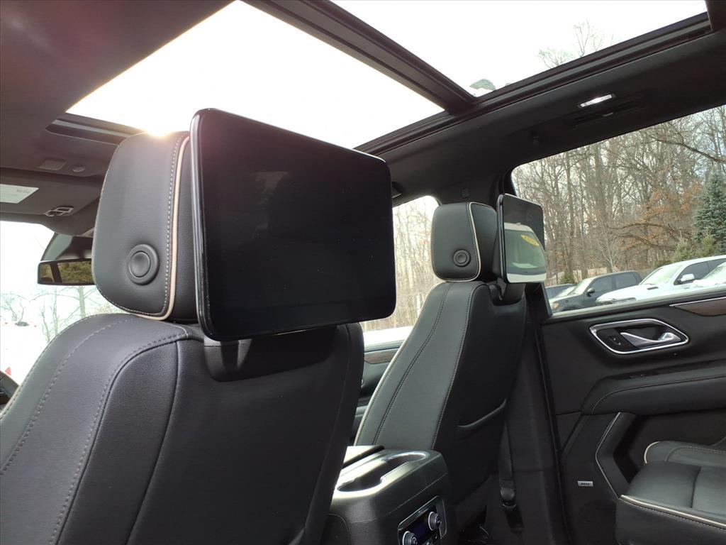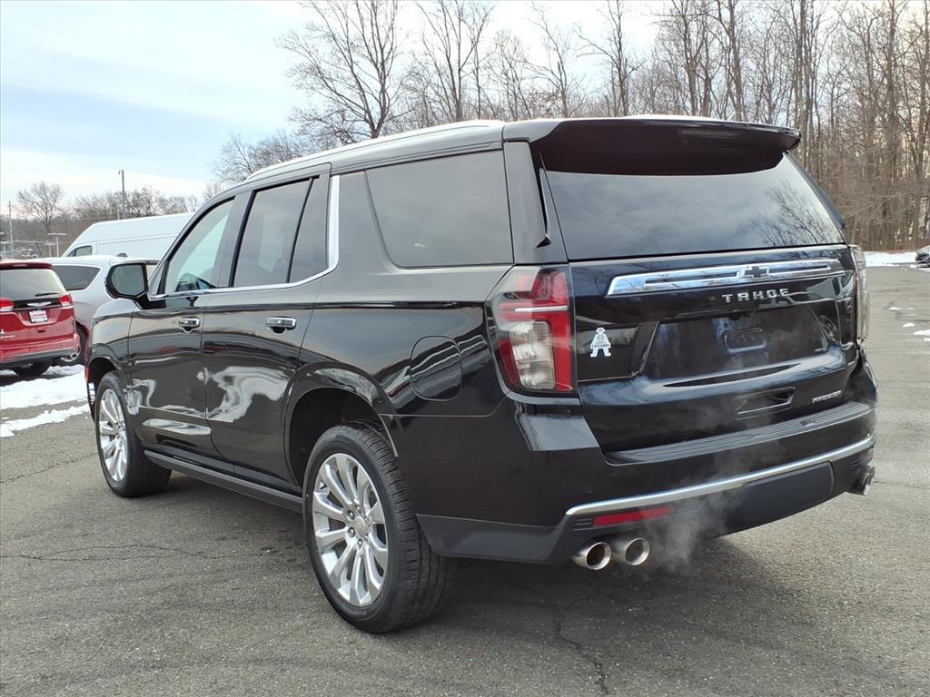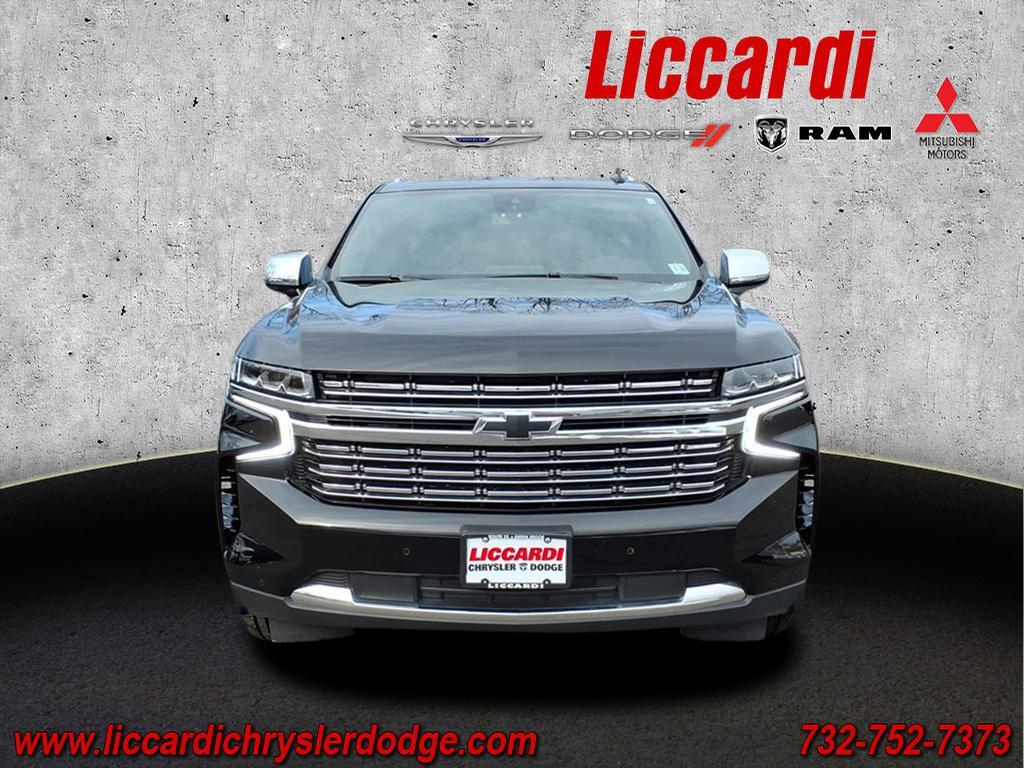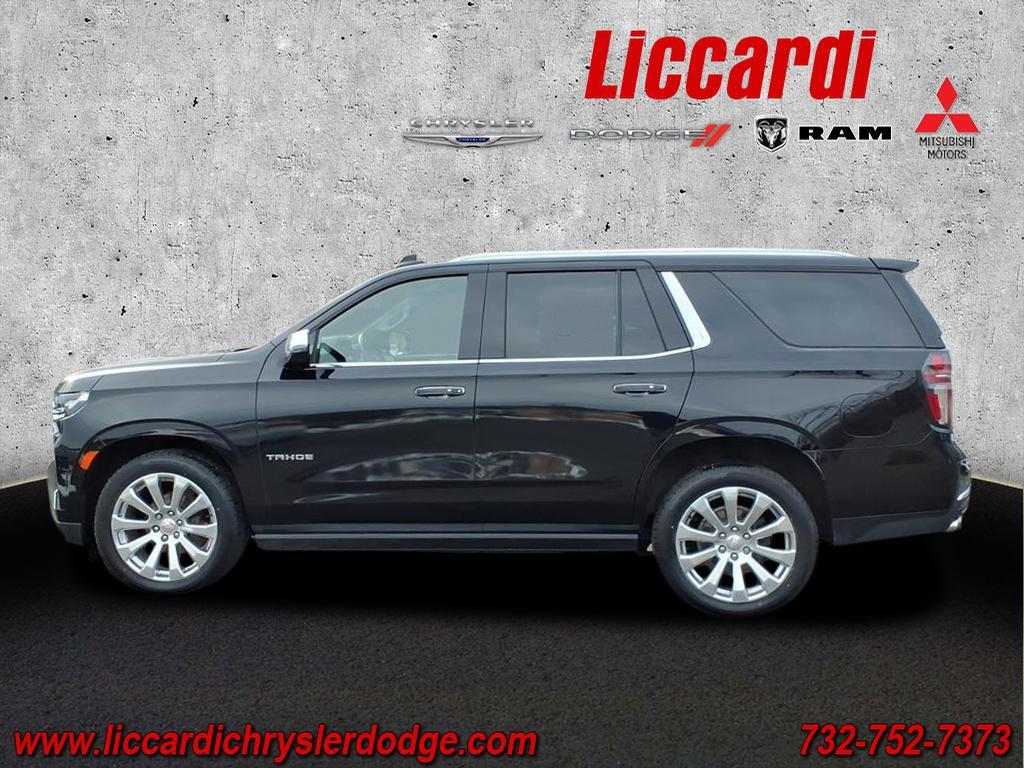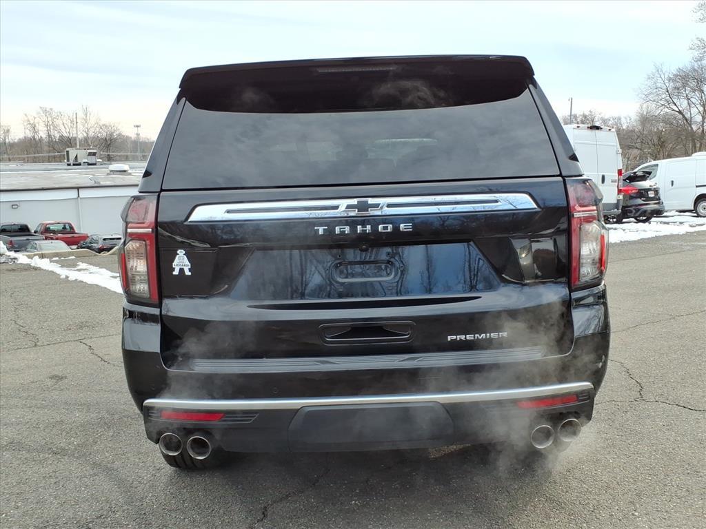 2023 Chevrolet Tahoe Premier Black 10-Speed Automatic with Overdrive 4D Sport Utility EcoTec3 5.3L V8 4WD CARFAX One-Owner. 1st & 2nd Row Color-Keyed Carpeted Floor Mats, 2-Speed Active Electronic AutoTrac Transfer Case, 3rd Row 60/40 Power-Folding Split-Bench Seat, Adaptive suspension, Apple CarPlay/Android Auto, Auto-Dimming Inside Rear-View Mirror, Auto-leveling suspension, Bose 10-Speaker Centerpoint Surround Audio Sys Ft, Bright Front & Rear Door Sill Plates, Chrome Door Handles w/Body-Color Strip, Chrome Mirror Caps, Color-Keyed Carpeting Floor Covering, Driver & Front Outboard Passenger Airbags, Dual Exhaust System, Dual-Pane Power Panoramic Sunroof, Enhanced Driver Information Center, Floor Console, Hands-Free Rear Power Programmable Liftgate, Heated 2nd Row Outboard Seats, Heated Steering Wheel, Hill Descent Control, Infotainment Display, Lane Change Alert w/Side Blind Zone Alert, LED Daytime Running Lamps, Magnetic Ride Control Suspension, Memory Settings, Outside Heated Power-Adjustable Mirrors, Power Liftgate, Power Release 2nd Row Bucket Seats, Power Tilt & Telescopic Steering Column, Preferred Equipment Group 1LZ, Rear Cross Traffic Alert, Remote Start, Safety Alert Seat, Set of 4 Wheel Locks (LPO), SiriusXM Radio w/360L, Speed-sensing steering, Universal Home Remote, Wheels: 22 x 9 Polished Aluminum (RVA), Wireless Charging, Wrapped Steering Wheel.
