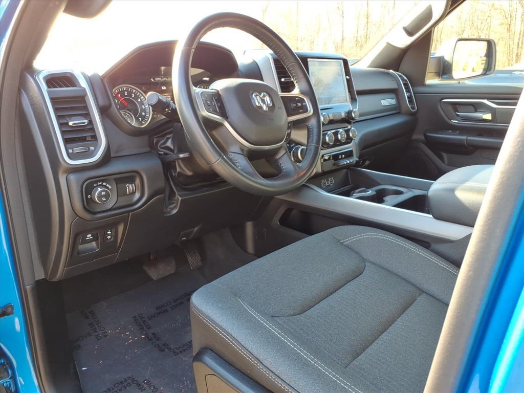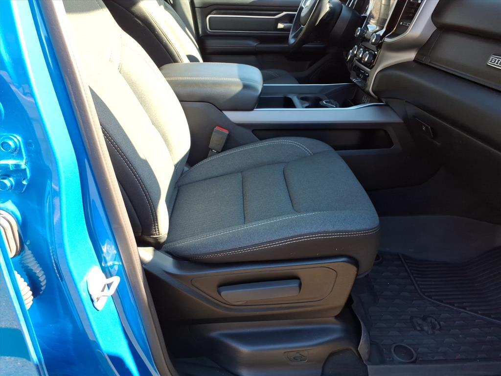 2022 Ram 1500 Big Horn/Lone Star Hydro Blue Pearlcoat 8-Speed Automatic 4D Crew Cab HEMI 5.7L V8 Multi Displacement VVT 4WD CARFAX One-Owner. /// Sport Appearance Package 2nd Row In Floor Storage Bins, 4G LTE Wi-Fi Hot Spot, 8.4 Touchscreen Display, Air Conditioning ATC w/Dual Zone Control, All Plant-Installed Decals, All R1 High Radios, All Radio Equipped Vehicles, Apple CarPlay, Auto-Dimming Exterior Driver Mirror, Auto-Dimming Rear-View Mirror, Big Horn Badge, Big Horn Level 1 Equipment Group, Black Exterior Mirrors, Black Interior Accents, Black Premium Power Mirrors, Bluetooth Handsfree Phone & Audio, Body Color Exterior Mirrors, Body Color Front Bumper, Body Color Premium Power Mirrors, Body Color Rear Bumper w/Step Pads, Bridgestone Brand Tires, Class IV Receiver Hitch, Cluster 3.5 TFT Color Display, Connected Travel & Traffic Services, Connectivity - US/Canada, Convex Wide-Angle Mirror Insert, Deluxe Cloth Bucket Seats, Disassociated Touchscreen Display, Exterior Mirrors Courtesy Lamps, Exterior Mirrors w/Heating Element, Exterior Mirrors w/Supplemental Signals, For Details, Visit DriveUconnect.com, Front fog lights, Global Telematics Box Module (TBM), Glove Box Lamp, Google Android Auto, GPS Antenna Input, GPS Navigation, HD Radio, Heated door mirrors, Illuminated entry, Integrated Center Stack Radio, Integrated Voice Command w/Bluetooth, Power 2-Way Driver Lumbar Adjust, Power 8-Way Driver Seat, Power Adjustable Pedals, Power-Folding Mirrors, Quick Order Package 27Z Big Horn, Radio: Uconnect 5 Nav w/8.4 Display, Radio: Uconnect 5 W w/8.4 Display, Rear Dome w/On/Off Switch Lamp, Rear Power Sliding Window, Rear Window Defroster, SiriusXM Radio Service, SiriusXM Satellite Radio, SiriusXM w/360L, Sport Decal, Sun Visors w/Illuminated Vanity Mirrors, Universal Garage Door Opener, USB Host Flip, Wheels: 20 x 9 Aluminum Chrome Clad (WRK).