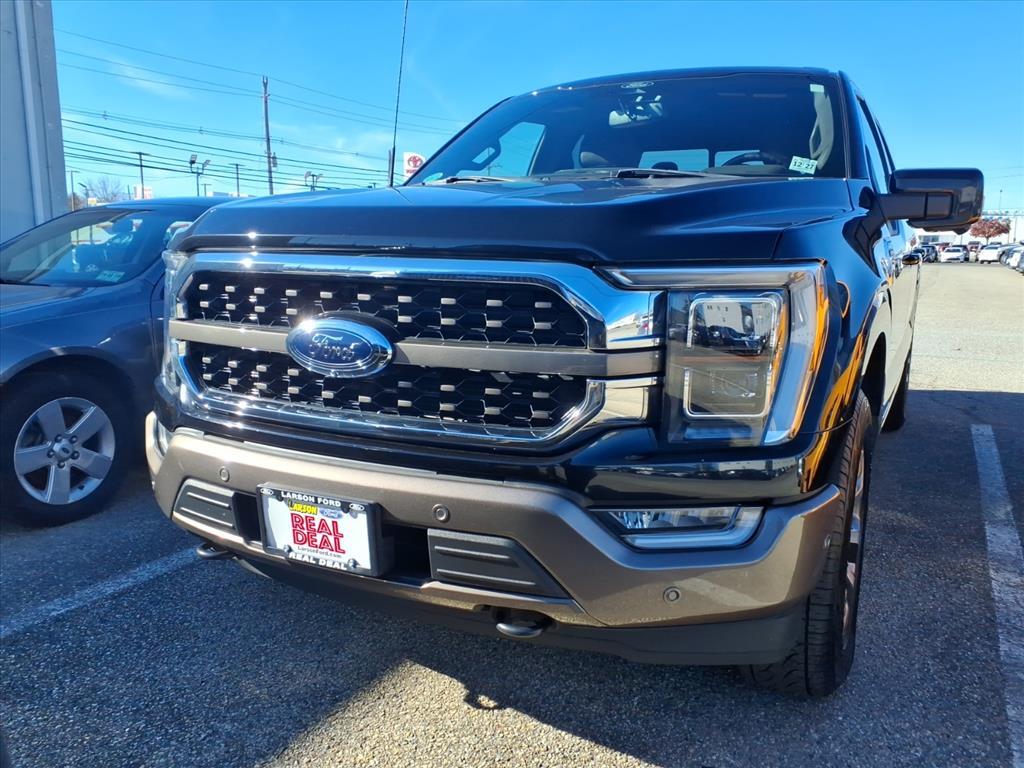 CARFAX 1-Owner. FUEL EFFICIENT 22 MPG Hwy/16 MPG City! Heated Leather Seats, NAV, Sunroof, 4x4, Turbo, Alloy Wheels, Bed Liner, Tow Hitch, ENGINE: 3.5L POWERBOOST FULL-HYBRID V... TOUGH BED SPRAY-IN BEDLINER, TWIN PANEL MOONROOF SERVICE COMPLETEDService Work completed on this Ford F-150 included: Complete Multi-Point Inspection, Oil & Filter Change by a Factory Trained Technicians, Battery Voltage Test, Tires Inspected, Brake Inspection, Emissions System Check, Professional Detailed Inside and Out, Function Test all Lights, Check the Complete Exhaust System, Cooling System Inspection, Transmission Fluid Inspection, Differential Fluid Inspection, Function Test all Options & Accessories. KEY FEATURES INCLUDELeather Seats, Navigation, 4x4, Heated Driver Seat, Heated Rear Seat Ford King Ranch with Agate Black/Stone Gray exterior and Java interior features a V6 Cylinder Engine with 400 HP at 6000 RPM*. OPTION PACKAGESEQUIPMENT GROUP 601A HIGH Radio: B&O Unleashed Sound System by Bang & Olufsen, HD Radio and 18 speakers including subwoofer, Tires: 275/60R20 OWL Automatic Transmission, 275/65R18 OWL all-terrain spare tire, Power-Deployable Running Boards, Replaces step bar, Wheels: 20 Machined-Aluminum, light Caribou painted pockets and King Ranch ornament, Bed Utility Package, BoxLink, 4 premium locking cleats, LED Box Lighting, Tailgate Step w/Tailgate Work Surface, Power Tailgate, Multi-Contour Driver & Passenger Seats, Active Motion, ENGINE: 3.5L POWERBOOST FULL-HYBRID V6 Electronic Locking w/3.73 Axle Ratio, FORD CO-PILOT360 ACTIVE 2.0 forward sensing system, BlueCruise, Active Park Assist 2.0, TWIN PANEL MOONROOF, TOW TECHNOLOGY PACKAGE smart trailer tow connector and BLIS w/trailer tow coverage where BLIS is available, 360 Degree Camera, trailer reverse guidance, Pro Trailer Backup Assist, TOUGH BED SPRAY-IN BEDLINER. BUY WITH CONFIDENCECARFAX 1-Owner Pricing analysis performed on 2/7/2026. Horsepower calculations based on trim engine configuration. Fuel economy calculations based on original manufacturer data for trim engine configuration. Please confirm the accuracy of the included equipment by calling us prior to purchase.