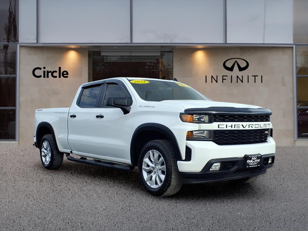 2021 Chevrolet Silverado 1500 Crew Cab Built to Work, Ready to Roll This 2021 Chevy Silverado 1500 Crew Cab delivers the strength and versatility you expect from a full-size truck. Equipped with a spray-in bedliner, black assist steps, bold 20 wheels, plus dual 120V outlets for added convenience, its ready for both job sites and weekend projects. With 115K miles and plenty of life left, this Silverado is a smart value for anyone needing capability without the new-truck price. Available now at Circle INFINITI stop in or message us today! Don't forget to ask about Circle INFINITI's exclusive Auto Awards Program.