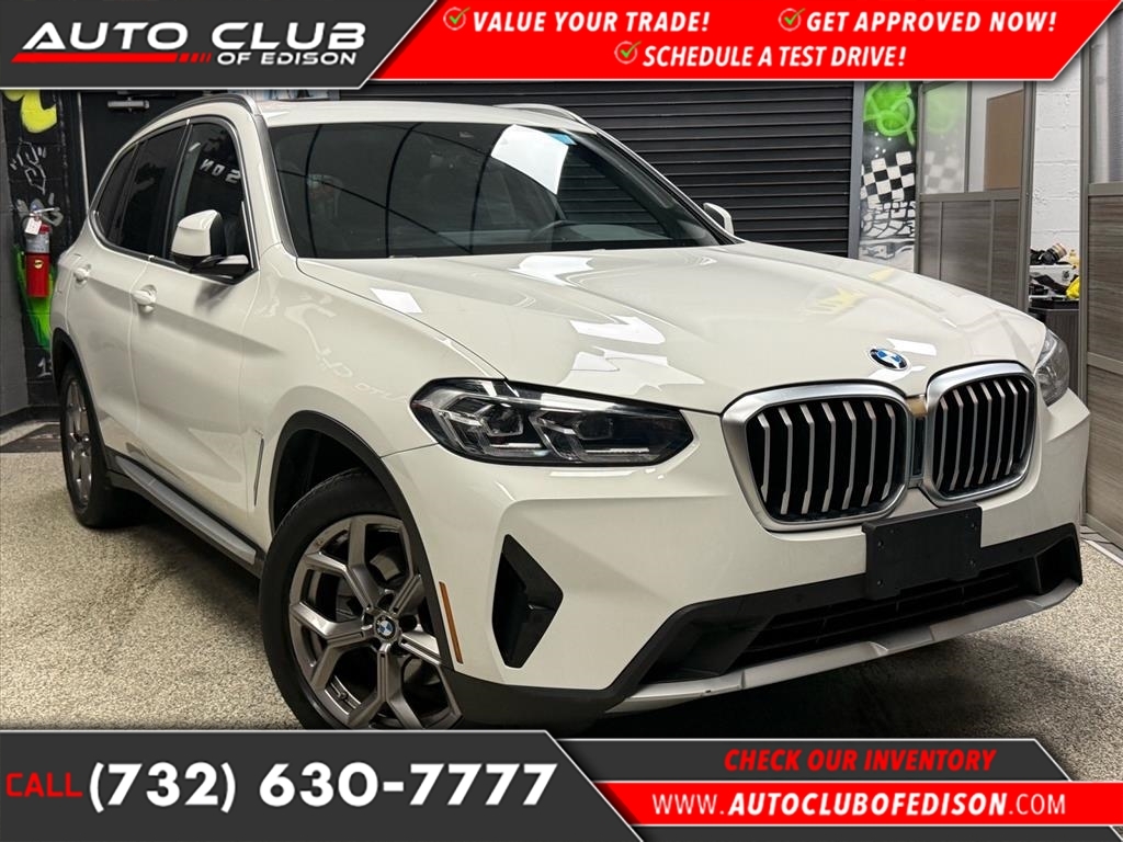 NJs #1 used car dealership | Auto Club of Edison | affordable vehicles, luxury, exotic, and performance cars for sale | Edison, NJ | call (732) 630-7777 This vehicle is a BMW X3, a Sports Activity Vehicle with all wheel drive, and a 2022 model year. It has low mileage with 20,644 miles and is powered by a 2.0 liter Turbo I4 248hp 258 lb-ft engine with turbocharging. It offers fuel economy in city of 21 mpg and fuel economy on highway of 28 mpg, making it an efficient choice for your daily commute. It also has a crash test rating of 5 out of 5 stars, making it safe for all passengers. Other features include blind spot sensor, hill start assist, full time four wheel drive, navigation system with voice recognition, and touch screen display. This car is truly one of a kind and will surely turn heads wherever you go! Contact Details: Auto Club of Edison Sales Team, 540 US 1, Edison, NJ, 08817, sales@autoclubofedison.com, (732) 630-7777. for details or to browse our full inventory of affordable vehicles, luxury, exotic, and performance cars, contact auto club of edison today. proudly serving edison, woodbridge, metuchen, new brunswick, iselin, south plainfield, piscataway, rahway, clark, plainfield, scotch plains, westfield, cranford, linden, carteret, sayreville, trenton, little silver, elizabeth, somerset, union, newark, bayonne, irvington, east orange, new york city, and philadelphia. call now at (732) 630-7777