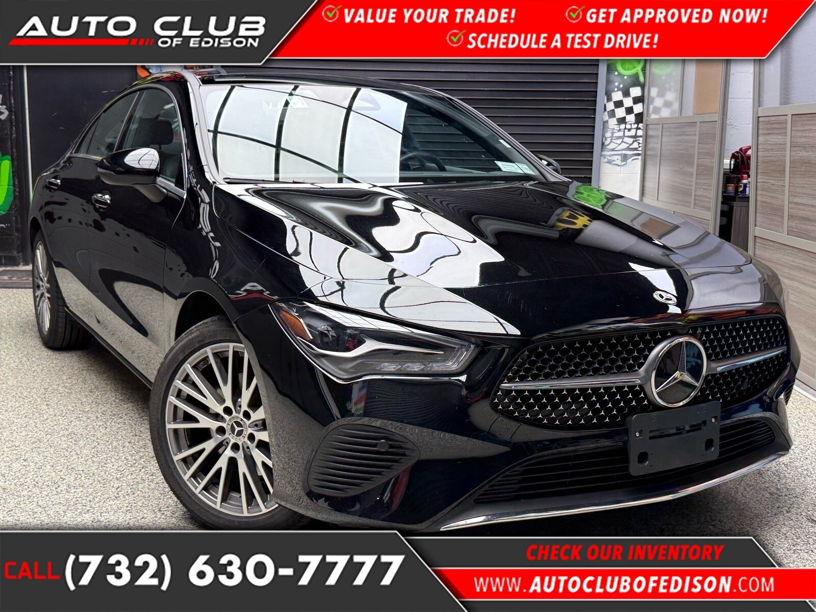 NJs #1 used car dealership | Auto Club of Edison | affordable vehicles, luxury, exotic, and performance cars for sale | Edison, NJ | call (732) 630-7777 This vehicle is a 2025 Mercedes-Benz Coupe all wheel drive, CLA 250 4MATIC. It has been driven 37,469 miles and is equipped with a 2.0 liter Mild Hybrid E-Turbo I4 221hp 258 lb-ft engine, direct injection. The fuel economy in city is 25 mpg and fuel economy on highway is 34 mpg. This vehicle also features blind spot sensor, hill start assist, and full time four wheel drive for added safety and convenience. With its advanced technology and impressive performance, this car is sure to turn heads on the road. Contact Details: Auto Club of Edison Sales Team, 540 US 1, Edison, NJ, 08817, sales@autoclubofedison.com, (732) 630-7777. for details or to browse our full inventory of affordable vehicles, luxury, exotic, and performance cars, contact auto club of edison today. proudly serving edison, woodbridge, metuchen, new brunswick, iselin, south plainfield, piscataway, rahway, clark, plainfield, scotch plains, westfield, cranford, linden, carteret, sayreville, trenton, little silver, elizabeth, somerset, union, newark, bayonne, irvington, east orange, new york city, and philadelphia. call now at (732) 630-7777