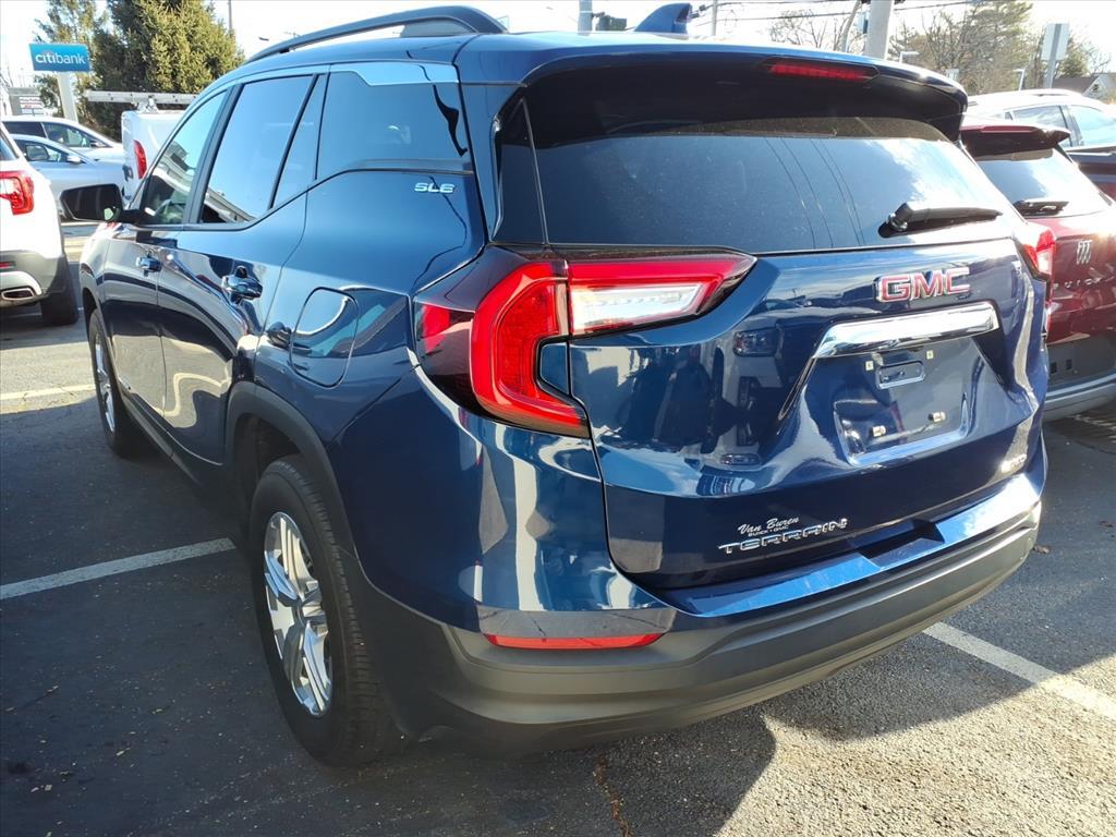 The 2022 GMC Terrain SLE is a certified pre-owned SUV all wheel drive that offers a low mileage of 22,486 miles. Boasting a 1.5 liter 4 cylinder turbocharged engine, this vehicle has low emissions and low fuel consumption, making it an environmentally friendly choice. The exterior of the car is marine metallic and the interior is finished in a jet black color. It has a 5 out of 5 star crash test rating and comes equipped with many features such as touch screen display, Bluetooth audio connection, hill start assist, and Bluetooth phone connectivity. The Terrain SLE is the perfect car for anyone looking for an all around reliable vehicle that offers great performance and style. Contact Details: Van Buren Buick GMC, 2257Jerico Turnpike, Garden City Park, NY, 11040, 119260@gmtorque.com, 8662235291.