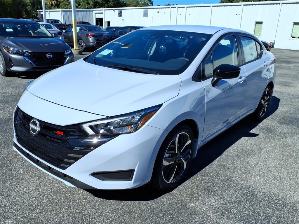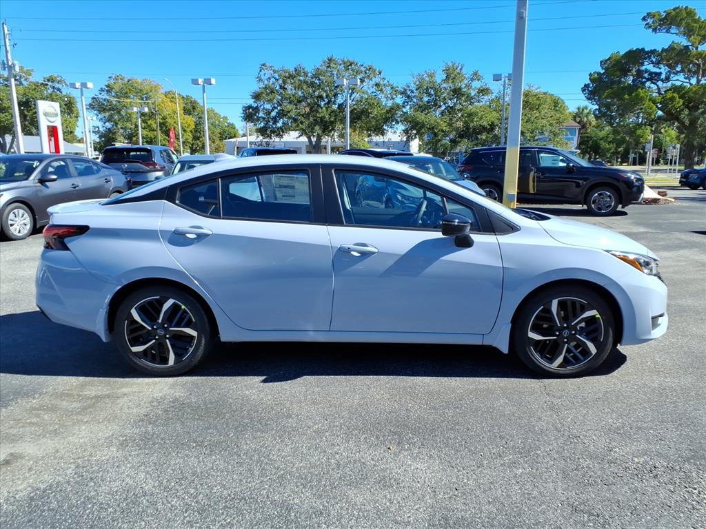 Gray Sky Pearl 2025 Nissan Versa 1.6 SR FWD CVT 1.6L I4 DOHC 16V 32/40 City/Highway MPG This Vehicle Features Trunk Package (Shopping Bag Hooks and Trunk Net), 17Aluminum Alloy Wheels, 6 Speakers, ABS brakes, Air Conditioning, Alloy wheels, AM/FM radio: SiriusXM, Apple CarPlay/Android Auto, Auto High-beam Headlights, Automatic temperature control, Blind Spot Warning, Brake assist, Bumpers: body-color, Cargo Blocks, Carpeted Floor Mats & Trunk Mat (5-Piece Set), Delay-off headlights, Driver door bin, Driver vanity mirror, Dual front impact airbags, Dual front side impact airbags, Electronic Stability Control, Emergency communication system, Front anti-roll bar, Front Bucket Seats, Front Center Armrest, Front reading lights, Front wheel independent suspension, Fully automatic headlights, Heated door mirrors, Heated Front Bucket Seats, Heated front seats, Illuminated entry, Knee airbag, Leather steering wheel, Low tire pressure warning, Occupant sensing airbag, Outside temperature display, Overhead airbag, Panic alarm, Passenger door bin, Passenger vanity mirror, Power door mirrors, Power steering, Power windows, Premium Paint, Radio data system, Radio: AM/FM Audio System, Rear Parking Sensors, Rear side impact airbag, Rear window defroster, Remote keyless entry, Speed control, Splash Guards, Split folding rear seat, Spoiler, SR Fabric Seat Trim, Steering wheel mounted audio controls, Tachometer, Telescoping steering wheel, Tilt steering wheel, Traction control, Trip computer, Turn signal indicator mirrors, USB Charging Cable Set, and Variably intermittent wipers. Price includes: $750 - Nissan MY25 Bonus Cash. Exp. 03/02/2026