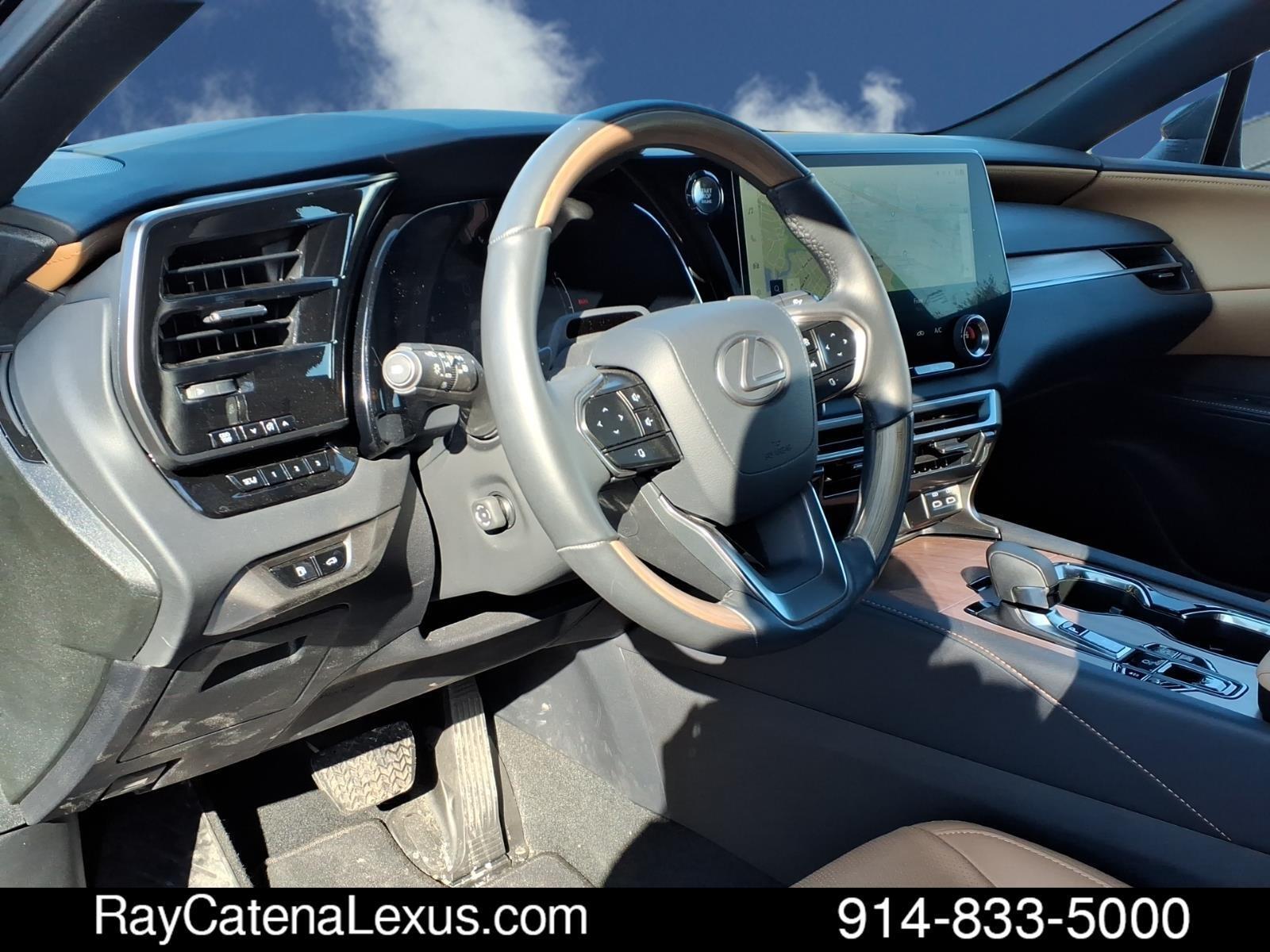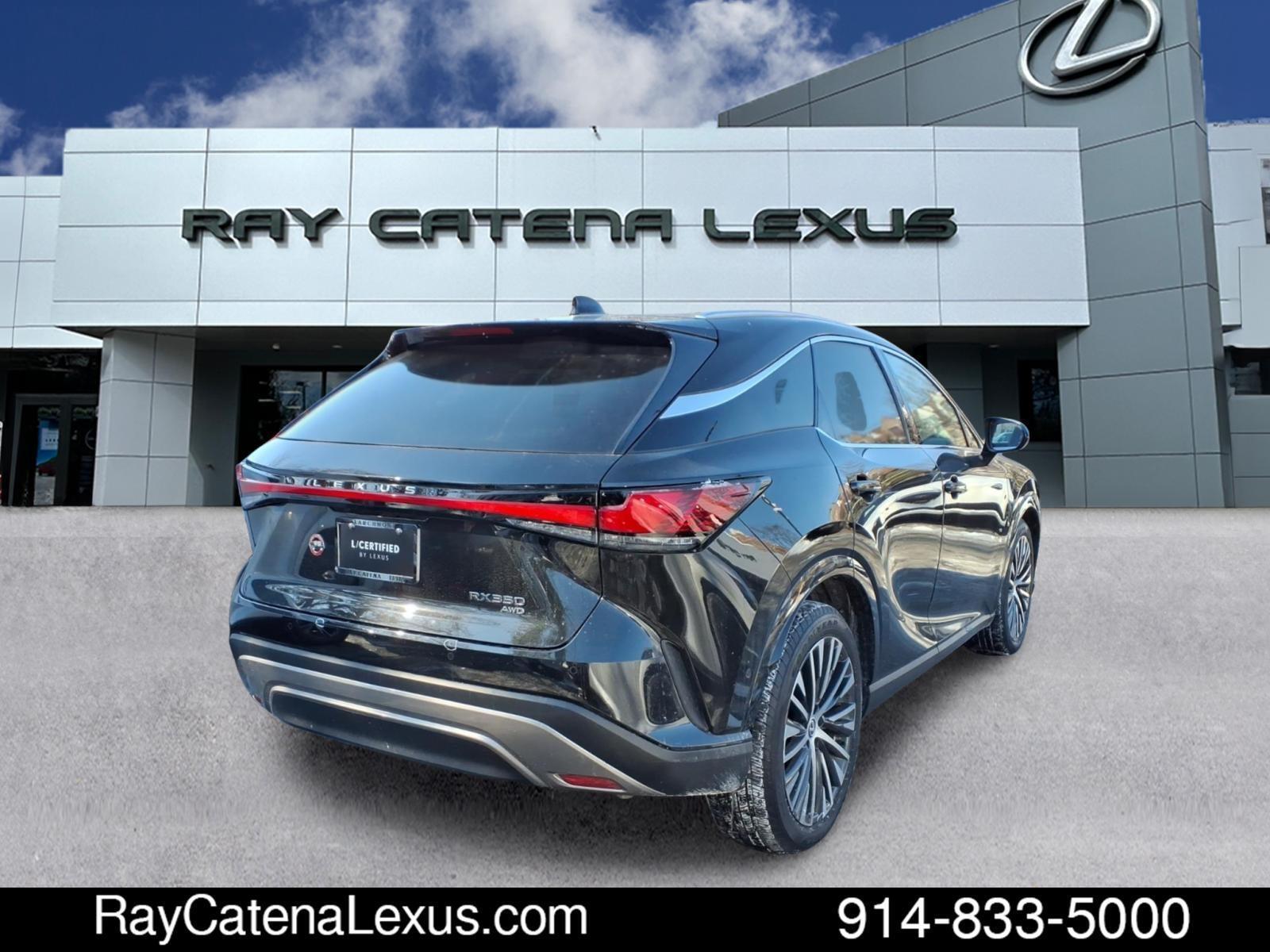 The 2023 Lexus RX 350 is a certified pre-owned SUV with all wheel drive and a 2.4 liter 4 cylinder engine. It has low mileage of 9,299 miles and is equipped with a caviar exterior and a palomino interior. It has a 5 out of 5 star crash test rating and features such as blind spot sensor, hill start assist, on demand four wheel drive, navigation system with voice recognition, and navigation with touch screen display. This car is sure to turn heads on the road! Contact Details: Ray Catena Lexus, 1435 Boston Post Road, Larchmont, NY, 10538, dbranch@raycatenalexusny.com, 8882036143.