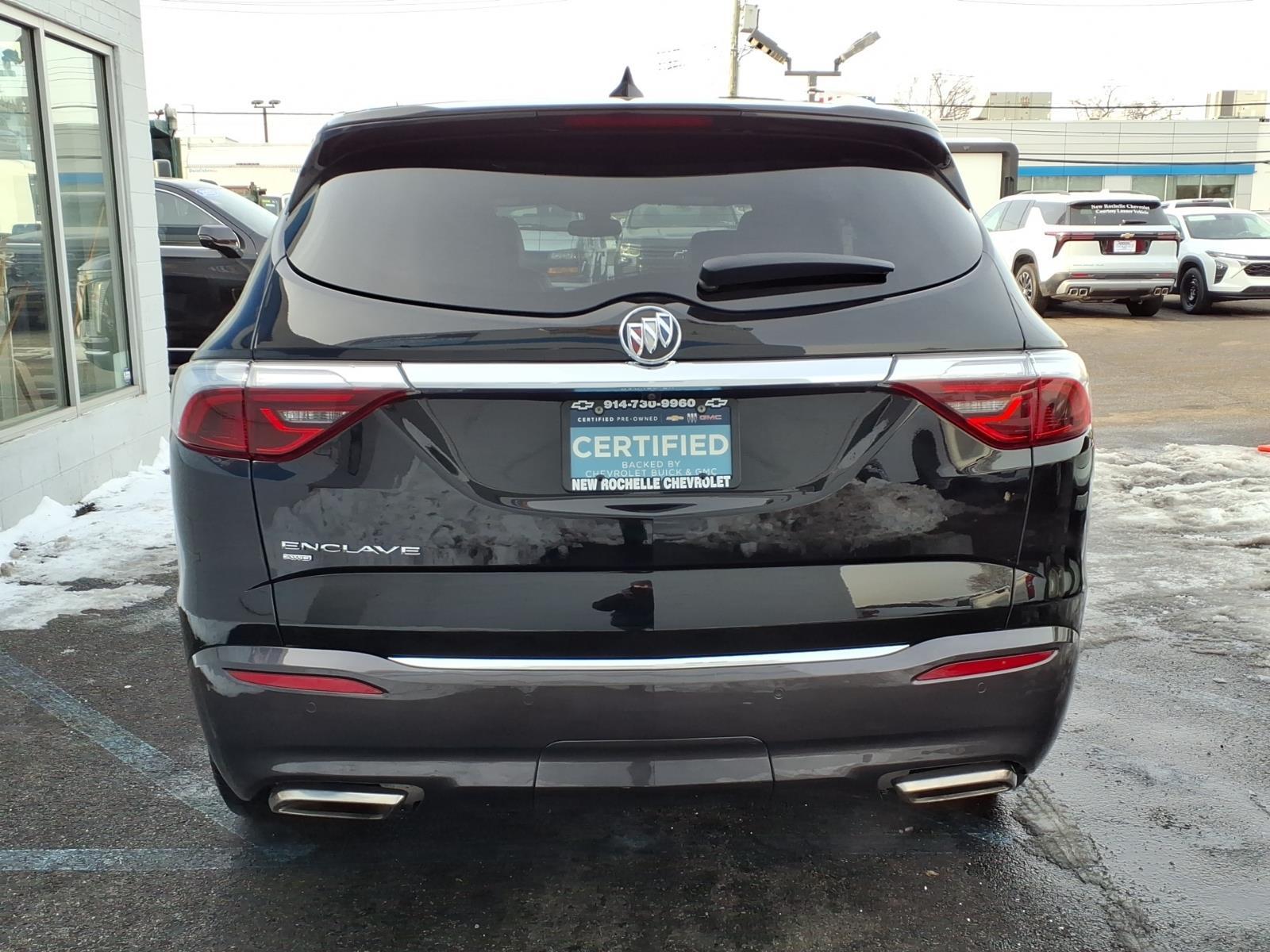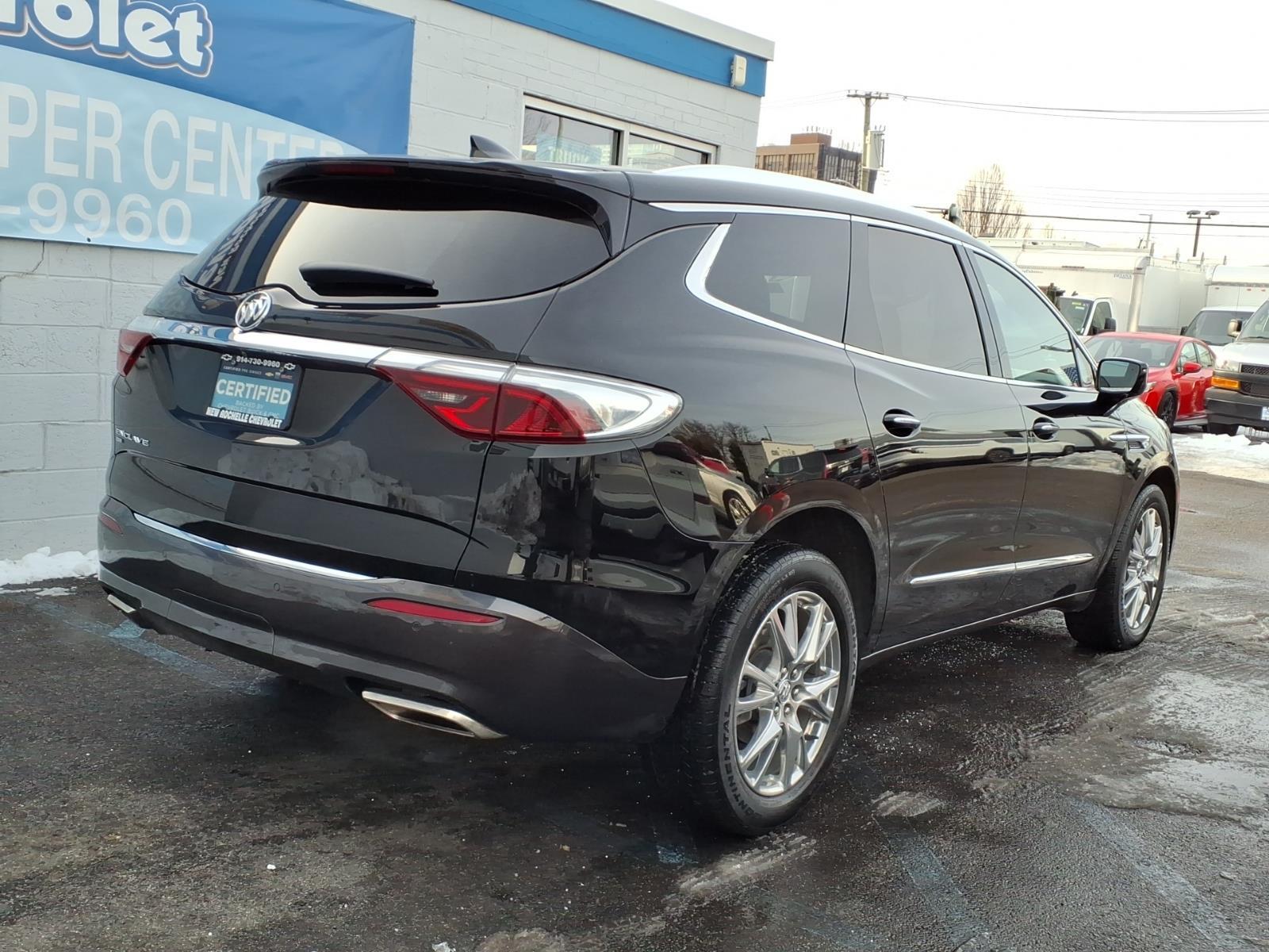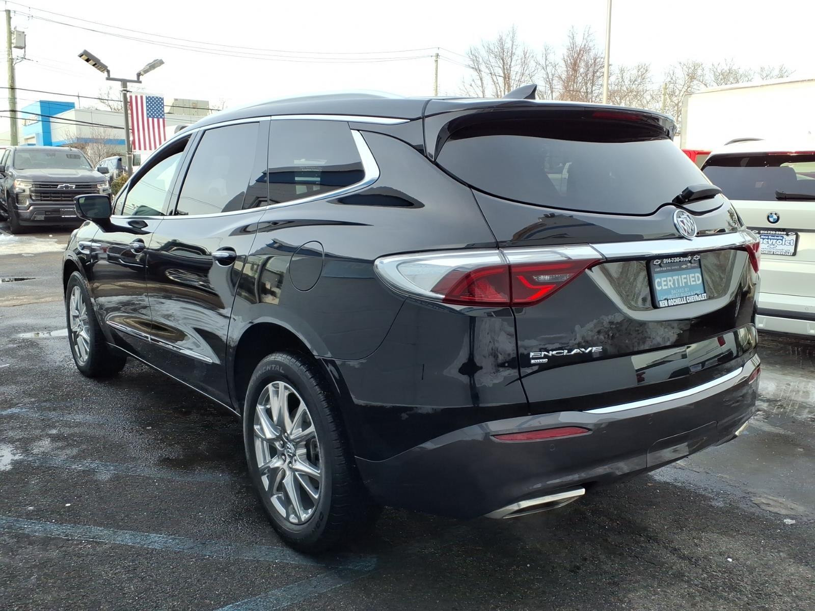 ***LEATHER***, ***LOW MILES***, *** ALL WHEEL DRIVE***, *** BACKUP SENSORS***, *** LEATHER ***, *** ONE OWNER***, ***ACCIDENT FREE***, ***NAVIGATION***, AWD. Odometer is 4542 miles below market average! CARFAX One-Owner. Clean CARFAX. Certified. Ebony Twilight Metallic 2023 Buick Enclave Essence AWD 9-Speed Automatic 3.6L V6 SIDI VVT At New Rochelle Chevrolet our pricing strategy guaranties you the most aggressive pricing up front with no games or gimmicks. Our advertised price is our best price and we are confident you will be completely satisfied with the complete buying experience at NEW ROCHELLE CHEVROLET!!! Scheduled an appointment to test drive any of our Pre-owned cars today..... We appreciate the opportunity to earn your business. Buick Certified Pre-Owned Details: * 172 Point Inspection * Vehicle History * Transferable Warranty * Roadside Assistance * Limited Warranty: 12 Month/12,000 Mile (whichever comes first) from certified purchase date * 24 months/24,000 miles (whichever comes first) Certified Pre-Owned Scheduled Maintenance Plan and 3 days/150 miles (whichever comes first) Vehicle Exchange Program. 1 month of OnStar Safety & Security Plan, Navigation Services, Remote Access Plan, and 1 month or 3GB of 4G LTE data (whichever comes first). * Powertrain Limited Warranty: 72 Month/100,000 Mile (whichever comes first) from original in-service date * Warranty Deductible: $0 ABSOLUTELY committed to YOU!!!