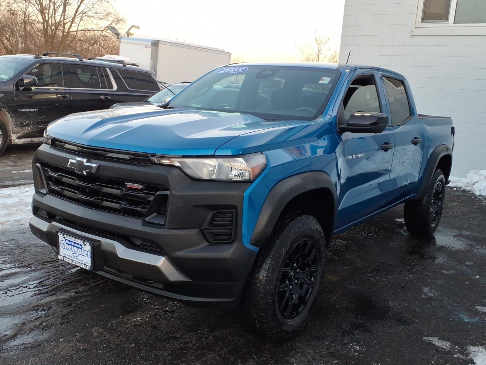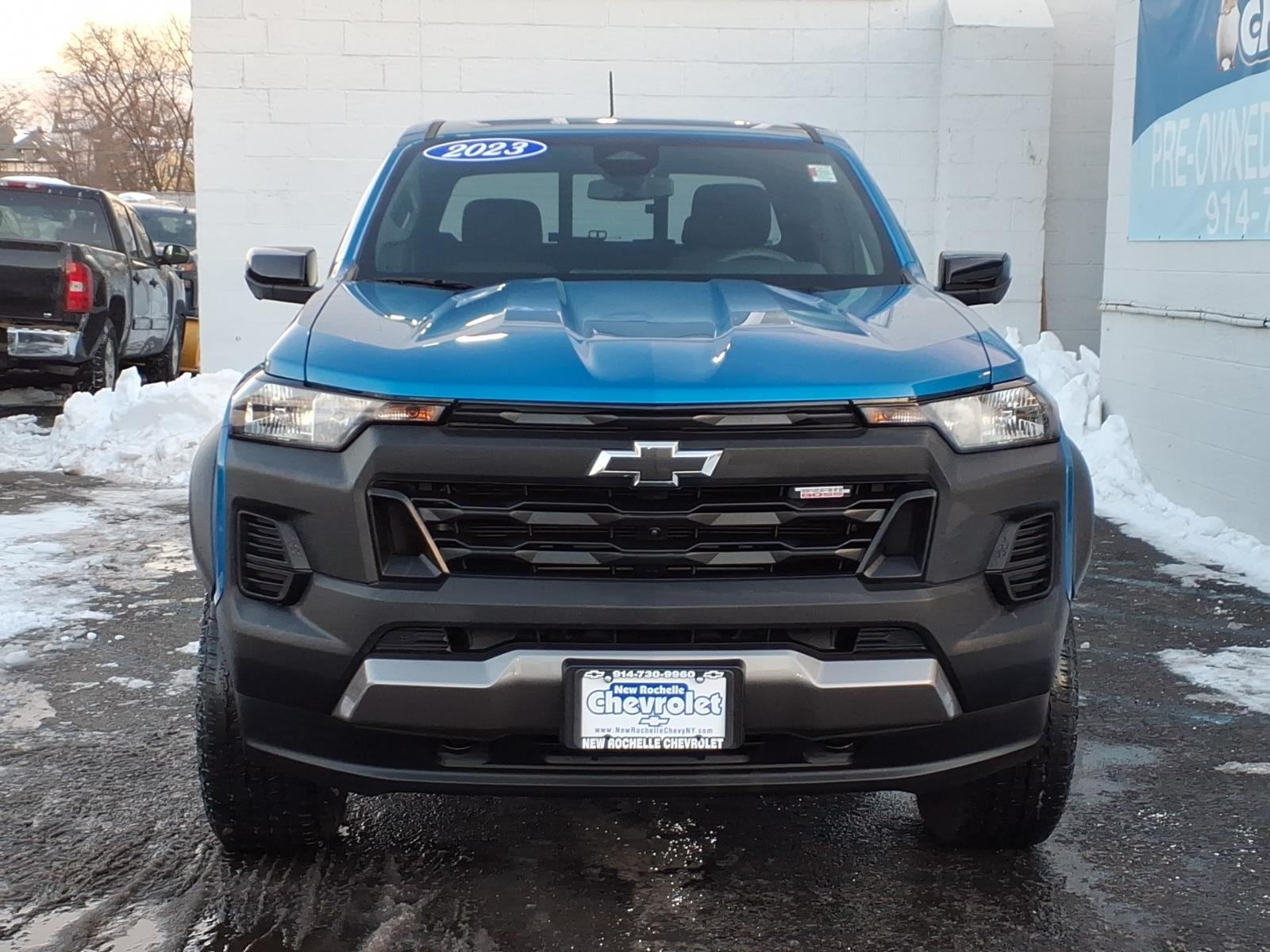 ***LOW MILES***, ***4X4***, *** BACKUP SENSORS***, *** ONE OWNER***, ***ACCIDENT FREE***, ***NAVIGATION***, 4WD. Odometer is 9574 miles below market average! CARFAX One-Owner. Clean CARFAX. Glacier Blue Metallic 2023 Chevrolet Colorado Trail Boss 4WD 8-Speed Automatic 2.7L Turbo At New Rochelle Chevrolet our pricing strategy guaranties you the most aggressive pricing up front with no games or gimmicks. Our advertised price is our best price and we are confident you will be completely satisfied with the complete buying experience at NEW ROCHELLE CHEVROLET!!! Scheduled an appointment to test drive any of our Pre-owned cars today..... We appreciate the opportunity to earn your business. ABSOLUTELY committed to YOU!!!