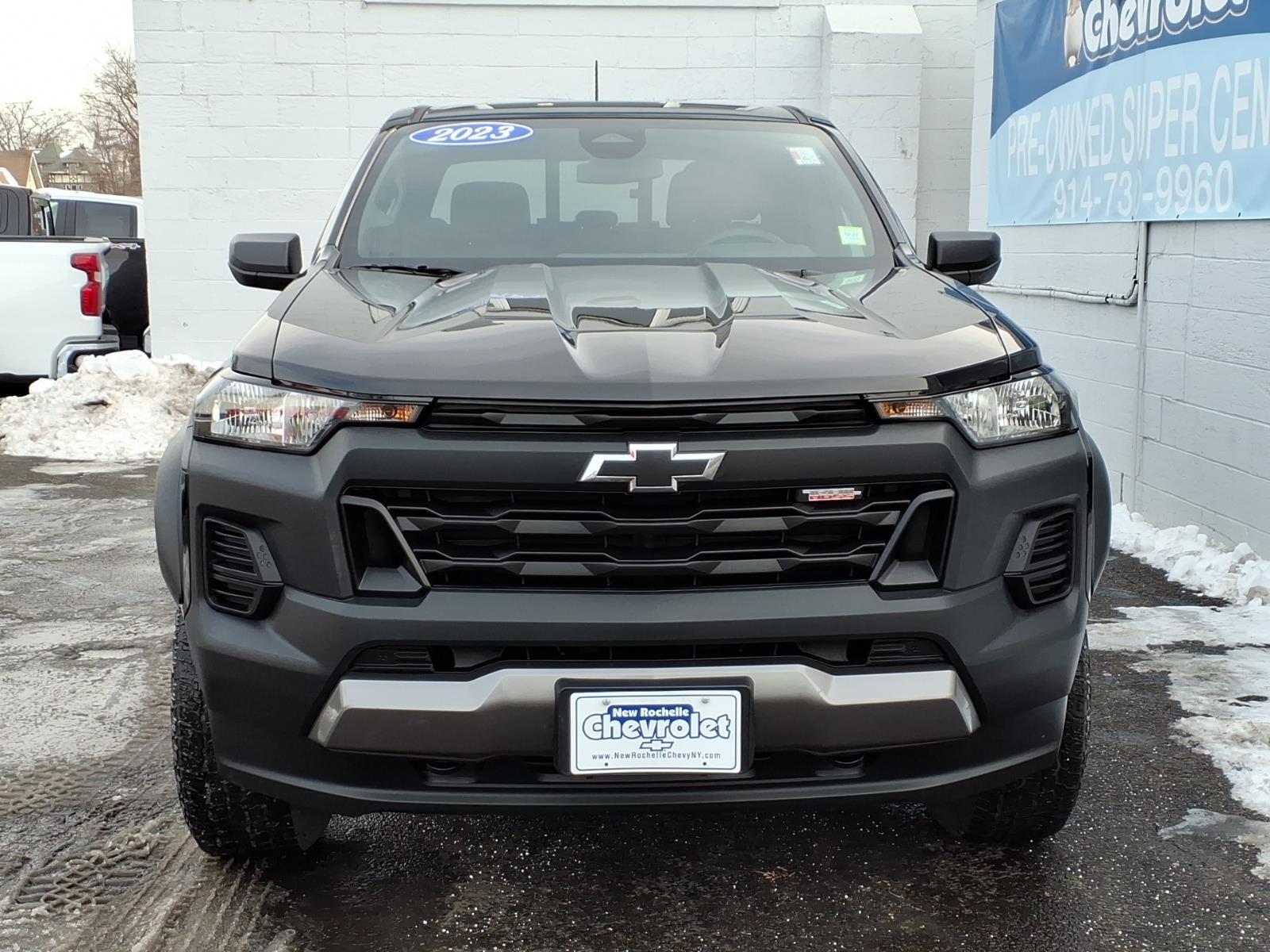 ***4X4***, *** BACKUP SENSORS***, *** ONE OWNER***, ***NAVIGATION***, 4WD. Recent Arrival! CARFAX One-Owner. Black 2023 Chevrolet Colorado Trail Boss 4WD 8-Speed Automatic 2.7L Turbo At New Rochelle Chevrolet our pricing strategy guaranties you the most aggressive pricing up front with no games or gimmicks. Our advertised price is our best price and we are confident you will be completely satisfied with the complete buying experience at NEW ROCHELLE CHEVROLET!!! Scheduled an appointment to test drive any of our Pre-owned cars today..... We appreciate the opportunity to earn your business. ABSOLUTELY committed to YOU!!!