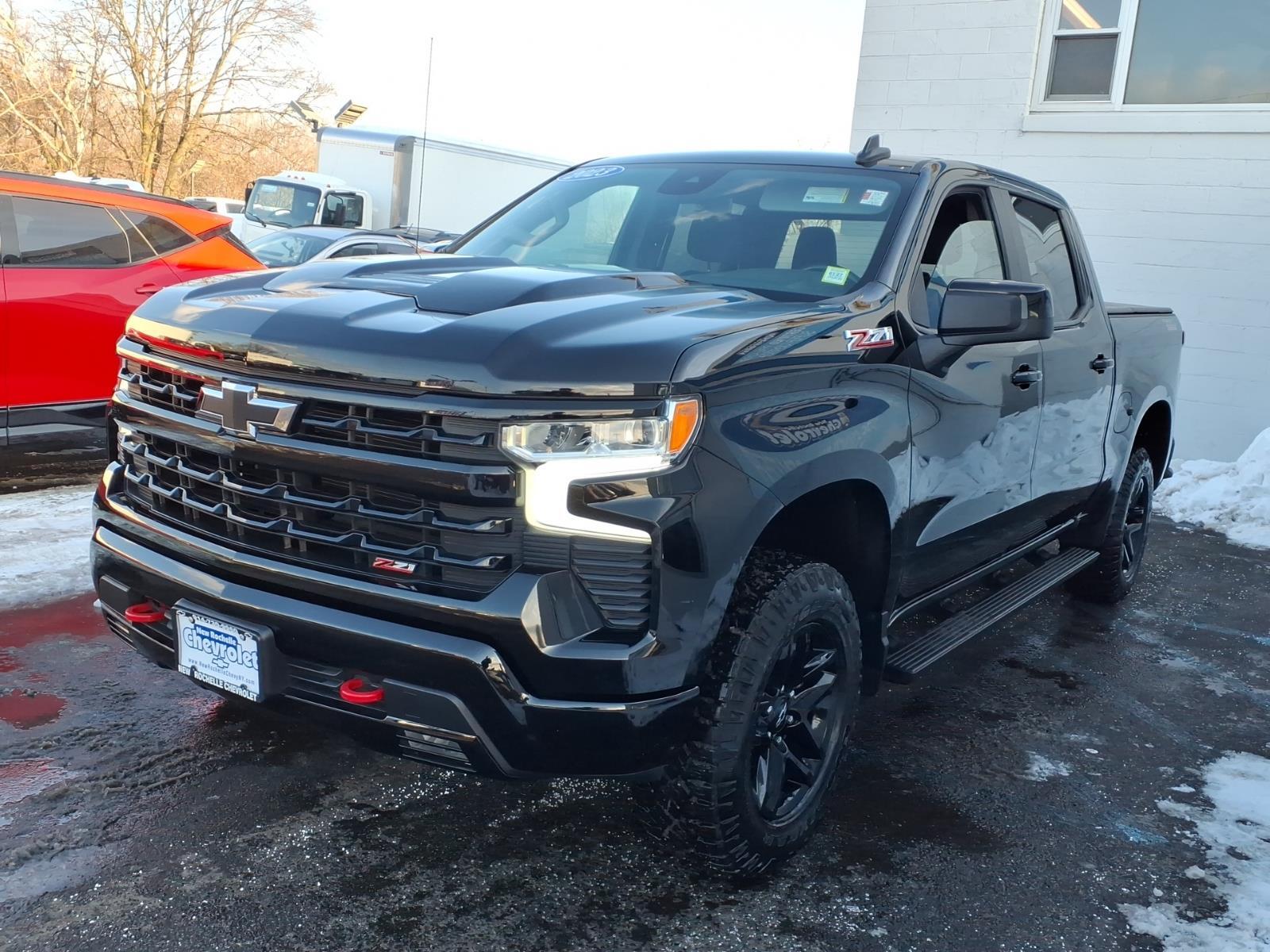 ***LOW MILES***, ***4X4***, *** BACKUP SENSORS***, *** ONE OWNER***, 10-Speed Automatic, 4WD, Black Cloth. Priced below KBB Fair Purchase Price! Odometer is 28940 miles below market average! CARFAX One-Owner. Black 2023 Chevrolet Silverado 1500 LT Trail Boss 4WD 10-Speed Automatic EcoTec3 5.3L V8 At New Rochelle Chevrolet our pricing strategy guaranties you the most aggressive pricing up front with no games or gimmicks. Our advertised price is our best price and we are confident you will be completely satisfied with the complete buying experience at NEW ROCHELLE CHEVROLET!!! Scheduled an appointment to test drive any of our Pre-owned cars today..... We appreciate the opportunity to earn your business. ABSOLUTELY committed to YOU!!!