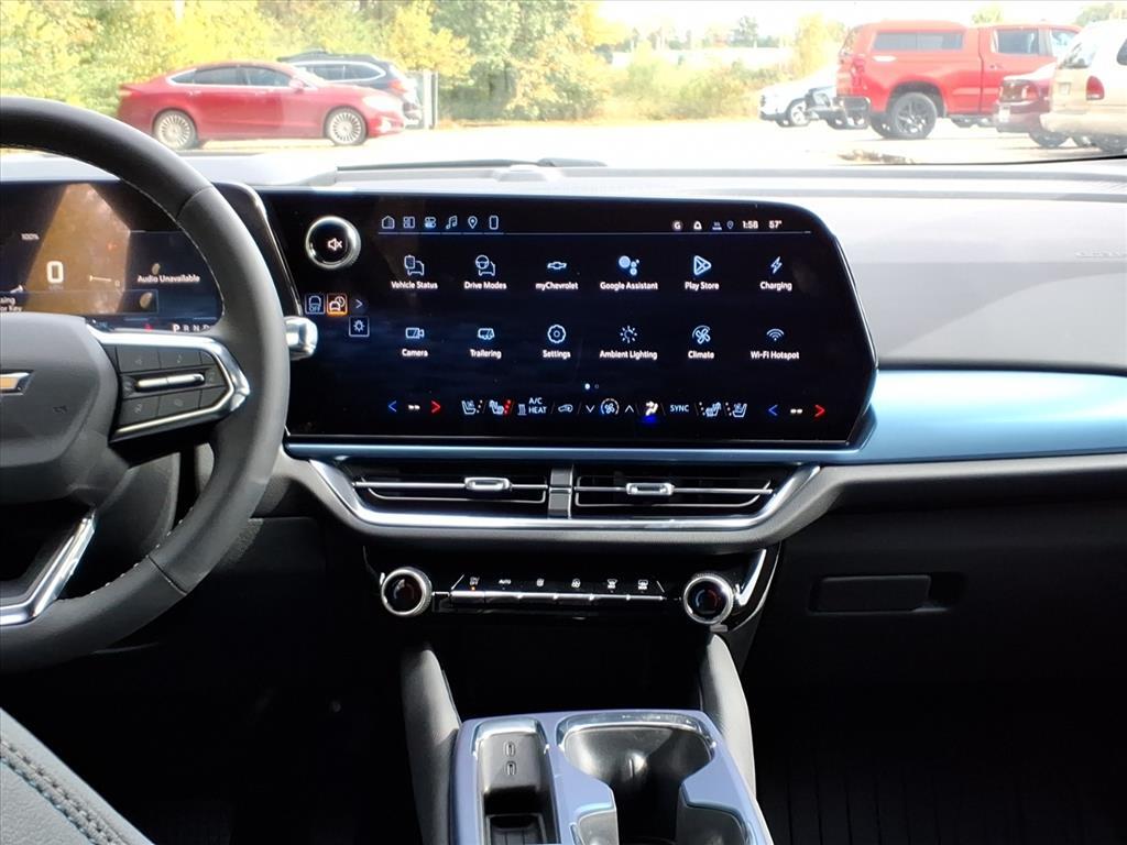 Demo/CTP units may have more mileage than a normal new retail unit. All-Weather Liner Package (LPO) (All-Weather Cargo Area Liner (LPO) and Contoured All-Weather Floor Liner (LPO)), Convenience Package II (2-Way Front Passenger Power Lumbar, Driver Memory, Dual-Zone Automatic Climate Control, Front Passenger 6-Way Power Seat Adjuster, Head-Up Display, Heated Rear Outboard Passenger Cushion, Heated Wiper Park, LED Headlamps w/LED Daytime Running Lamps, Rear Camera Mirror, Rear Camera Mirror Washer, Universal Home Remote, Uplevel Neutral Density LED Tail Lamps, Ventilated Driver & Front Passenger Seats, and Wheels: 21Machined Aluminum), LT 2 Package, Preferred Equipment Group 2LT, 19Wheels, 4-Wheel Disc Brakes, 6 Speakers, 6-Speaker Audio System Feature, 8-Way Power Driver Seat Adjuster, ABS brakes, Air Conditioning, Alloy wheels, AM/FM radio: SiriusXM with 360L, Auto High-beam Headlights, Auto-dimming Rear-View mirror, Automatic temperature control, Brake assist, Bumpers: body-color, Cargo Security Shade (LPO), Compass, Delay-off headlights, Driver door bin, Driver vanity mirror, Dual front impact airbags, Dual front side impact airbags, Electronic Stability Control, Emergency communication system: OnStar and Chevrolet connected services capable, Evotex Seat Trim, Four wheel independent suspension, Front anti-roll bar, Front Bucket Seats, Front Center Armrest, Front Passenger 4-Way Manual Seat Adjuster, Front reading lights, Fully automatic headlights, Heated door mirrors, Heated Driver & Fr Passenger Seats Cushion & Seatback, Heated front seats, Heated steering wheel, Illuminated entry, Knee airbag, Low tire pressure warning, NACS DC Adapter (LPO), Navigation system: Google built-in compatibility (select service plan required, terms and limitations apply), Occupant sensing airbag, Outside temperature display, Overhead airbag, Overhead console, Panic alarm, Passenger door bin, Passenger vanity mirror, Power door mirrors, Power Driver Lumbar Control, Power driver seat, Power Liftgate, Power steering, Power windows, Radio: 17.7Diagonal Advanced Color LCD Display, Rear anti-roll bar, Rear reading lights, Rear seat center armrest, Rear window defroster, Rear window wiper, Remote keyless entry, Security system, SiriusXM w/360L Trial Subscription, Speed control, Split folding rear seat, Spoiler, Steering wheel mounted audio controls, Telescoping steering wheel, Tilt steering wheel, Traction control, Trip computer, Turn signal indicator mirrors, and Variably