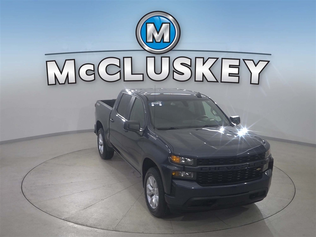 Call McCluskey Chevrolet at 513-741-1111 to schedule your Free 48 Hour Test Drive. MCCLUSKEY CHEVROLETS FREE LIFETIME MECHANICAL WARRANTY Unlimited Miles. Unlimited Years. Fully-Insured. Hundreds of Crew Cab Pickup Trucks available---$299 with only $999 down utilizing McCluskeys Lease-To-Own Program. All pickups have FREE LIFETIME MECHANICAL PROTECTION! Call 513-741-1111 to learn more. Certified. Shadow Gray Metallic 2022 Chevrolet Silverado 1500 LTD Custom 2.7L Turbo Clean CARFAX. CARFAX One-Owner. Odometer is 42254 miles below market average! McCluskeys Fully-Certified 172 Point Inspection, Super low miles...wont last long!, 4 WHEEL DRIVE, BACK UP CAMERA, REMOTE START, 4WD.