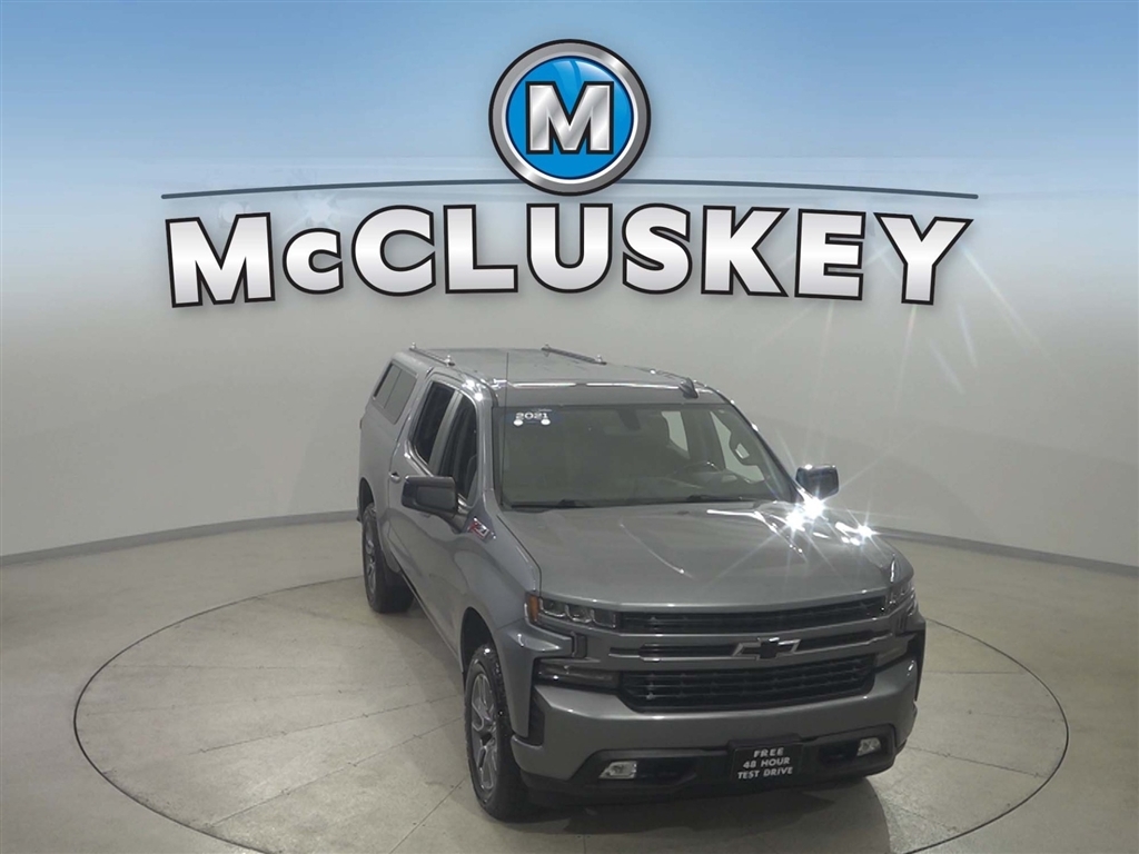 Call McCluskey Chevrolet at 513-741-1111 to schedule your Free 48 Hour Test Drive. MCCLUSKEY CHEVROLETS FREE LIFETIME MECHANICAL WARRANTY Unlimited Miles. Unlimited Years. Fully-Insured. Over 40 vehicles UNDER $10,000 with less than 100,000 miles---ALL with FREE LIFETIME MECHANICAL PROTECTION! Call 513-741-1111 to learn more. Satin Steel Metallic 2021 Chevrolet Silverado 1500 RST EcoTec3 5.3L V8 CARFAX One-Owner. 8-Speed Automatic, 4WD, Black Cloth.