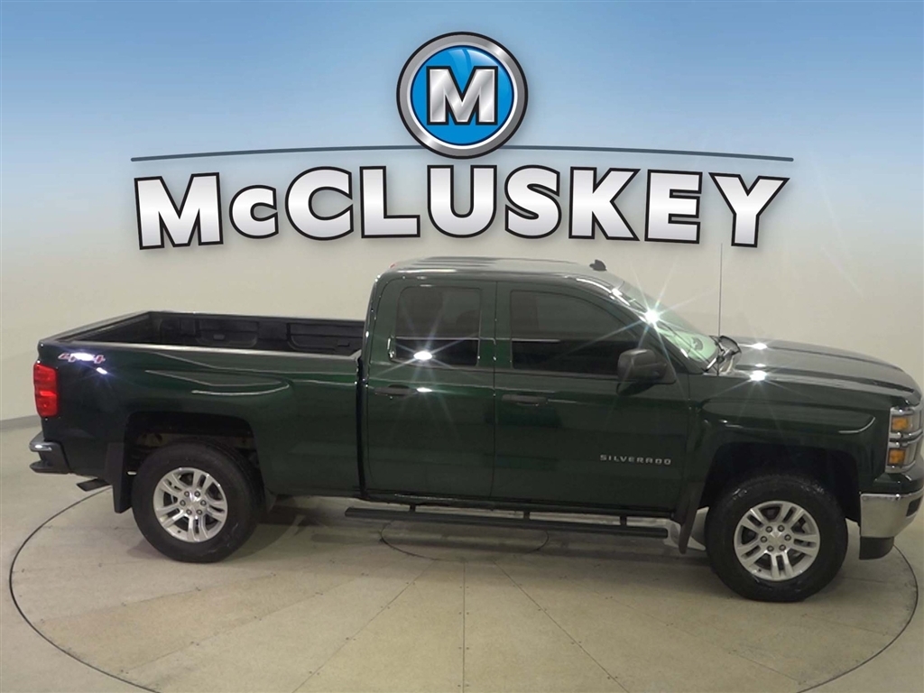 Call McCluskey Chevrolet at 513-741-1111 to schedule your Free 48 Hour Test Drive. MCCLUSKEY CHEVROLETS FREE LIFETIME MECHANICAL WARRANTY Unlimited Miles. Unlimited Years. Fully-Insured. Over 40 vehicles UNDER $10,000 with less than 100,000 miles---ALL with FREE LIFETIME MECHANICAL PROTECTION! Call 513-741-1111 to learn more. Rainforest Green Metallic 2014 Chevrolet Silverado 1500 LT LT1 EcoTec3 5.3L V8 Flex Fuel Clean CARFAX. 6-Speed Automatic Electronic with Overdrive, 4WD, Black Cloth. Awards: * NACTOY 2014 North American Truck of the Year * 2014 KBB.com Brand Image Awards Reviews: * New, more fuel-efficient engines; improved interior; quiet highway ride. Source: Edmunds * While we realize the majority of full-size truck buyers are predisposed towards their favorite brand, the 2014 Chevy Silverado makes a compelling case for itself. From its sophisticated-yet-easy-to-use infotainment system to its surprisingly refined interior, the 2014 Silverado deserves serious consideration from the brand faithful and cross-shoppers alike. Source: KBB.com