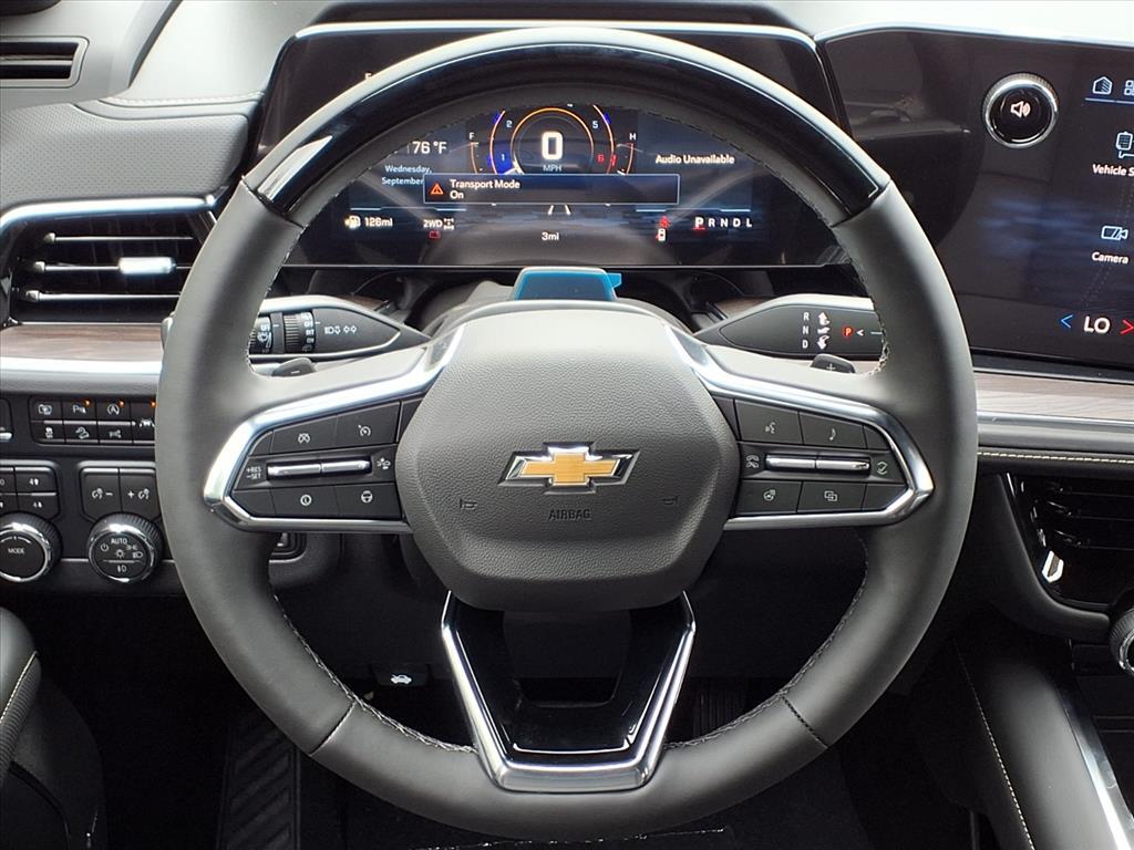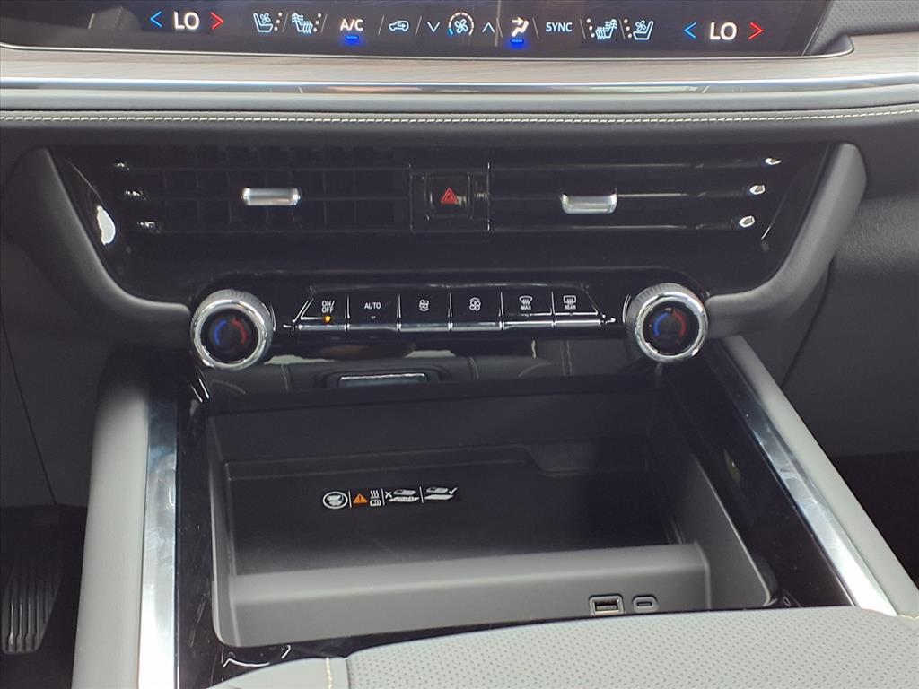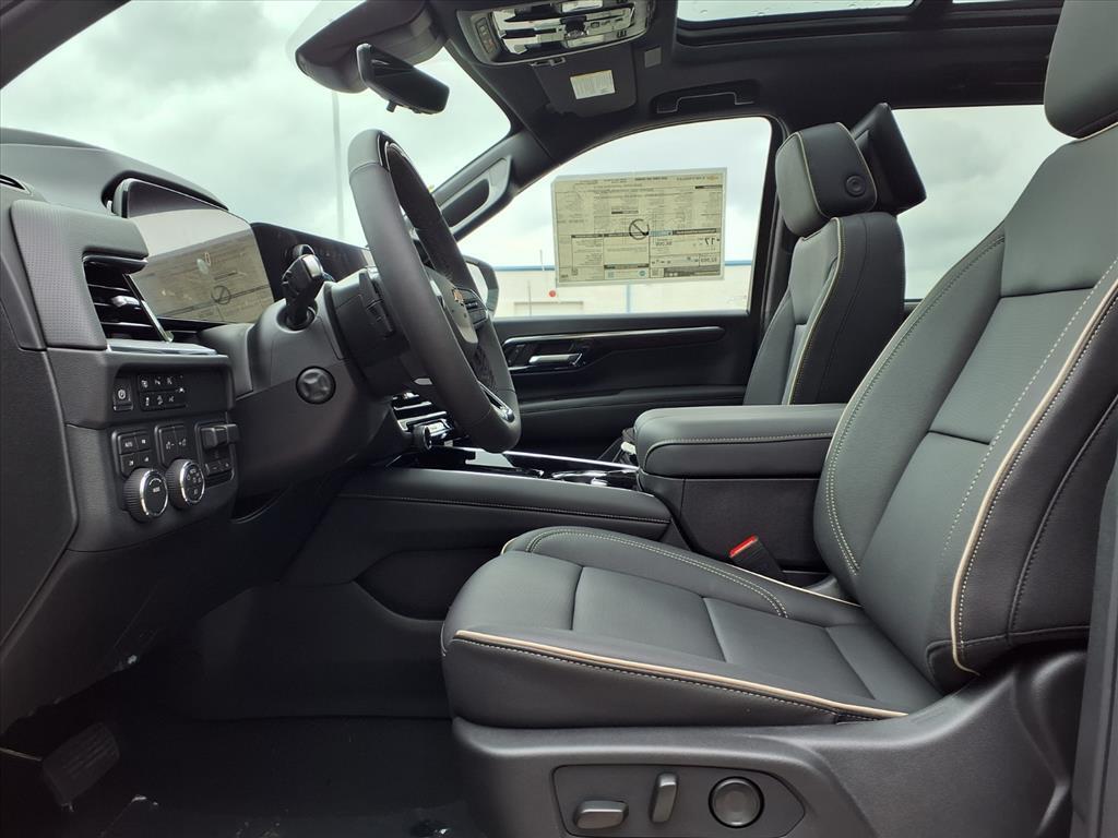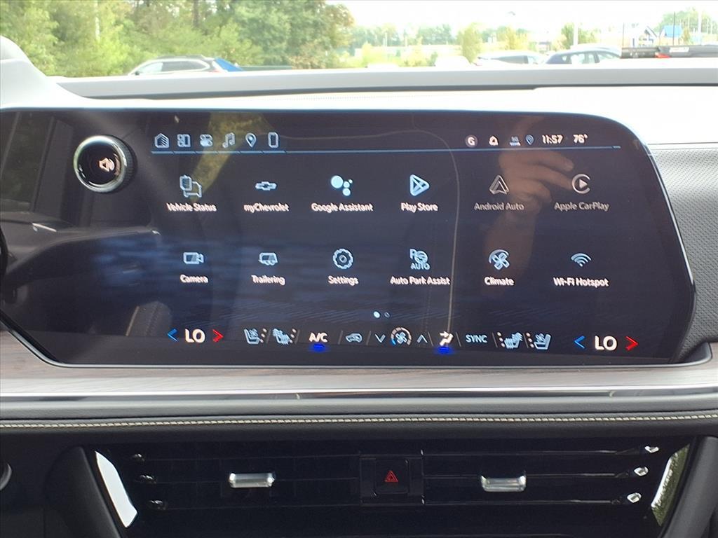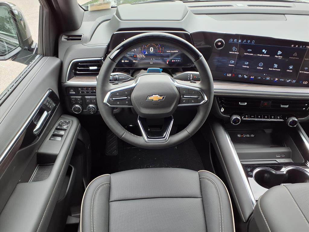 Demo/CTP units may have more mileage than a normal new retail unit. Advanced Security Package (Glass Breakage Sensor, Theft-Deterrent Alarm System, Vehicle Inclination Sensor, and Vehicle Interior Movement Sensor), Advanced Trailering Package (Blind Zone Steering Assist w/Trailering, Hitch View w/Pan/Zoom Image Adjustment, and Smart Trailer Integration Indicator), License Plate Front Mounting Package, Max Trailering Package (2-Speed Active Electronic AutoTrac Transfer Case, Hill Descent Control, and Integrated Trailer Brake Controller), Preferred Equipment Group 1LZ (1st & 2nd Row Color-Keyed Carpeted Floor Mats, 3-Spoke Wrapped Steering Wheel, 3rd Row 60/40 Power-Folding Split-Bench Seat, Auto-Dimming Inside Rear-View Mirror, Bose 10-Speaker Centerpoint Surround Audio Sys Ft, Bright Front & Rear Door Sill Plates, Chrome Door Handles w/Body-Color Strip, Chrome Mirror Caps, Color-Keyed Carpeting Floor Covering, Dual Exhaust System, Floor Console, Front LED Fog Lamps, Frontal Driver & Outboard Passenger Airbags, Heated 2nd Row Outboard Seats, Heated Steering Wheel, Interior Camera, Key Card, LED Headlamps w/LED Daytime Running Lamps, LED Tail Lamps, Memory Settings, Outside Heated Power-Adjustable Mirrors, Power Release 2nd Row Bucket Seats, Power Tilt & Telescopic Steering Column, Rear Power Liftgate, Remote Start, SiriusXM w/360L Trial Subscription, Universal Home Remote, and Wireless Phone Charging), Premium Liner Protection Package (LPO) (1st & 2nd Rows Premium Floor Liners (LPO), 3rd Row All-Weather Floor Liners (LPO), and All-Weather Cargo Mat (LPO)), Technology & Entertainment Package (Dual-Pane Power Panoramic Sunroof and Rear Seat Media System), Technology Package (15Diagonal Multi-Color Head-Up Display, AutoSense Hands-Free Power Liftgate, and Inside Rearview Auto-Dimming Rear Camera Mirror), 4WD, Jet Black Leather, 10 Speakers, 20x 9Polished Aluminum Wheels, 3 Years OnStar One (R9M), 3.23 Rear Axle Ratio, 3rd row seats: split-bench, 4-Way Power Driver Lumbar Seat Adjuster, 4-Way Power Front Passenger Lumbar Seat Adjuster, 4-Wheel Disc Brakes, 8-Way Power Driver Seat Adjuster, 8-Way Power Front Passenger Seat Adjuster, ABS brakes, Adaptive suspension, Air Conditioning, Alloy wheels, AM/FM radio: SiriusXM with 360L, Apple CarPlay/Android Auto, Auto High-beam Headlights, Auto-dimming door mirrors, Auto-dimming Rear-View mirror, Auto-leveling suspension, Automatic temperature control, Brake assist, Bumpers: body-color, Compass, Delay-off headlig