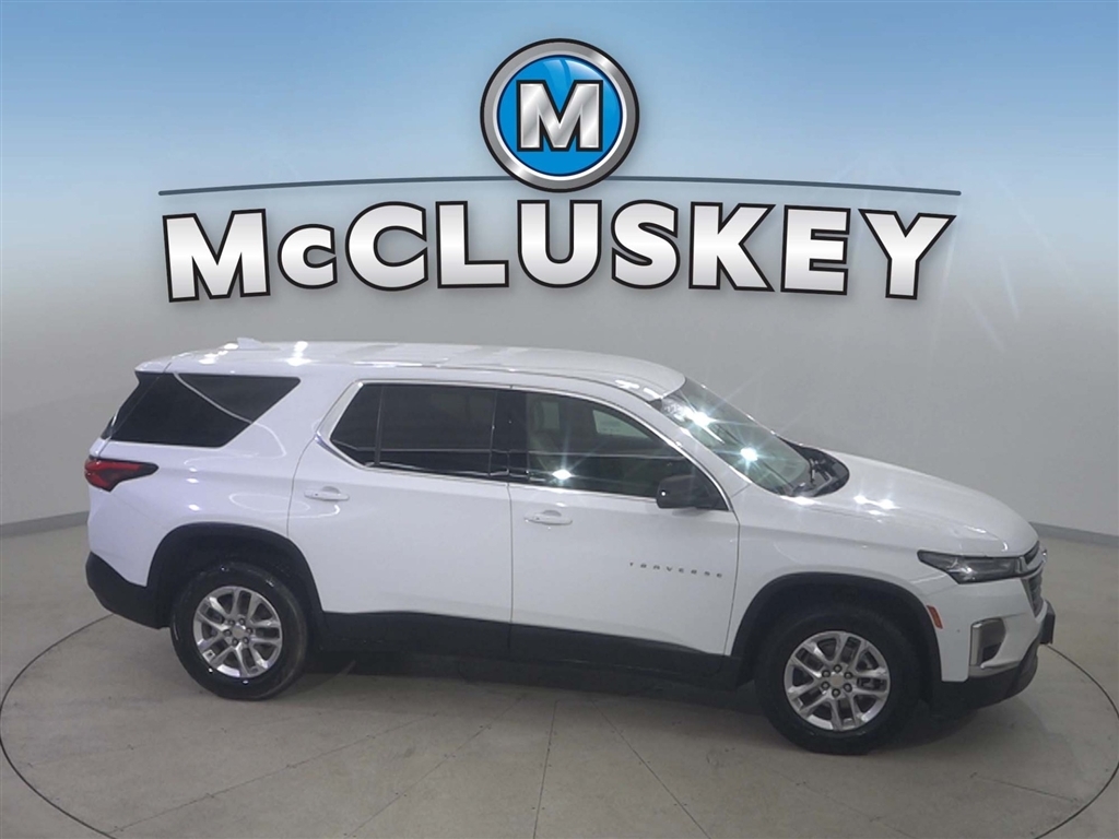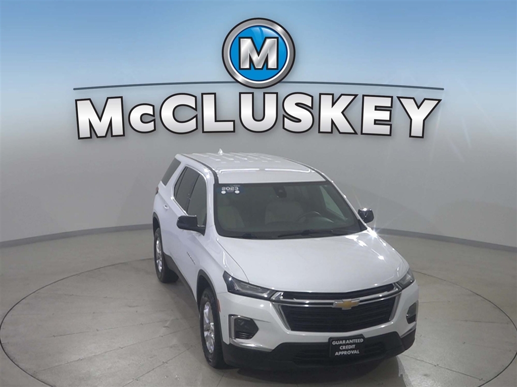Call McCluskey Chevrolet at 513-741-1111 to schedule your Free 48 Hour Test Drive. MCCLUSKEY CHEVROLETS FREE LIFETIME MECHANICAL WARRANTY Unlimited Miles. Unlimited Years. Fully-Insured. Over 40 vehicles UNDER $10,000 with less than 100,000 miles---ALL with FREE LIFETIME MECHANICAL PROTECTION! Call 513-741-1111 to learn more. Certified. Summit White 2023 Chevrolet Traverse LS 3.6L V6 SIDI VVT CARFAX One-Owner.