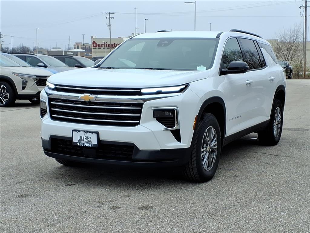 Demo/CTP units may have more mileage than a normal new retail unit. Driver Confidence Package (HD Surround Vision, Key Card, Power Outlet, Rear Camera Mirror, Rear Pedestrian Alert, and Traffic Sign Recognition), Floor Liner Package (LPO) (1st & 2nd Row All-Weather Floor Liners (LPO), 3rd Row All-Weather Floor Liner (LPO), and Integrated Cargo Liner (LPO)), 3rd row seats: split-bench, 4-Way Manual Front Passenger Seat Adjuster, 4-Wheel Disc Brakes, 6 Speakers, 6-Speaker Audio System Feature, 8-Way Power Driver Seat Adjuster, ABS brakes, Air Conditioning, Alloy wheels, AM/FM radio: SiriusXM with 360L, Apple CarPlay/Android Auto, Auto High-beam Headlights, Automatic temperature control, Brake assist, Bumpers: body-color, Child-Seat-Sensing Airbag, Compass, Delay-off headlights, Driver door bin, Driver vanity mirror, Dual front impact airbags, Dual front side impact airbags, Electronic Stability Control, Emergency communication system: OnStar, Four wheel independent suspension, Front anti-roll bar, Front Bucket Seats, Front Center Armrest, Front dual zone A/C, Front reading lights, Fully automatic headlights, Heated door mirrors, Heated Driver & Front Passenger Seats, Heated front seats, Heated steering wheel, Illuminated entry, Low tire pressure warning, Molded Splash Guards, Navigation System, Occupant sensing airbag, Outside temperature display, Overhead airbag, Overhead console, Panic alarm, Passenger door bin, Passenger vanity mirror, Power door mirrors, Power driver seat, Power Liftgate, Power steering, Power windows, Premium Cloth Seat Trim, Radio data system, Radio: Audio System w/17.7Diagonal Display, Rear air conditioning, Rear anti-roll bar, Rear reading lights, Rear window defroster, Rear window wiper, Remote keyless entry, Security system, SiriusXM w/360L Trial Subscription, Speed control, Speed-sensing steering, Spoiler, Steering wheel mounted audio controls, Tachometer, Telescoping steering wheel, Tilt steering wheel, Traction control, Trip computer, Turn signal indicator mirrors, Variably intermittent wipers, Voltmeter, and Wheels: 18Grazen Metallic Machined-Face Aluminum. Factory MSRP: $45,740$4,000 off MSRP!20/26 City/Highway MPG Summit White 2026 Chevrolet Traverse LT 1LT LT 8-Speed Automatic***We have our own aftermarket company that offers a wide variety of accessories. VIP Available Options for purchase: Bluetooth, Window Tint, Weathertech, Thule Bike Carrier, Leather Seats, Heated Seats, DVD, Front and Rear Parking Sensors, Blind Sp