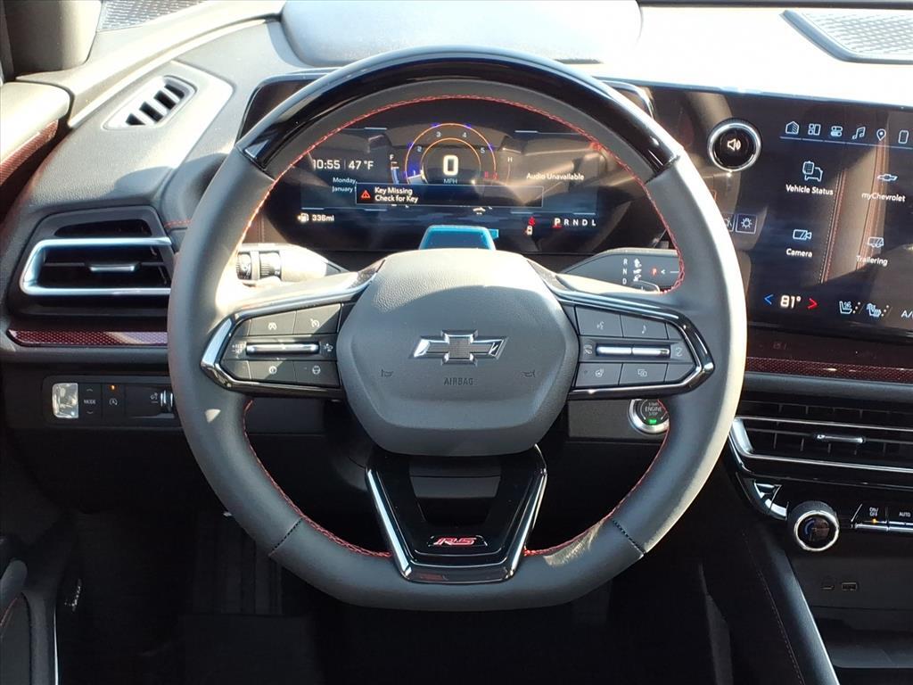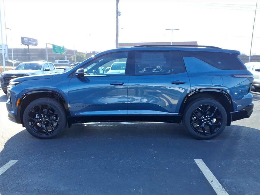 Demo/CTP units may have more mileage than a normal new retail unit. 12 Speakers, 3rd row seats: split-bench, 4-Wheel Disc Brakes, 6-Way Power Front Passenger Seat Adjuster, 8-Way Power Driver Seat Adjuster, ABS brakes, Air Conditioning, Alloy wheels, AM/FM radio: SiriusXM with 360L, Apple CarPlay/Android Auto, Auto High-beam Headlights, Auto tilt-away steering wheel, Auto-dimming door mirrors, Automatic temperature control, Bose Premium 12-Speaker Audio System Feature, Brake assist, Bumpers: body-color, Child-Seat-Sensing Airbag, Compass, Delay-off headlights, Driver 4-Way Power Lumbar Seat Adjuster, Driver door bin, Driver vanity mirror, Dual front impact airbags, Dual front side impact airbags, Electronic Stability Control, Emergency communication system: OnStar, Exterior Parking Camera Rear, Four wheel independent suspension, Front anti-roll bar, Front Bucket Seats, Front Center Armrest, Front dual zone A/C, Front Passenger 4-Way Power Lumbar Seat Adjuster, Front reading lights, Fully automatic headlights, Garage door transmitter, Heated door mirrors, Heated Driver and Front Passenger Seats, Heated front seats, Heated rear seats, Heated steering wheel, Illuminated entry, Low tire pressure warning, Memory seat, Navigation System, Occupant sensing airbag, Outside temperature display, Overhead airbag, Overhead console, Panic alarm, Passenger door bin, Passenger vanity mirror, Perforated Leather-Appointed Seat Trim, Power door mirrors, Power driver seat, Power Liftgate, Power passenger seat, Power steering, Power windows, Radio data system, Radio: : Audio System w/17.7Diagonal Display, Rain sensing wipers, Rear air conditioning, Rear anti-roll bar, Rear reading lights, Rear window defroster, Rear window wiper, Remote keyless entry, Security system, SiriusXM with 360L Trial Subscription, Speed control, Speed-sensing steering, Spoiler, Sport steering wheel, Steering wheel memory, Steering wheel mounted audio controls, Tachometer, Telescoping steering wheel, Tilt steering wheel, Traction control, Trip computer, Turn signal indicator mirrors, Variably intermittent wipers, Ventilated Driver and Front Passenger Seats, Ventilated front seats, Voltmeter, and Wheels: 22High Gloss Black Painted Aluminum. Factory MSRP: $58,310$2,500 off MSRP!20/26 City/Highway MPG Lakeshore Blue Metallic 2026 Chevrolet Traverse RS RS 8-Speed Automatic***We have our own aftermarket company that offers a wide variety of accessories. VIP Available Options for purchase: Bluetooth, Win