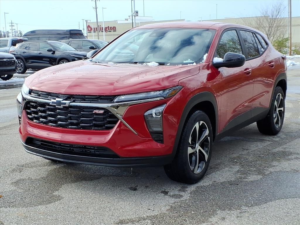 Demo/CTP units may have more mileage than a normal new retail unit. Driver Confidence Package (Lane Change Alert with Side Blind Zone Alert, Rear Cross Traffic Alert, and Rear Park Assist), 2-Way Adjustable Front Head Restraints, 3.50 Final Drive Axle Ratio, 4 Speakers, 4-Speaker Audio System Feature, 4-Way Manual Front Passenger Seat Adjuster, 4-Wheel Disc Brakes, 6-Way Manual Driver Seat Adjuster, ABS brakes, Air Conditioning, Alloy wheels, AM/FM radio: SiriusXM, Auto High-beam Headlights, Brake assist, Bumpers: body-color, Cloth Seat Trim, Compass, Delay-off headlights, Driver door bin, Driver vanity mirror, Dual front impact airbags, Dual front side impact airbags, Electronic Stability Control, Emergency communication system: OnStar One Essentials, Exterior Parking Camera Rear, Front and Rear Jet Black All-Weather Floor Liners, Front anti-roll bar, Front Bucket Seats, Front Center Armrest, Front reading lights, Front wheel independent suspension, Fully automatic headlights, Heated door mirrors, Heated Driver and Front Passenger Seats, Heated front seats, Heated steering wheel, Illuminated entry, Leather steering wheel, Low tire pressure warning, Occupant sensing airbag, Outside temperature display, Overhead airbag, Overhead console, Panic alarm, Passenger door bin, Passenger vanity mirror, Power door mirrors, Power steering, Power windows, Premium audio system: Chevrolet Infotainment 3, Radio data system, Radio: Chevrolet Infotainment 3 System with AM/FM, Rear window defroster, Rear window wiper, Remote keyless entry, Security system, SiriusXM Trial Subscription, Speed control, Split folding rear seat, Spoiler, Sport steering wheel, Steering wheel mounted audio controls, Tachometer, Telescoping steering wheel, Tilt steering wheel, Traction control, Trip computer, Variably intermittent wipers, Wheels: 18Black-Painted Machined Aluminum, and Wireless Apple CarPlay/Wireless Android Auto. Factory MSRP: $25,155$1,000 off MSRP!28/32 City/Highway MPG Apex Red 2026 Chevrolet Trax 1RS 1RS 6-Speed Automatic***We have our own aftermarket company that offers a wide variety of accessories. VIP Available Options for purchase: Bluetooth, Window Tint, Weathertech, Thule Bike Carrier, Leather Seats, Heated Seats, DVD, Front and Rear Parking Sensors, Blind Spot Monitor, Homelink, Remote Start, Moonroof, Navigation System, Security System and more...