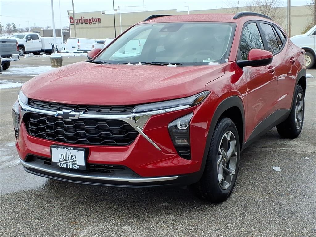 Demo/CTP units may have more mileage than a normal new retail unit. LT Convenience Package (Front Doors Keyless Open, Heated Driver and Front Passenger Seats, Heated Power-Adjustable Outside Mirrors, Heated Steering Wheel, and Wrapped Steering Wheel), 2-Way Adjustable Front Head Restraints, 3.50 Final Drive Axle Ratio, 4-Way Manual Front Passenger Seat Adjuster, 4-Wheel Disc Brakes, 6 Speakers, 6-Speaker Audio System Feature, 6-Way Manual Driver Seat Adjuster, ABS brakes, Air Conditioning, Alloy wheels, AM/FM radio: SiriusXM, Auto High-beam Headlights, Automatic temperature control, Brake assist, Bumpers: body-color, Cloth/Evotex Seat Trim, Compass, Delay-off headlights, Driver door bin, Driver vanity mirror, Dual front impact airbags, Dual front side impact airbags, Electronic Stability Control, Emergency communication system: OnStar One Essentials, Exterior Parking Camera Rear, Front and Rear Black Bowtie Emblems, Front and Rear Jet Black All-Weather Floor Liners, Front anti-roll bar, Front Bucket Seats, Front Center Armrest, Front reading lights, Front wheel independent suspension, Fully automatic headlights, Illuminated entry, Low tire pressure warning, Occupant sensing airbag, Outside temperature display, Overhead airbag, Overhead console, Panic alarm, Passenger door bin, Passenger vanity mirror, Power door mirrors, Power steering, Power windows, Premium audio system: Chevrolet Infotainment 3, Radio data system, Radio: AM/FM Stereo Audio System, Rear window defroster, Rear window wiper, Remote keyless entry, Security system, SiriusXM Trial Subscription, Speed control, Split folding rear seat, Spoiler, Steering wheel mounted audio controls, Tachometer, Telescoping steering wheel, Tilt steering wheel, Traction control, Trip computer, Variably intermittent wipers, Wheels: 17 Inch Gray-Painted Machined Aluminum Alloy, and Wireless Apple CarPlay/Wireless Android Auto. Factory MSRP: $25,650$1,000 off MSRP!28/32 City/Highway MPG Apex Red 2026 Chevrolet Trax LT LT 6-Speed Automatic***We have our own aftermarket company that offers a wide variety of accessories. VIP Available Options for purchase: Bluetooth, Window Tint, Weathertech, Thule Bike Carrier, Leather Seats, Heated Seats, DVD, Front and Rear Parking Sensors, Blind Spot Monitor, Homelink, Remote Start, Moonroof, Navigation System, Security System and more...