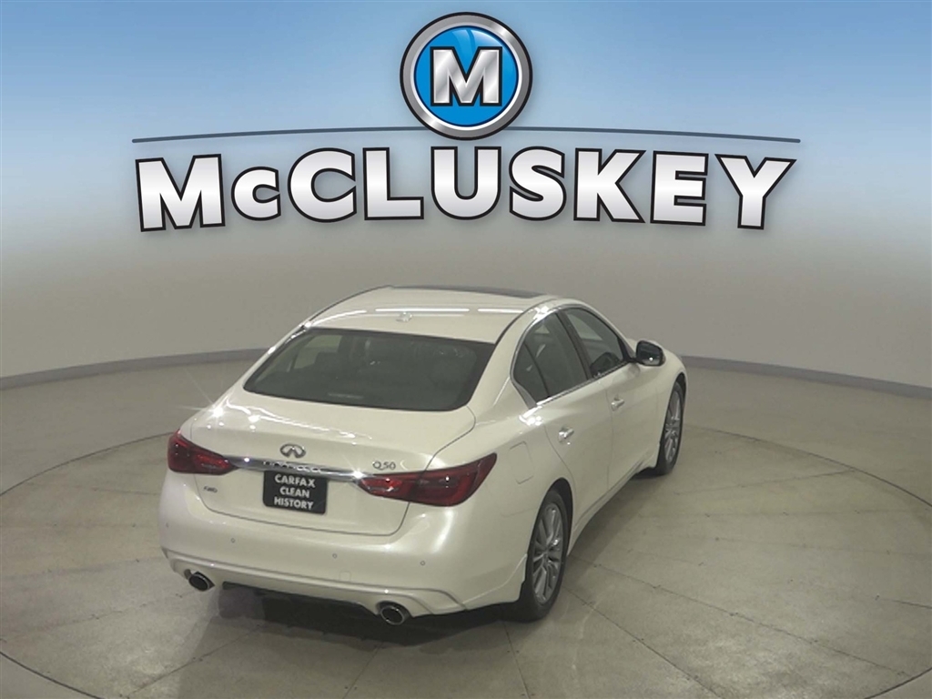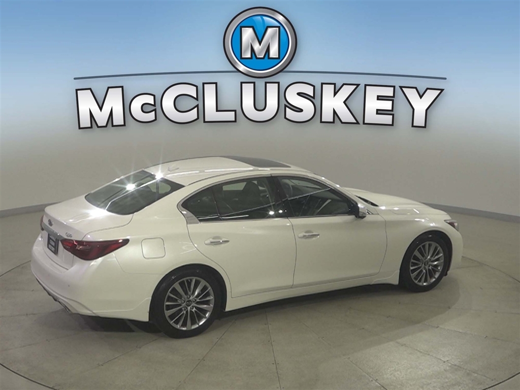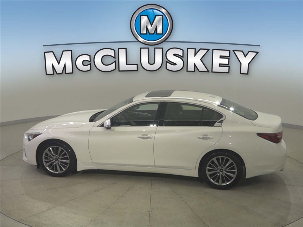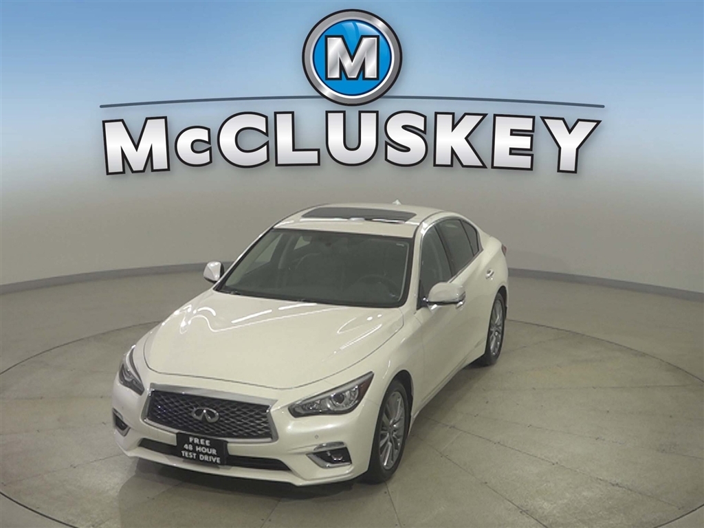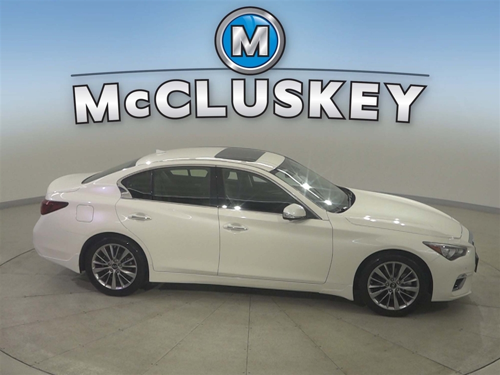 Call McCluskey Chevrolet at 513-741-1111 to schedule your Free 48 Hour Test Drive. MCCLUSKEY CHEVROLETS FREE LIFETIME MECHANICAL WARRANTY Unlimited Miles. Unlimited Years. Fully-Insured. Thousands of import and domestic models to choose from---ALL with FREE LIFETIME MECHANICAL PROTECTION! Call 513-741-1111 to learn more. Majestic White 2023 INFINITI Q50 LUXE 3.0L V6 Clean CARFAX. CARFAX One-Owner. McCluskeys Fully-Certified 172 Point Inspection, Super low miles...wont last long!, LEATHER, ALL WHEEL DRIVE / AWD, BACK UP CAMERA, HEATED SEATS, AWD.