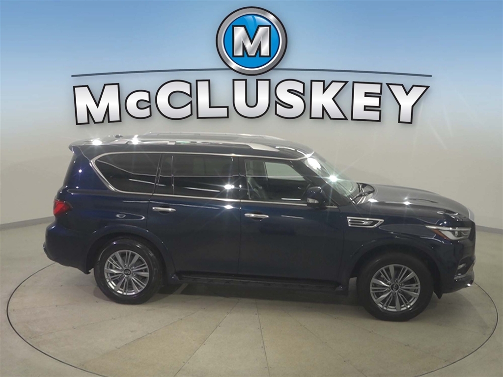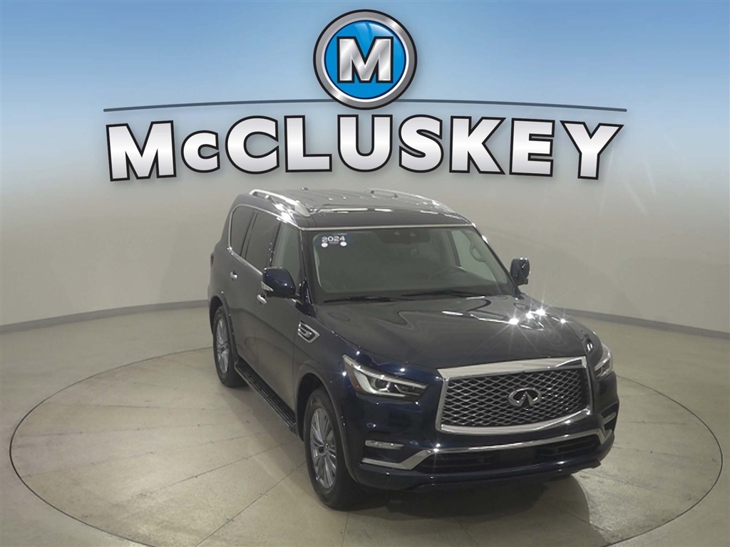 Call McCluskey Chevrolet at 513-741-1111 to schedule your Free 48 Hour Test Drive. MCCLUSKEY CHEVROLETS FREE LIFETIME MECHANICAL WARRANTY Unlimited Miles. Unlimited Years. Fully-Insured. Thousands of import and domestic models to choose from---ALL with FREE LIFETIME MECHANICAL PROTECTION! Call 513-741-1111 to learn more. Hermosa Blue 2024 INFINITI QX80 LUXE 5.6L V8 Clean CARFAX. CARFAX One-Owner. McCluskeys Fully-Certified 172 Point Inspection, Super low miles...wont last long!, LEATHER, 4 WHEEL DRIVE, BACK UP CAMERA, HEATED SEATS, THIRD ROW SEATING / 3RD ROW, 4WD.