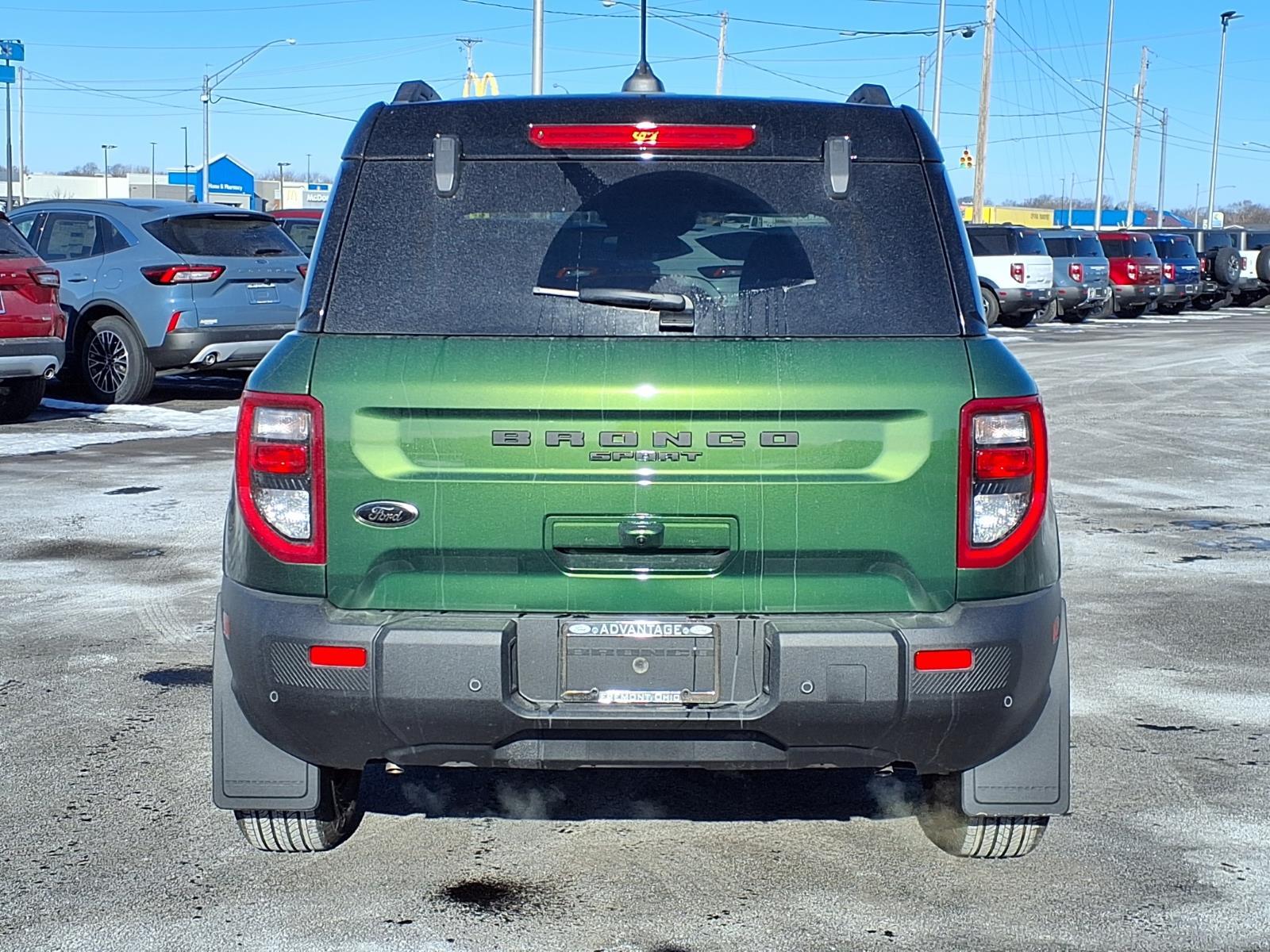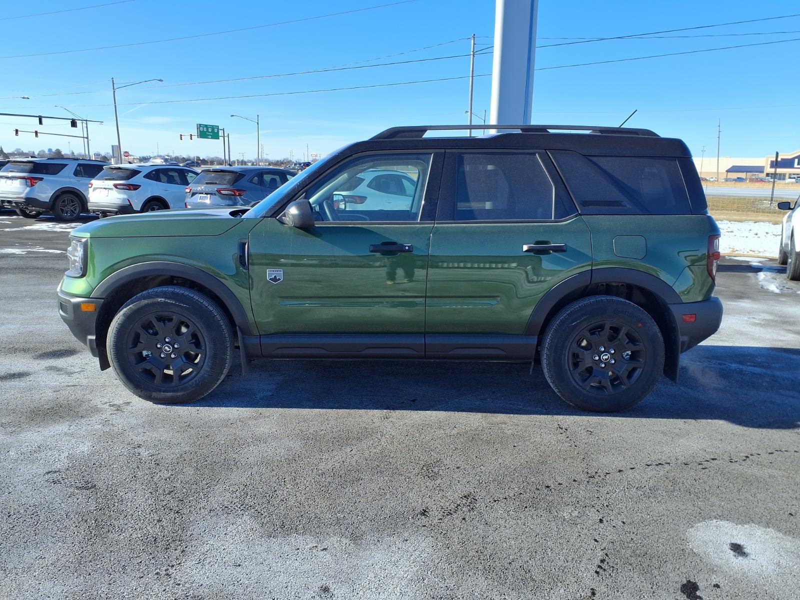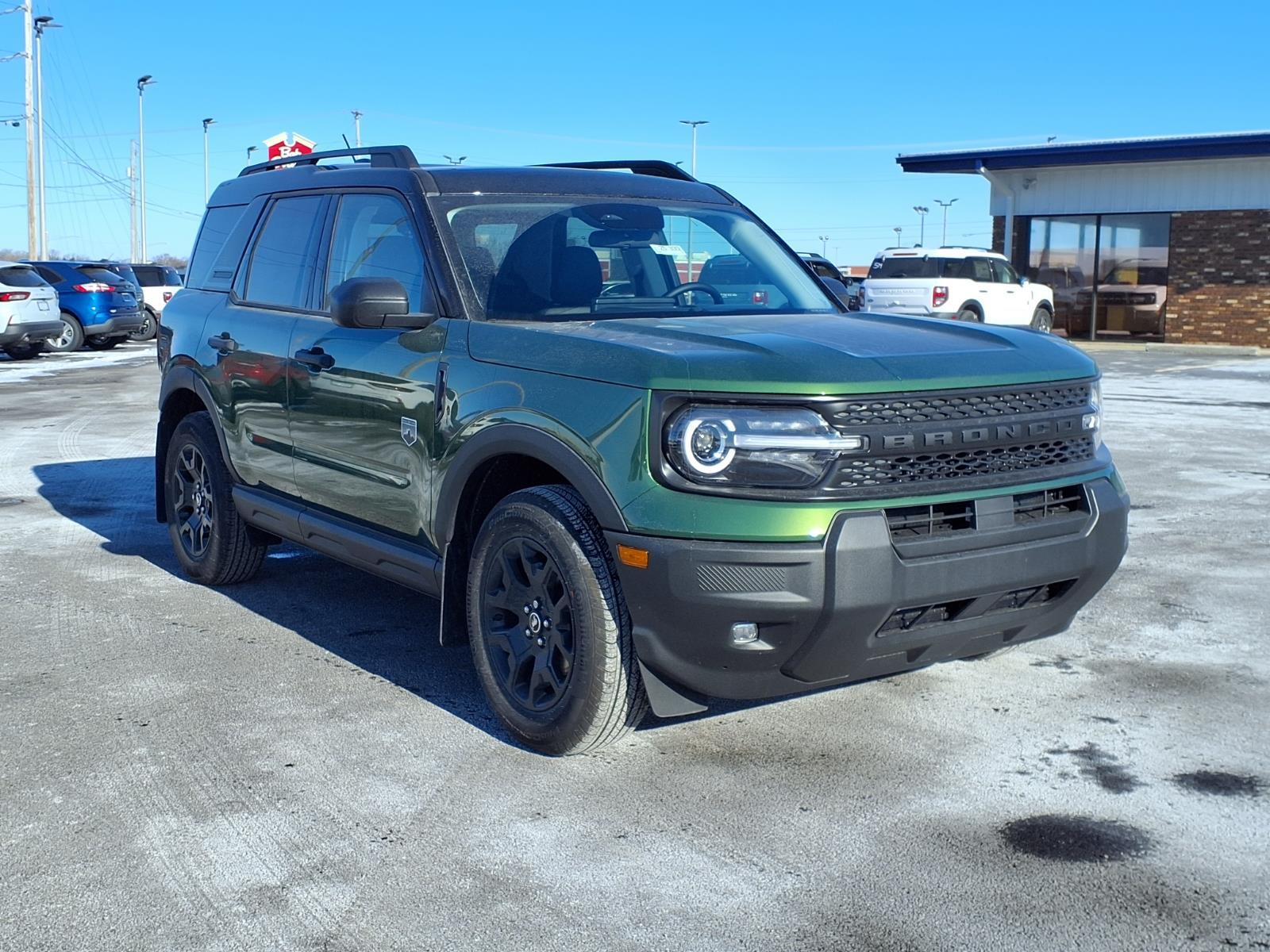 The Ford Bronco Sport Big Bend is a 2025 Vehicle all wheel drive, with a 1.5 liter 3 cylinder engine and turbocharged power. It has a green exterior and an ebony interior, and it has been crash tested for safety with a 5 out of 5 star rating. The Vehicle also features touch screen display, Bluetooth audio connection, blind spot sensor, hill start assist, on demand four wheel drive, Bluetooth phone connectivity, and more. With all these features, the Ford Bronco Sport Big Bend is sure to be an excellent choice for any driver looking for a reliable and safe Vehicle of its kind. Our motto - Where Friends Send Friends!!! Come visit our showroom today. We are located at 885 Hagerty Drive, Fremont, OH, 43420. Is this the car you've been looking for Contact Debby at (419) 334-9751 or by e-mail at debbyg@advantagefordlincolnsales.com.