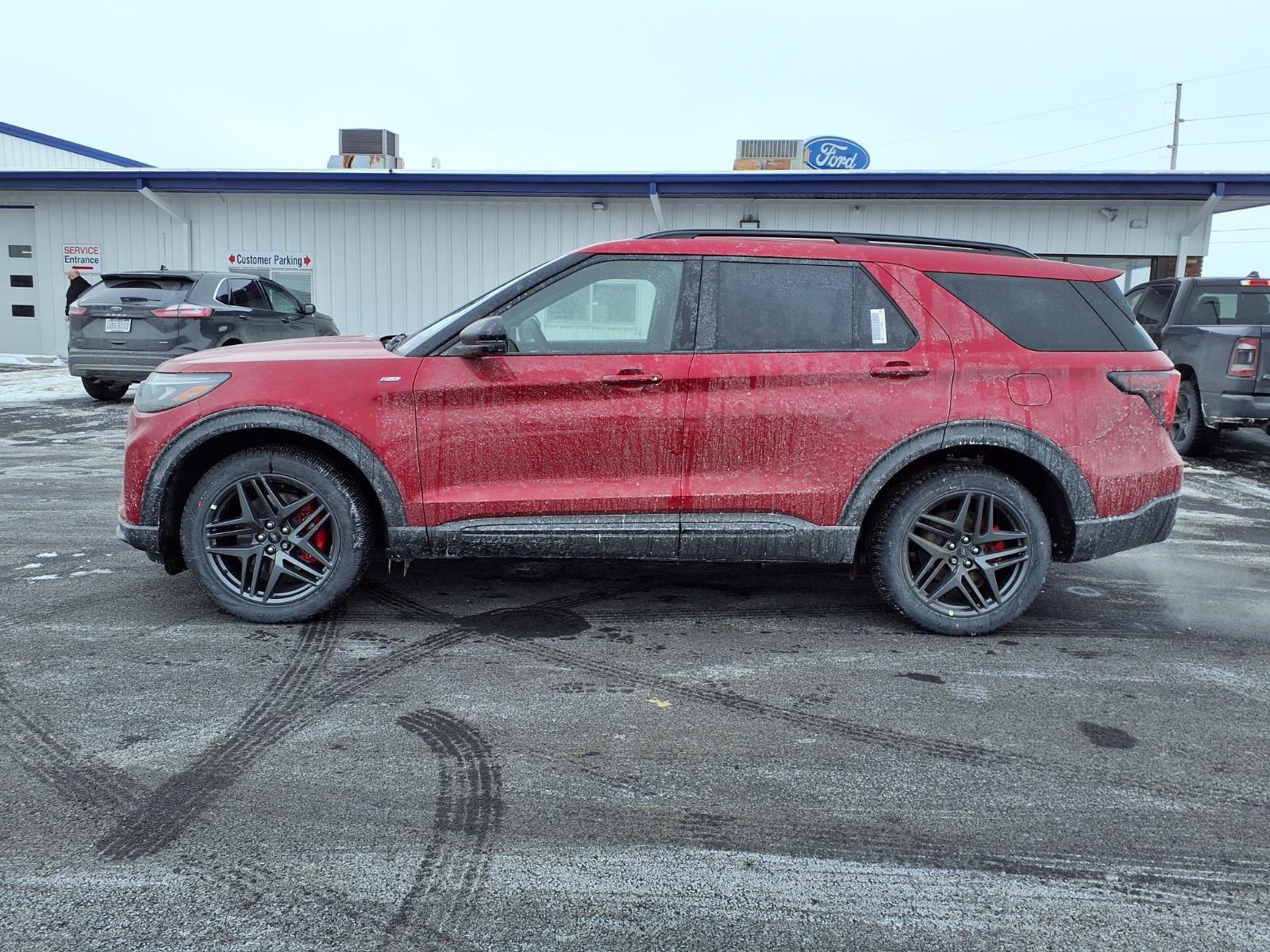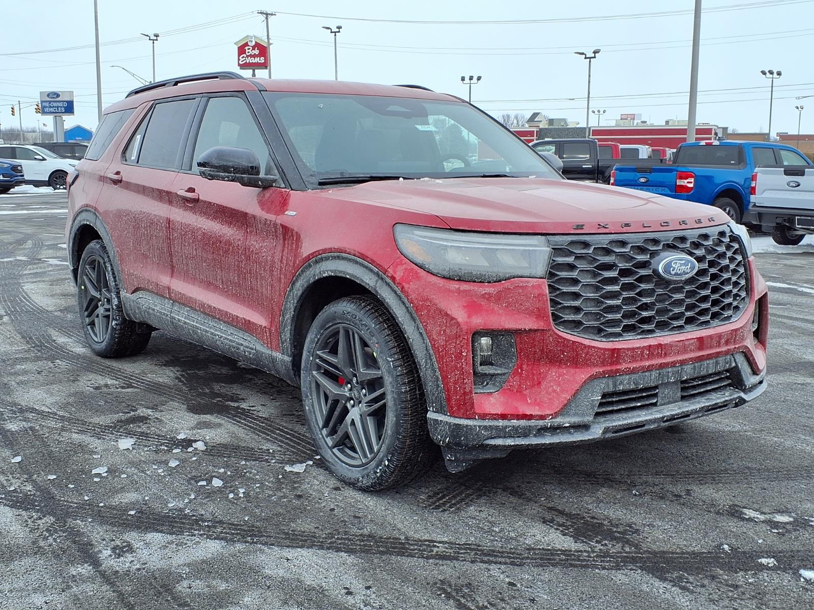 The 2026 Ford Explorer ST-Line is a powerful and reliable SUV all wheel drive. It has a rapid red metallic tinted clearcoat exterior and an onyx interior, making it stand out from the crowd. It has a 2.3 liter 4 cylinder engine with turbocharged capabilities, giving it an impressive fuel economy of 20 mpg in the city and 27 mpg on the highway. It also has a crash test rating of 5 out of 5 stars, making it one of the safest vehicles on the road today. The vehicle also comes with a number of features such as touch screen display, Bluetooth audio connection, blind spot sensor, hill start assist, center console with faux leather trim, on demand four wheel drive, navigation system with voice recognition, and Bluetooth phone connectivity. All in all, the 2026 Ford Explorer ST-Line is an excellent choice for anyone looking for a reliable and powerful vehicle. Our motto - Where Friends Send Friends!!! Come visit our showroom today. We are located at 885 Hagerty Drive, Fremont, OH, 43420. Is this the car you've been looking for Contact Debby at (419) 334-9751 or by e-mail at debbyg@advantagefordlincolnsales.com.
