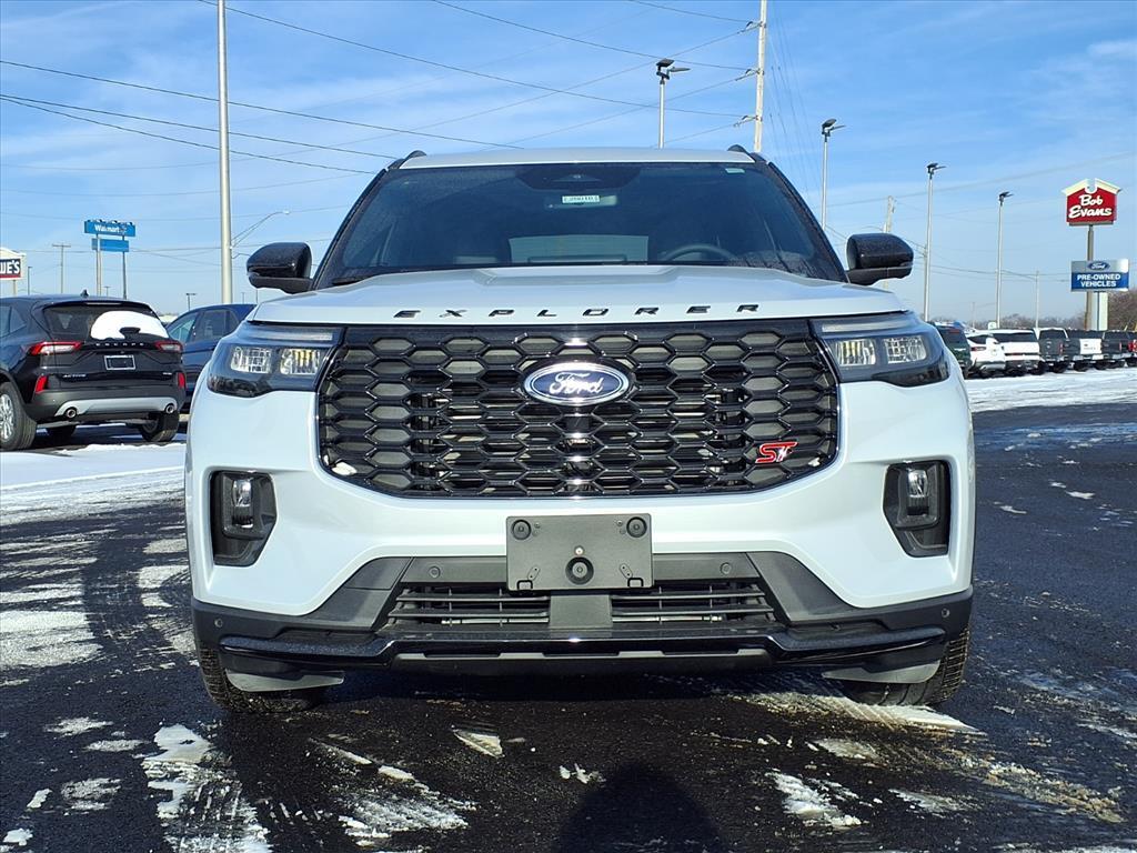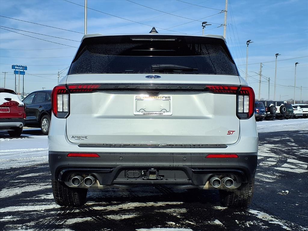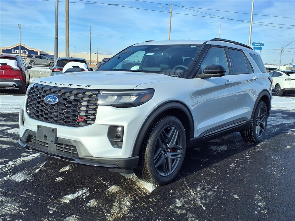 This vehicle is a 2026 Ford Explorer ST SUV all wheel drive, boasting a low mileage of 386 miles. It has an onyx aw interior and a white exterior, making it an eye-catching vehicle. It has a 3.0 liter 6 cylinder engine with twin turbo capabilities, and features such as a touch screen display, Bluetooth audio connection, blind spot sensor, hill start assist, and center console with faux leather trim. It also has on demand four wheel drive, navigation system with voice recognition, and Bluetooth phone connectivity for added convenience. This car has been crash tested to achieve a 5 out of 5 star rating, making it one of the safest cars on the road today. Our motto - Where Friends Send Friends!!! Come visit our showroom today. We are located at 885 Hagerty Drive, Fremont, OH, 43420. Is this the car you've been looking for Contact Debby at (419) 334-9751 or by e-mail at debbyg@advantagefordlincolnsales.com.