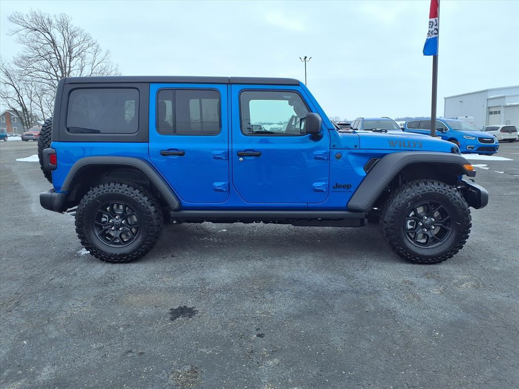 The new 2026 Jeep Wrangler Willys 4x4 blends classic Jeep heritage with serious trail capability and modern technology. Built on a rugged 4x4 platform with heavy-duty axles, E-Locker rear differential, 4.10 rear axle ratio, Willys suspension and Off-Road Plus mode for enhanced traction on challenging terrain. Sits on LT285/70R17 off-road tires with black painted wheels and features Willys-specific styling including hood decal and rock protection rails. Inside, enjoy Uconnect infotainment with touchscreen, Apple CarPlay and Android Auto, durable all-weather floor mats, auxiliary switches for accessories, and comfort features suited for everyday use. Available driver aids like enhanced adaptive cruise control and forward collision warning balance capability with convenience.