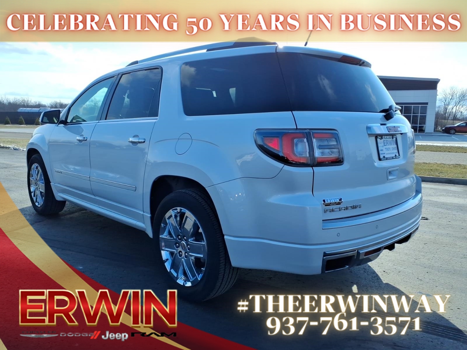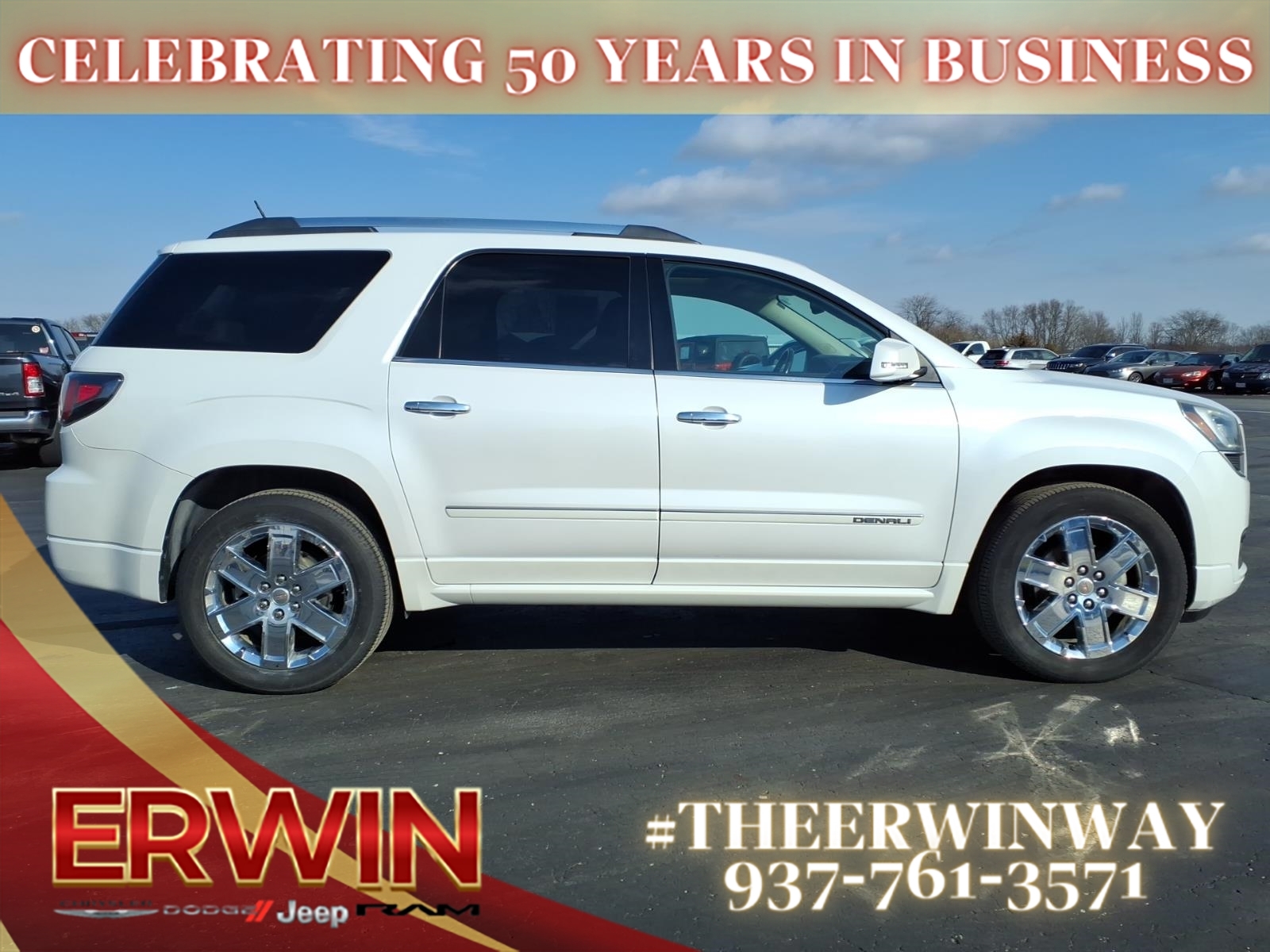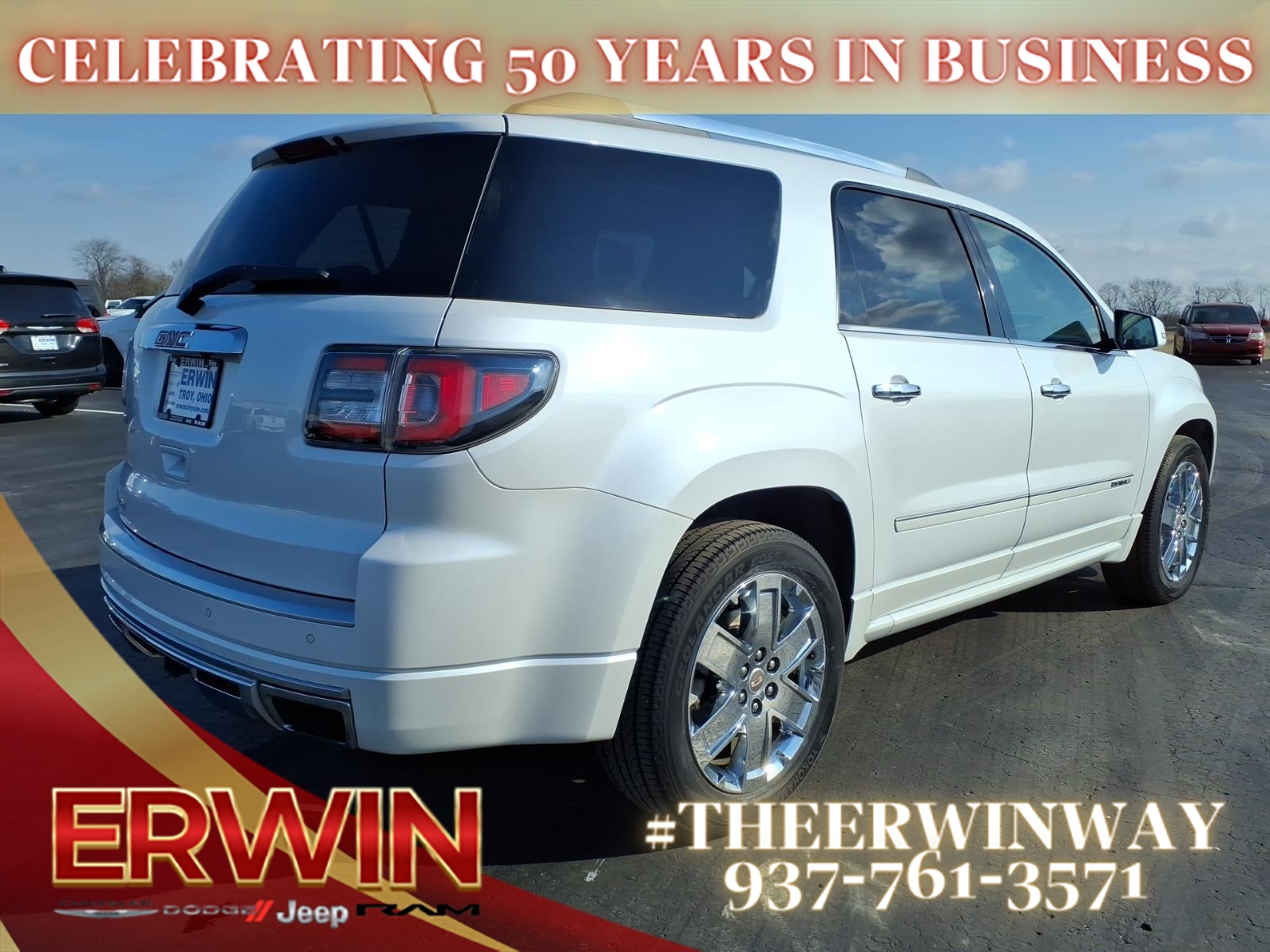 This 2016 GMC Acadia Denali is a reliable and luxurious SUV that has been meticulously maintained. With a 3.6 liter 6 cylinder engine and fuel injection, this vehicle has power and efficiency, while its FWD system ensures a smooth ride. The exterior of this vehicle is white and its crash test rating of 5 out of 5 stars makes it an excellent choice for safety. Additionally, this car has many features including blind spot sensor, hill start assist, navigation system with voice recognition, and a touch screen display for added convenience. With a carfax report available, this car is sure to turn heads on the road! Contact Details: Erwin Chrysler Dodge Jeep, 2775 S Co Rd. 25a, Troy, OH, 45373, pat@erwinchrysler.com, 9373355696.
