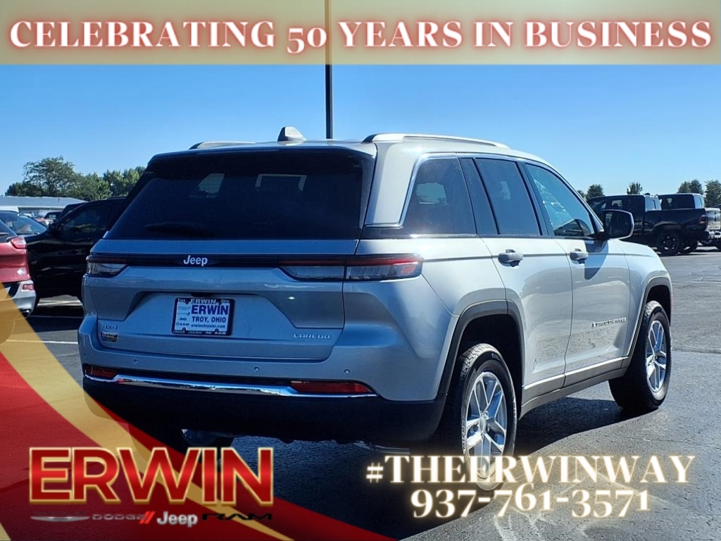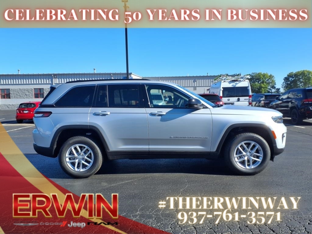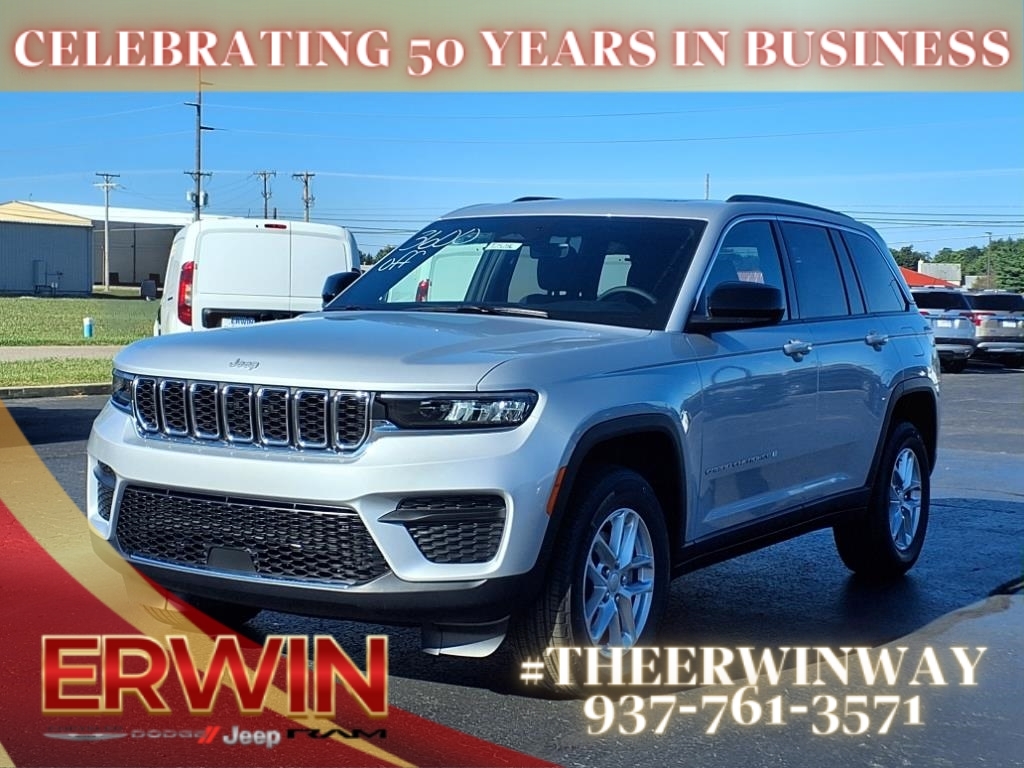 This 2025 Jeep Grand Cherokee Laredo is a state-of-the-art motorcar, with a 3.6 liter 6 cylinder engine and fuel injection. It has a sleek silver zynith clear coat (pse) exterior, and a global black (x7) interior that is sure to turn heads. It has been crash tested to achieve a 5 out of 5 stars rating, and features such as touch screen display, Bluetooth audio connection, blind spot sensor, hill start assist, full time four wheel drive, and Bluetooth phone connectivity make this car an ideal choice for any driver. With its combination of modern technology and safety features, this car is sure to be a reliable and comfortable ride for years to come. Contact Details: Erwin Chrysler Dodge Jeep, 2775 S Co Rd. 25a, Troy, OH, 45373, pat@erwinchrysler.com, 9373355696.