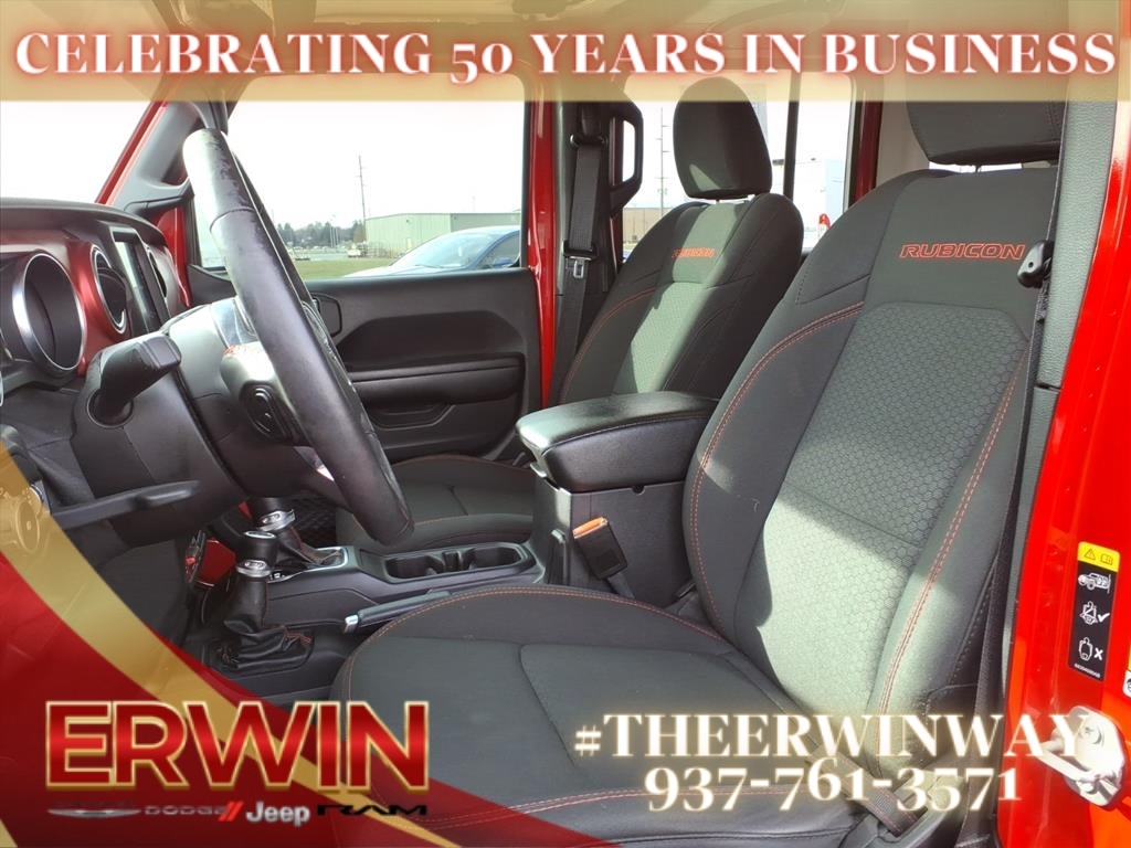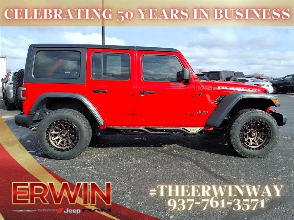 This 2021 Jeep Wrangler Unlimited Rubicon is a certified pre-owned vehicle with low mileage and a firecracker red clear coat (prc) exterior. It has a 2.0 liter 4 cylinder engine with turbocharged capabilities, and a black (x9) interior. Vehicle features include hill start assist, part time four wheel drive, and a 4x4 drivetrain. This car has been meticulously maintained and comes with a Carfax report available for review. With its low mileage, low price, and impressive features, this car is sure to make an impact on any car enthusiast's list. Contact Details: Erwin Chrysler Dodge Jeep, 2775 S Co Rd. 25a, Troy, OH, 45373, pat@erwinchrysler.com, 9373355696.