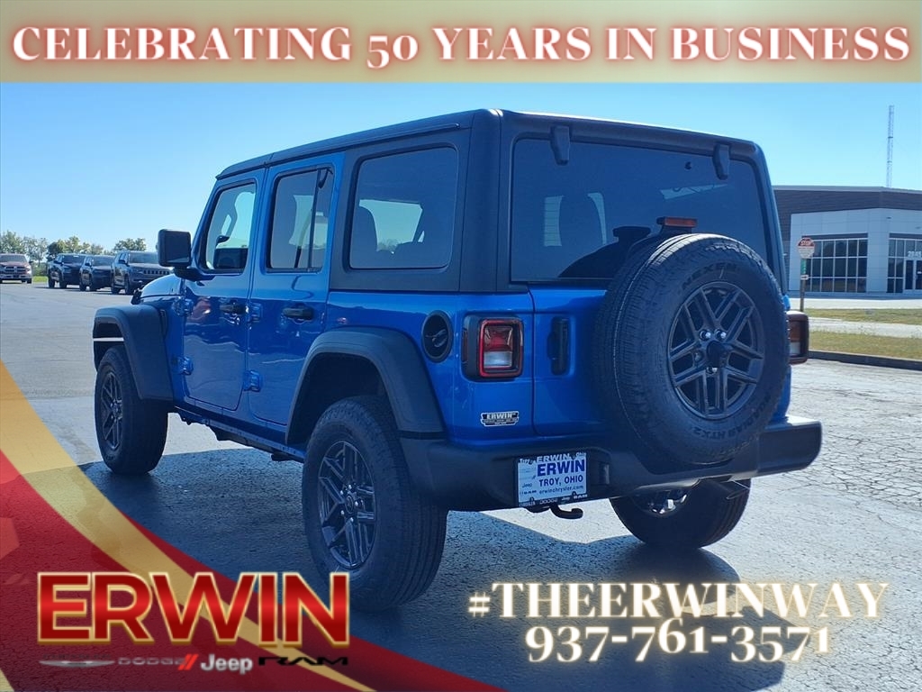 This 2025 Jeep Wrangler Sport Vehicle is a powerful and reliable 4x4 with a 3.6 liter 6 cylinder engine and sequential port fuel injection. It has a hydro blue pearl coat exterior and a black (x9) interior, making it a stylish and sophisticated ride. It also features touch screen display, Bluetooth audio connection, hill start assist, part time four wheel drive, Bluetooth phone connectivity, and more. This vehicle is sure to turn heads on the road and make any journey more enjoyable. Contact Details: Erwin Chrysler Dodge Jeep, 2775 S Co Rd. 25a, Troy, OH, 45373, pat@erwinchrysler.com, 9373355696.