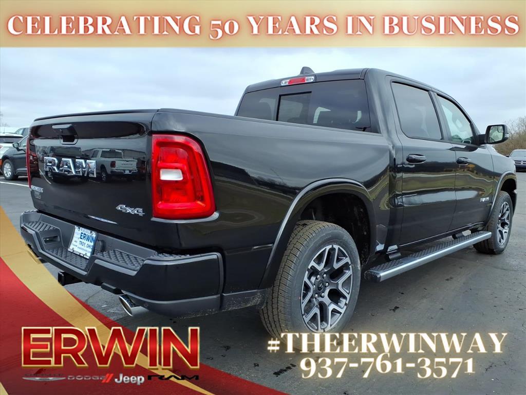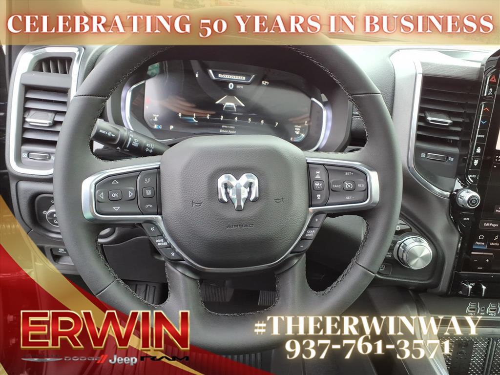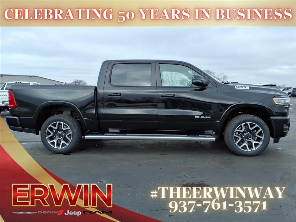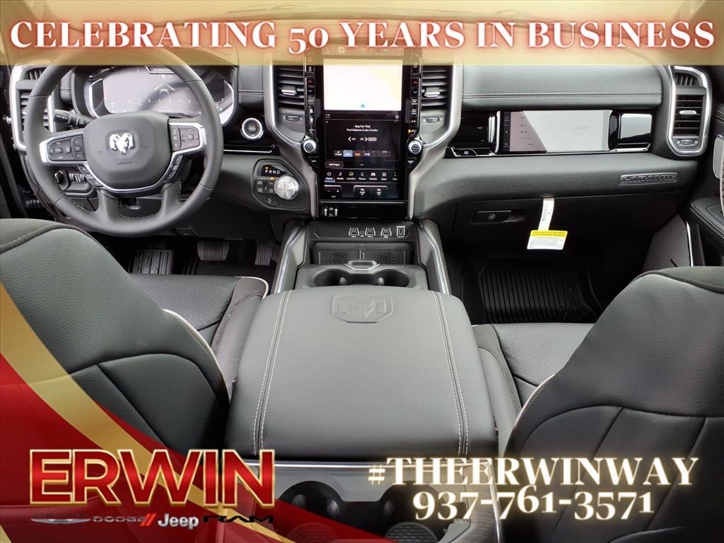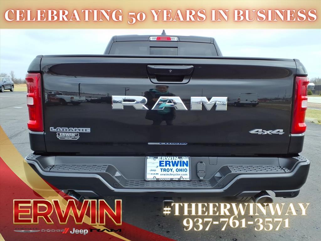 The 2026 RAM Crew Cab 4x4, 1500 Laramie is a state-of-the-art motorcar that has been designed to provide its driver with the utmost in safety and comfort. This powerful vehicle features a 3.0 liter 6 cylinder engine with twin turbochargers, and a diamond black crystal exterior that is sure to turn heads. Inside, it has a black x9 interior with leather-trimmed seats and state-of-the-art features such as touch screen display, Bluetooth audio connection, blind spot sensor, hill start assist, part time with on demand four wheel drive, navigation system with voice recognition, and Bluetooth phone connectivity. This car has been crash tested to achieve a 4 out of 5 star rating, making it one of the safest vehicles on the road today. With its combination of power, luxury, and safety features, the 2026 RAM Crew Cab 4x4, 1500 Laramie is sure to be a popular choice for drivers looking for a reliable and comfortable ride. Contact Details: Erwin Chrysler Dodge Jeep, 2775 S Co Rd. 25a, Troy, OH, 45373, pat@erwinchrysler.com, 9373355696.