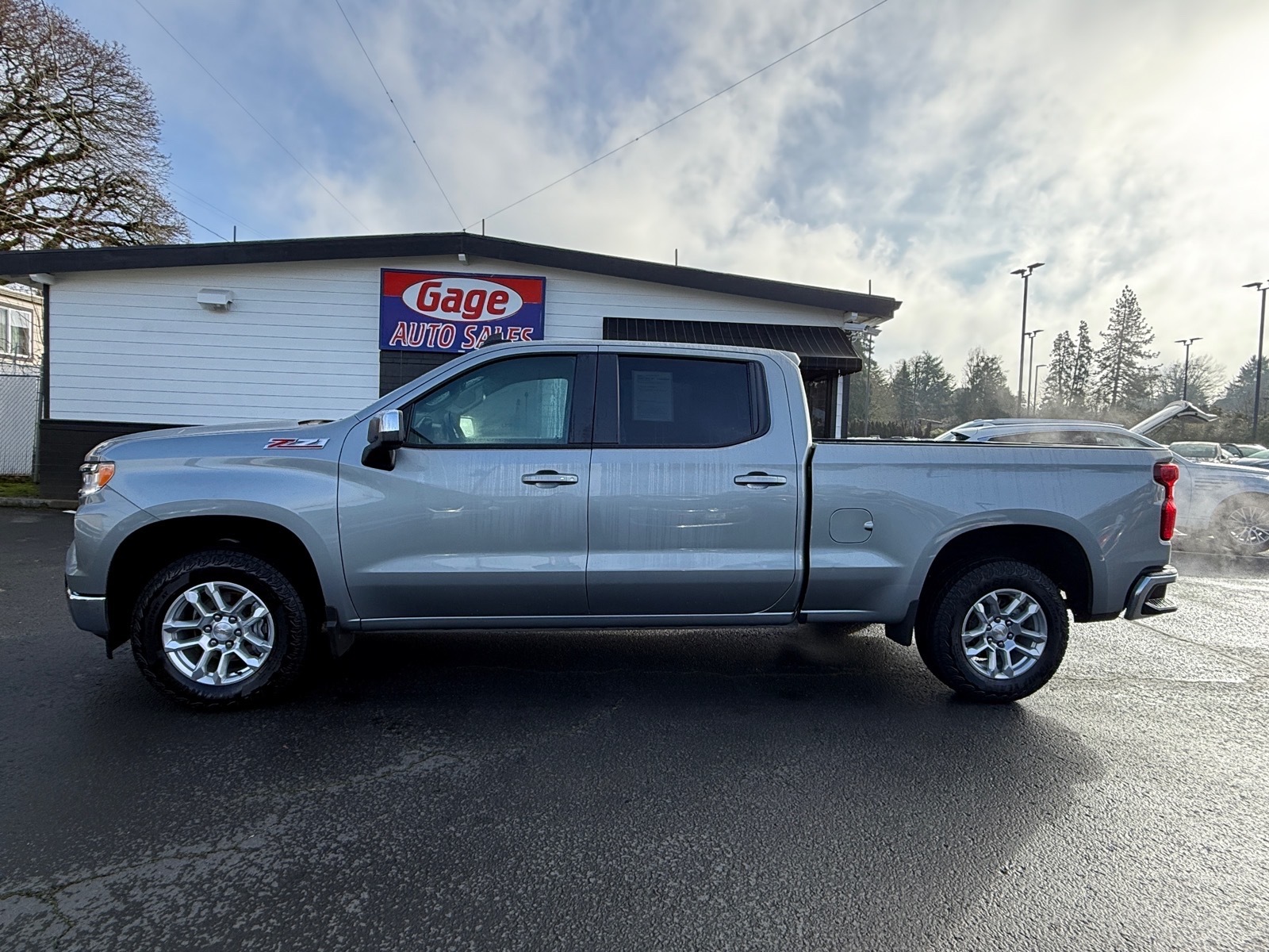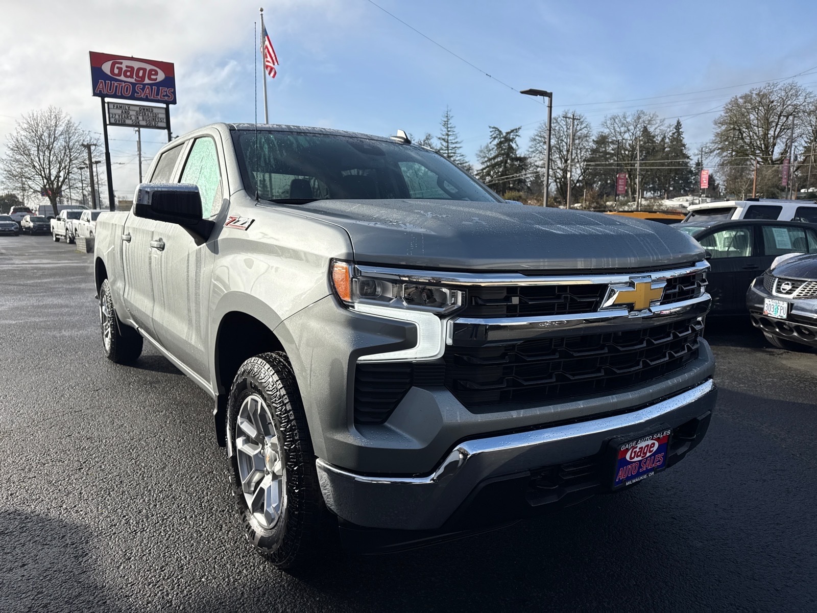 This vehicle is a 2025 Chevrolet Silverado 1500 LT 4x4 Crew Cab 6.6 ft. SB with a crash test rating of 5 out of 5 stars. It has driven 14,903 miles and comes with a carfax report available for review. The 5.3 liter EcoTec3 V8 355hp 383 lb-ft engine has direct injection and is paired with a pewter exterior and jet black interior. It has been given a crash test rating of 5 out of 5 stars, making it one of the safest cars on the road today. Features such as touch screen display, Bluetooth audio connection, hill start assist, part time with on demand four wheel drive, navigation system with voice recognition, and Bluetooth phone connectivity make this car an ideal choice for anyone looking for a reliable ride. Contact Details: Gage Auto Sales, 13432 SE McLoughlin Blvd., Milwaukie, OR, 97222, sales@gageauto.dealerspace.com, (888) 205-6257.