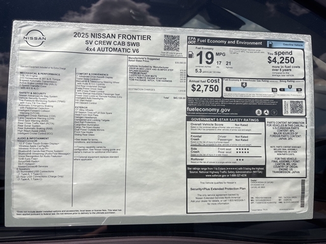 Tactical Green Metallic 2025 Nissan Frontier SV 4WD 9-Speed Automatic with Overdrive 3.8L DI DOHC 24V V6 4WD.