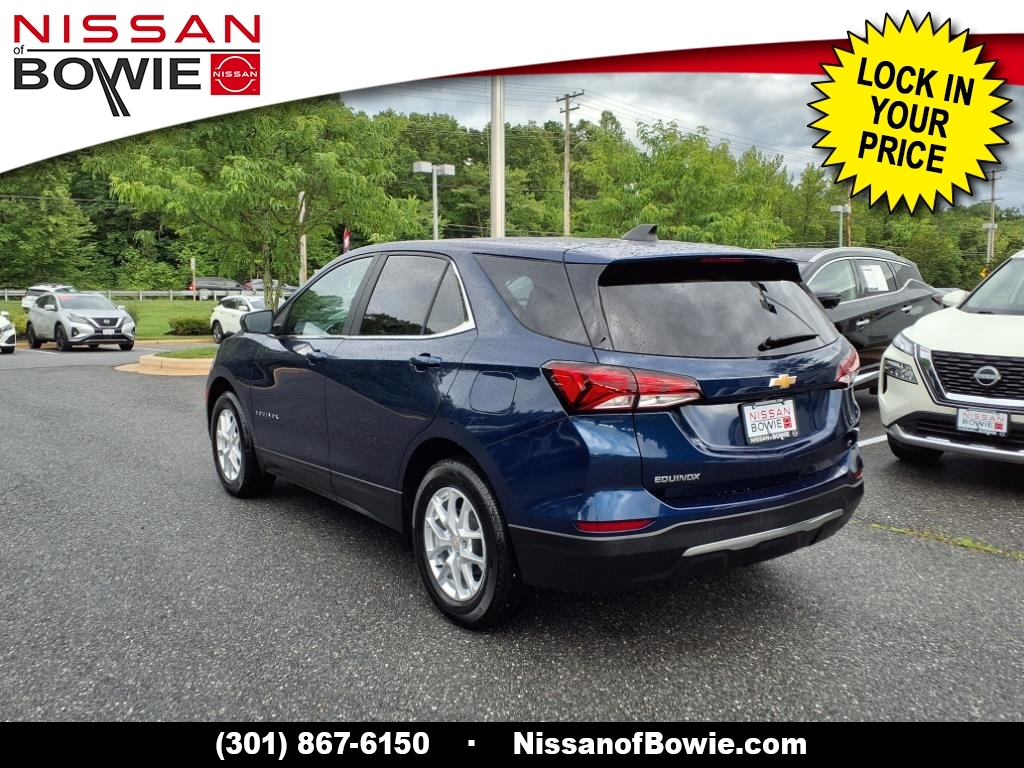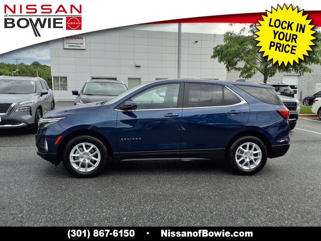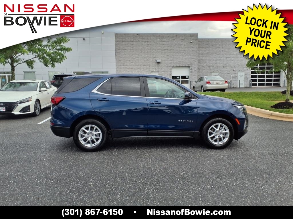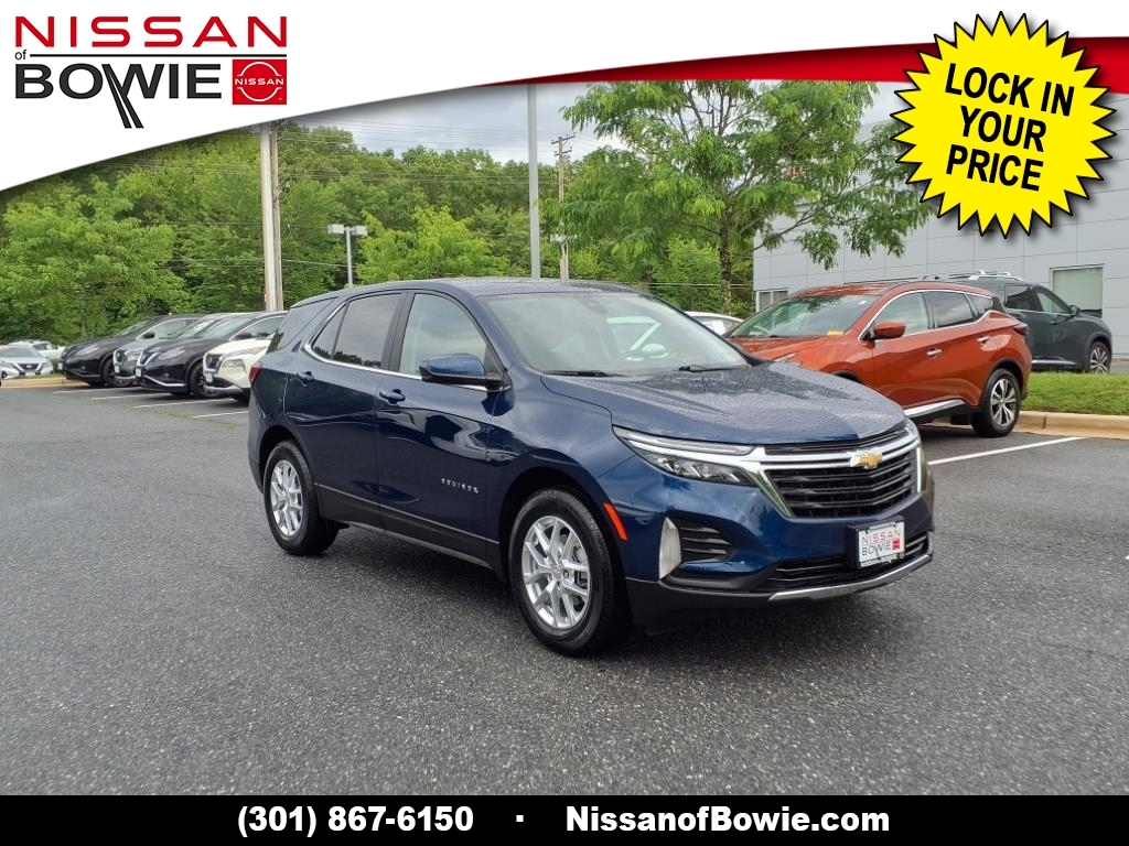 **4-CYLINDER ENGINE - All The Power - Better MPG!, **BLIND SPOT WARNING SYSTEM!, **BLUE-TOOTH HANDS-FREE PHONE SYSTEM!, **LANE DEPARTURE WARNING SYSTEM!, **REAR-VIEW BACK-UP CAMERA!, **TOUCH-SCREEN RADIO DISPLAY!, 17Aluminum Wheels, 2 Rear USB Charging-Only Ports, 2 USB Ports & Auxiliary Input Jack, 2-Way Power Driver Lumbar Control Seat Adjuster, 4-Wheel Disc Brakes, 6 Speaker Audio System Feature, 6 Speakers, 8-Way Power Driver Seat Adjuster, ABS brakes, Air Conditioning, Alloy wheels, AM/FM radio: SiriusXM, Auto High-beam Headlights, Bluetooth� For Phone, Brake assist, Bumpers: body-color, CARFAX ONE OWNER!!!, Check out this 2022 Chevrolet Equinox in Blue Glow Metallic with Jet Black Cloth, Delay-off headlights, Dual front impact airbags, Dual front side impact airbags, Electronic Stability Control, Emergency communication system: OnStar and Chevrolet connected services capable, Four wheel independent suspension, Front anti-roll bar, Front Passenger 4-Way Manual Seat Adjuster, Front reading lights, Fully automatic headlights, Heated door mirrors, Low tire pressure warning, Occupant sensing airbag, Outside temperature display, Overhead airbag, Panic alarm, Passenger door bin, Passenger vanity mirror, Power door mirrors, Power driver seat, Power steering, Power windows, Preferred Equipment Group 1LT, Premium audio system: Chevrolet Infotainment 3, Premium Cloth Seat Trim, Radio data system, Radio: Chevrolet Infotainment 3 System w/AM/FM, Rear anti-roll bar, Rear window defroster, Rear window wiper, Remote keyless entry, Security system, Speed control, Speed-sensing steering, Split folding rear seat, Spoiler, Steering wheel mounted audio controls, Traction control, Variably intermittent wipers. Recent Arrival! 26/31 City/Highway MPG Odometer is 27610 miles below market average! CARFAX One-Owner. Please contact a Nissan of Bowie Product Specialist at 301-867-6150 for more information. All our prices exclude tax, tags, dealer processing fee.