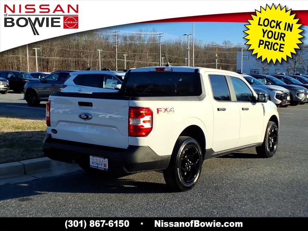 4-Cylinder / 4cyl / i4 - All the POWER, better MPG, 4-Wheel Disc Brakes, 4K Tow Package, 6 Speakers, 6.5Productivity Screen in Instrument Cluster, ABS brakes, Air Conditioning, All Wheel Drive / AWD - Never Worry About the Weather!, Alloy wheels, AM/FM radio, Auto High-beam Headlights, Automatic temperature control, Below Market Value, BLIS Blind Spot Info System w/Cross-Traffic Alert, Bluetooth Hands Free Phone System, Brake assist, Bumpers: body-color, Carfax One-Owner!, Check out this 2024 Ford Maverick in Oxford White with Navy Pier/Medium Slate Cloth, Clean Carfax!, Compass, Delay-off headlights, Driver door bin, Driver vanity mirror, Dual front impact airbags, Dual front side impact airbags, Electronic Stability Control, Equipment Group 300A Standard, Exposed Front Tow Hooks, Exterior Parking Camera Rear, Ford Co-Pilot360, Four wheel independent suspension, Front anti-roll bar, Front Bucket Seats, Front Center Armrest, Front License Plate Bracket, Front reading lights, Fully automatic headlights, FX4 Off-Road Package, Great MPG, Higher Capacity Radiator, Hill Descent Control, Illuminated entry, Knee airbag, Lane-Keeping System, Low Miles!, Low Monthly Payment, Low tire pressure warning, No Accidents!, No Money Down / $0 Down, Occupant sensing airbag, Outside temperature display, Overhead airbag, Overhead console, Panic alarm, Passenger door bin, Passenger vanity mirror, Performance Suspension, Power door mirrors, Power steering, Power windows, Push Button Start!, Radio data system, Radio: AM/FM Stereo w/6 Speakers, Rear anti-roll bar, Rear seat center armrest, Rear step bumper, Rear-View Back up Camera, Remote keyless entry, Security system, Speed control, Speed-sensing steering, Steering wheel mounted audio controls, Tachometer, Telescoping steering wheel, Tilt steering wheel, Touch Screen!, Traction control, Trailer Brake Controller, Trailer Hitch Receiver, Trailer Hitch Receiver w/4-Pin Connector, Transmission Oil Cooler, Trip computer, Unique Cloth Front Bucket Seats, Upgraded Cooling Fan, Upgraded Drive Ratio, Wheels: 17Carbonized Gray Painted Aluminum, Wheels: 17Unique Ebony Painted Aluminum, Work Truck. Recent Arrival! 22/29 City/Highway MPG CARFAX One-Owner. Please contact a Nissan of Bowie Product Specialist at 301-867-6150 for more information. All our prices exclude tax, tags, dealer processing fee.