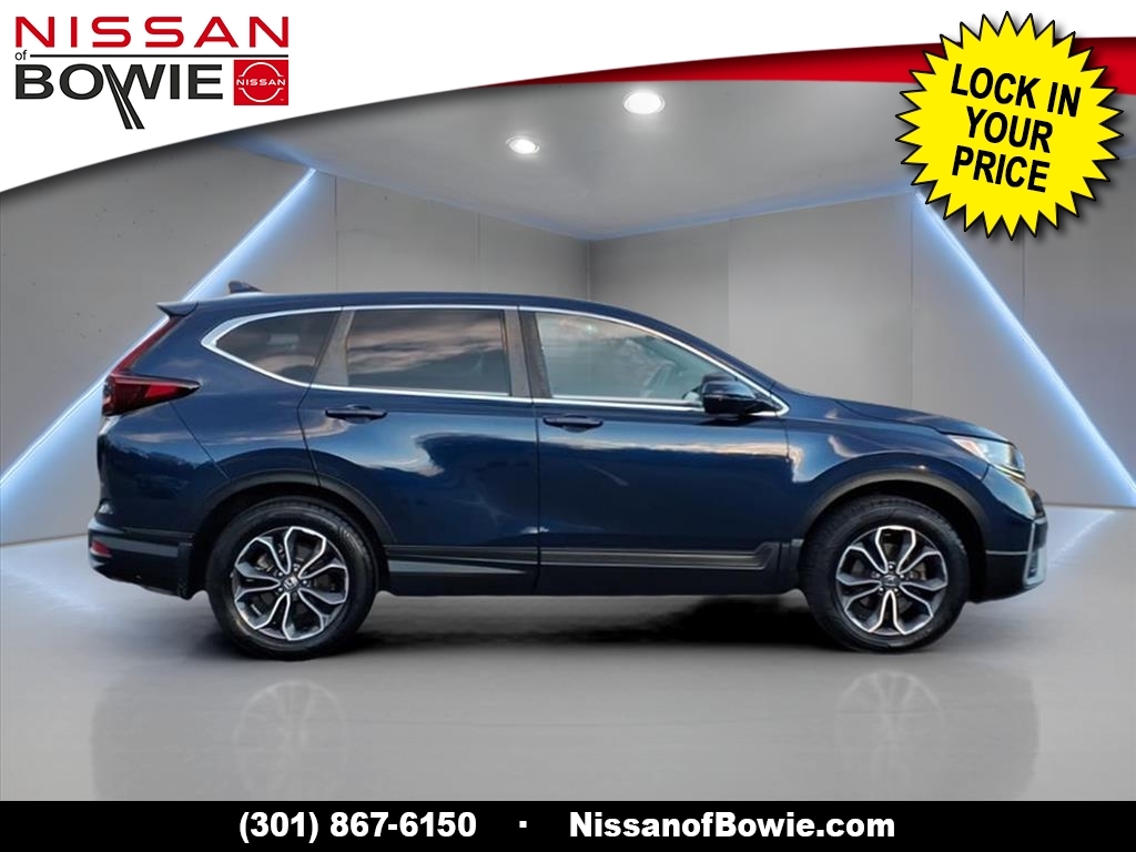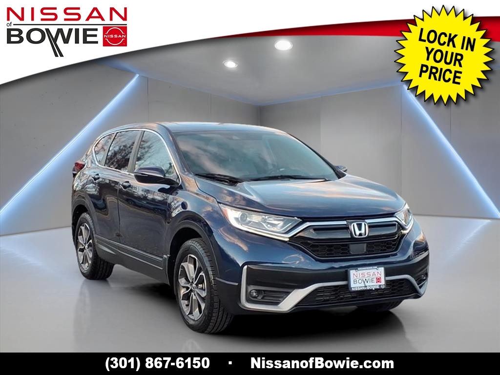AWD, 18Alloy Wheels, 4-Cylinder / 4cyl / i4 - All the POWER, better MPG, 4-Wheel Disc Brakes, 5.64 Axle Ratio, 6 Speakers, ABS brakes, Adaptive Cruise Control: Adaptive Cruise Control (ACC) with Low-Speed Follow, Air Conditioning, All Wheel Drive / AWD - Never Worry About the Weather!, Alloy wheels, AM/FM radio: SiriusXM, Apple CarPlay/Android Auto, Auto High-beam Headlights, Automatic temperature control, Below Market Value, Birds Eye Around View Monitor, Blind Spot Information (BSI) System warning, Blind Spot Warning System / BSM / BSW / BLIS, Bluetooth Hands Free Phone System, Brake assist, Bumpers: body-color, Carfax One-Owner!, Check out this 2020 Honda CR-V in Blue with Gray Cloth, Clean Carfax!, Cloth Seat Trim, Compass, Delay-off headlights, Driver door bin, Driver vanity mirror, Dual front impact airbags, Dual front side impact airbags, Electronic Stability Control, Exterior Parking Camera Rear, Forward collision: Collision Mitigation Braking System (CMBS) FCW mitigation, Four wheel independent suspension, Front anti-roll bar, Front Bucket Seats, Front Center Armrest, Front dual zone A/C, Front fog lights, Front reading lights, Great MPG, Heated door mirrors, Heated Front Bucket Seats, Heated front seats, Heated Seats, Illuminated entry, Lane Departure Warning / LDW / LDA, Low Miles!, Low tire pressure warning, New Tires, No Accidents!, No Money Down / $0 Down, Occupant sensing airbag, Outside temperature display, Overhead airbag, Overhead console, Panic alarm, Passenger door bin, Passenger vanity mirror, Power door mirrors, Power driver seat, Power moonroof, Power steering, Power windows, Push Button Start!, Radio data system, Radio: 180-Watt AM/FM/HD/SiriusXM Audio System, Rear anti-roll bar, Rear seat center armrest, Rear window defroster, Rear window wiper, Rear-View Back up Camera, Remote keyless entry, Security system, SiriusXM!, Speed control, Speed-sensing steering, Speed-Sensitive Wipers, Split folding rear seat, Spoiler, Steering wheel mounted audio controls, Tachometer, Telescoping steering wheel, Tilt steering wheel, Touch Screen!, Traction control, Trip computer, Turn signal indicator mirrors, Variably intermittent wipers. Recent Arrival! 27/32 City/Highway MPG CARFAX One-Owner. Please contact a Nissan of Bowie Product Specialist at 301-867-6150 for more information. All our prices exclude tax, tags, dealer processing fee.
