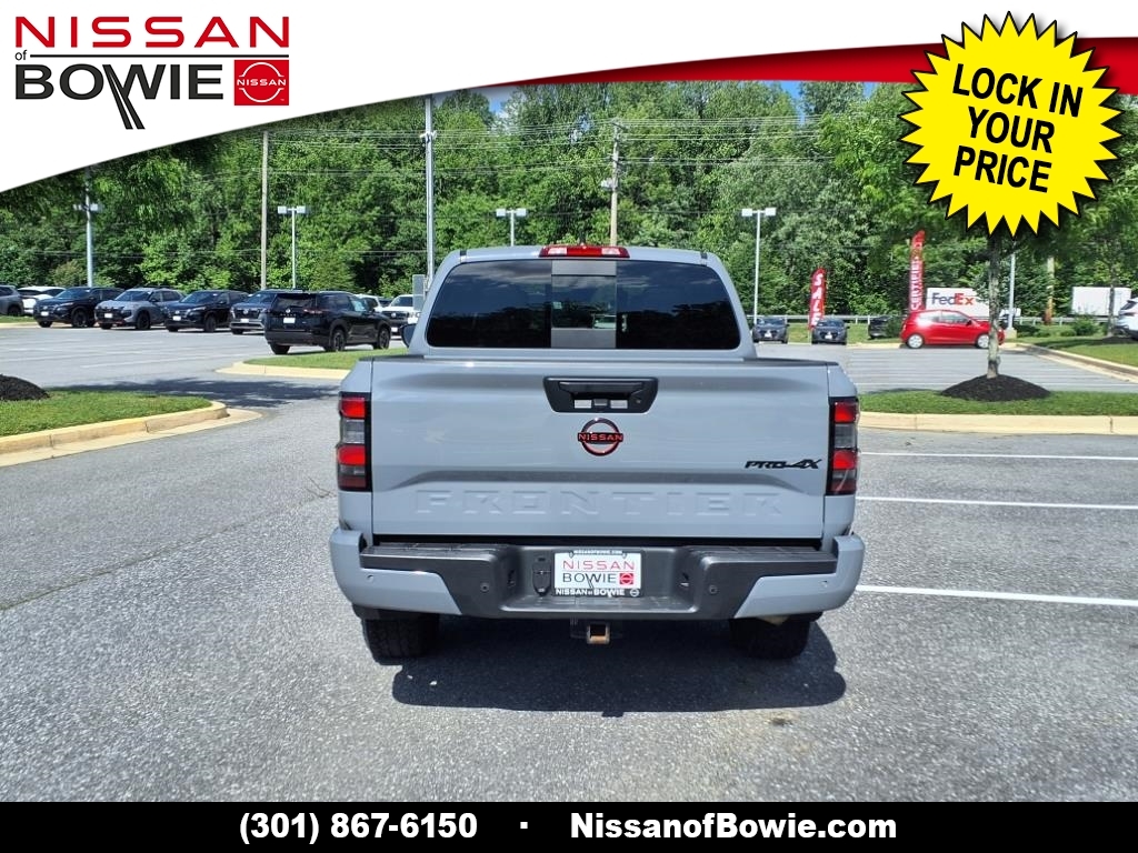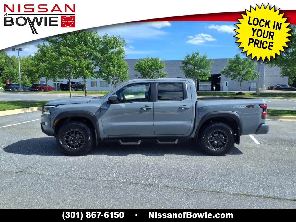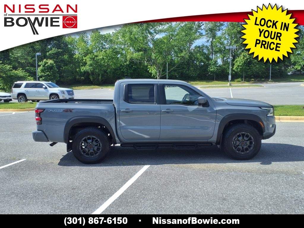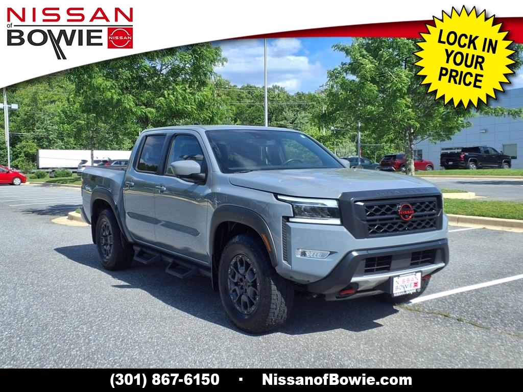 4WD, ** Bought Here & Serviced Here! Local Previous Owner! **, ***NISSAN CERTIFIED!!! (Drive with confidence AND a 100,000 Mile Warranty!), **BIRDS-EYE AROUND VIEW MONITOR!, **BLIND SPOT WARNING SYSTEM!, **BLUE-TOOTH HANDS-FREE PHONE SYSTEM!, **FOUR WHEEL DRIVE! - Never Worry About The Weather!, **HEATED LEATHER SEATS!, **LANE DEPARTURE WARNING SYSTEM!, **MOONROOF!, **NAVIGATION!, **NISSAN INTELLIGENT KEY, **PUSH-BUTTON IGNITION START!, **REAR-VIEW BACK-UP CAMERA!, **V6 ENGINE - Unbelievable Pick-Up!, 120V Power Outlet in Bed, 120V Power Outlet in Rear Center Console, 17Accessory Dark Beadlock Style Alloy Wheels, Air Conditioning, All-Season Floor Mats, Alloy wheels, AM/FM radio: SiriusXM, Auto-Dimming Mirror, Auto-Tilt & Slide Sunroof w/Manual Shade, Bed Under-Rail Lighting, Brake assist, CARFAX ONE OWNER AND NO ACCIDENTS!!, CARFAX ONE OWNER!!!, Check out this 2024 Nissan Frontier in Boulder Gray Pearl with Steel Leather, CLEAN CARFAX!!, Delay-off headlights, Driver door bin, Driver vanity mirror, Electronic Stability Control, Electronic Tailgate Lock, Emergency communication system, Fender Premium Audio System w/10 Speakers, Front & Rear Leather Seat Trim (1st/2nd Rows), Front anti-roll bar, Front dual zone A/C, Front fog lights, Front wheel independent suspension, Fully automatic headlights, Heated Front Seats, Heated Outside Mirrors, Heated Steering Wheel, HomeLink UGDO, Intelligent Around View Monitor (I-AVM), Knee airbag, Leather steering wheel, Navigation System, NissanConnect featuring Apple CarPlay and Android Auto, Off-Road Protection Package, Off-Road Style Step Rails, Overhead airbag, Panic alarm, Partial Under-Seat Storage Delete, Passenger door bin, Power door mirrors, Power driver seat, Power steering, Power windows, PRO Convenience Package, PRO Premium Package, PRO-4X Carpeted Floor Mats, PRO-4X Mud Flaps, Radio data system, Radio: 1CD/SXM/AM/FM/AUX/USB/MP3/WMA Audio System, Rear anti-roll bar, Rear seat center armrest, Rear side impact airbag, Rear step bumper, Remote Engine Starter, Remote keyless entry, Security system, Speed control, Speed-sensing steering, Spray-In Bedliner, Tachometer, Tow Package, Trailer Hitch w/Wiring Harness, Trip computer, Utili-Track System, Variably intermittent wipers, Wireless Charging For Personal Devices. Recent Arrival! Odometer is 1829 miles below market average! CARFAX One-Owner. Clean CARFAX. Please contact a Nissan of Bowie Product Specialist at 301-867-6150 for more information. All our prices excl