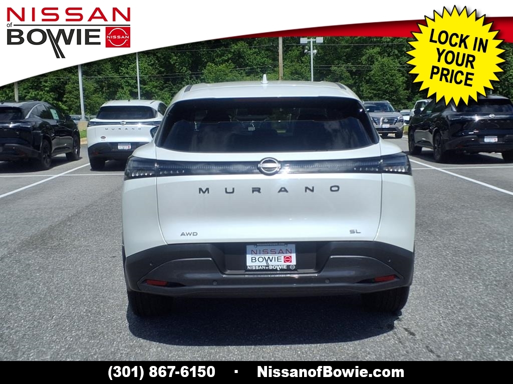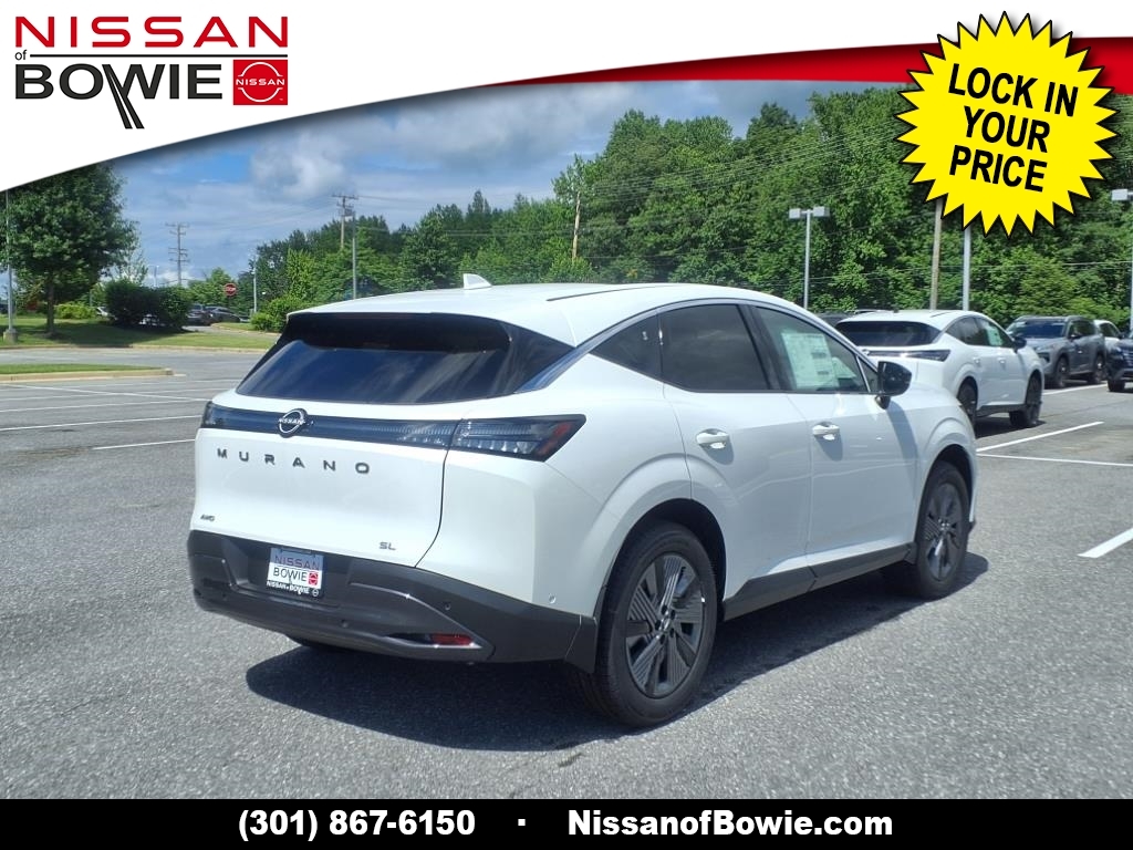 Everest White Pearl Tricoat 2025 Nissan Murano SL AWD 9-Speed Automatic I4 9-Speed Automatic, AWD, Check out this 2025 Nissan Murano in Everest White Pearl Tricoat with Graphite Artificial Leather, No Money Down / $0 Down. Recent Arrival! 21/27 City/Highway MPG Additional costs include destination, dealer installed options Premium Care, sales tax, tags and dealer processing fee of $799. Additional rebates may apply. Please see dealer for details. Price does include: $500 - Nissan Conditional Offer - Military Discount. Exp. 08/04/2025