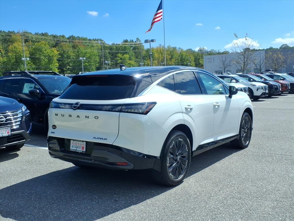 Everest White Pearl Tricoat/Super Black 2025 Nissan Murano Platinum AWD 9-Speed Automatic I4 9-Speed Automatic, AWD, Check out this 2025 Nissan Murano in Everest White Pearl Tricoat/Super Black with Graphite Leather, No Money Down / $0 Down. 21/27 City/Highway MPG Additional costs include destination, dealer installed options Premium Care, sales tax, tags and dealer processing fee of $799. Additional rebates may apply. Please see dealer for details. Price does include: $500 - Nissan Conditional Offer - Military Discount. Exp. 09/30/2025
