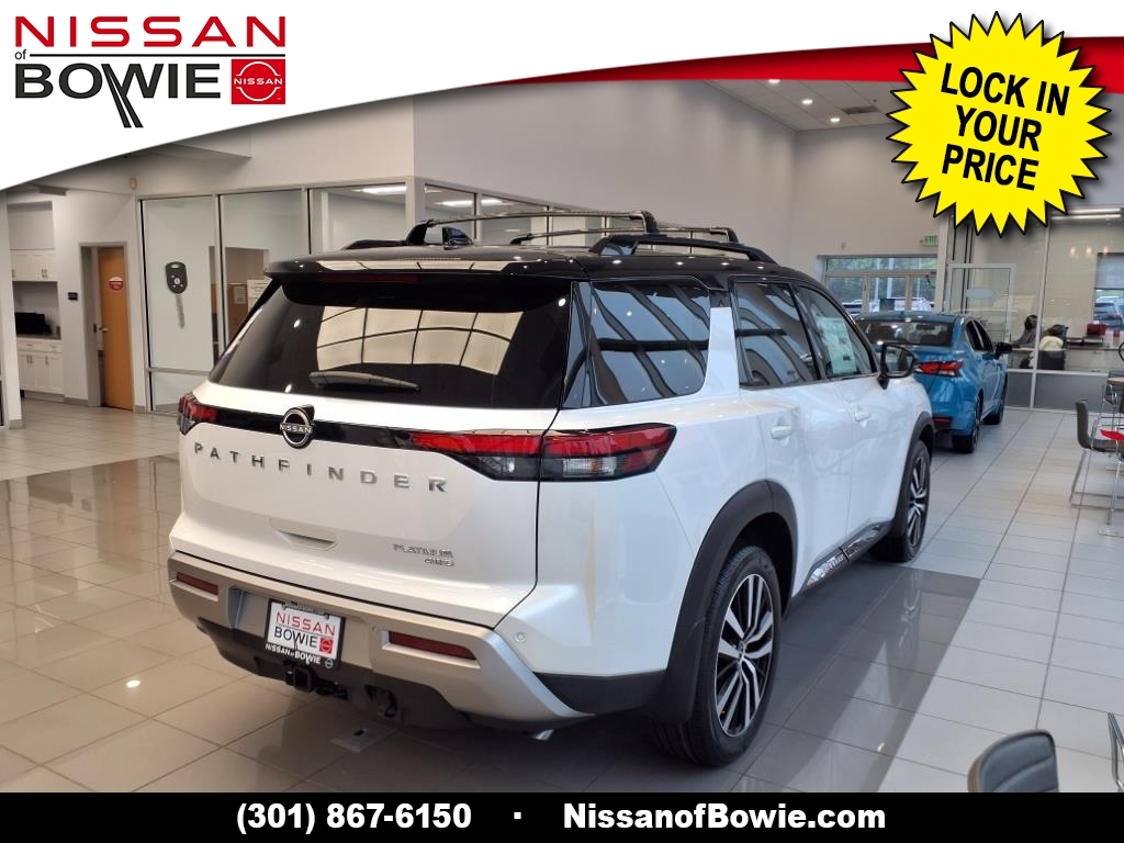 Everest White Pearl Tricoat/Super Black 2025 Nissan Pathfinder Platinum 4WD 9-Speed Automatic 3.5L V6 DOHC 4WD, Check out this 2025 Nissan Pathfinder in Everest White Pearl Tricoat/Super Black with Chestnut Leather, No Money Down / $0 Down. Recent Arrival!