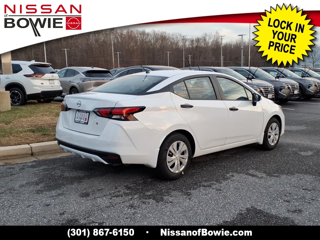 Fresh Powder 2025 Nissan Versa 1.6 S FWD CVT 1.6L I4 DOHC 16V Check out this 2025 Nissan Versa in Fresh Powder with Charcoal Cloth, No Money Down / $0 Down. 32/40 City/Highway MPG Additional costs include destination, dealer installed options Premium Care, sales tax, tags and dealer processing fee of $799. Additional rebates may apply. Please see dealer for details. Price does include: $750 - Nissan MY25 Versa Bonus Cash (All Markets) - December. Exp. 01/05/2026