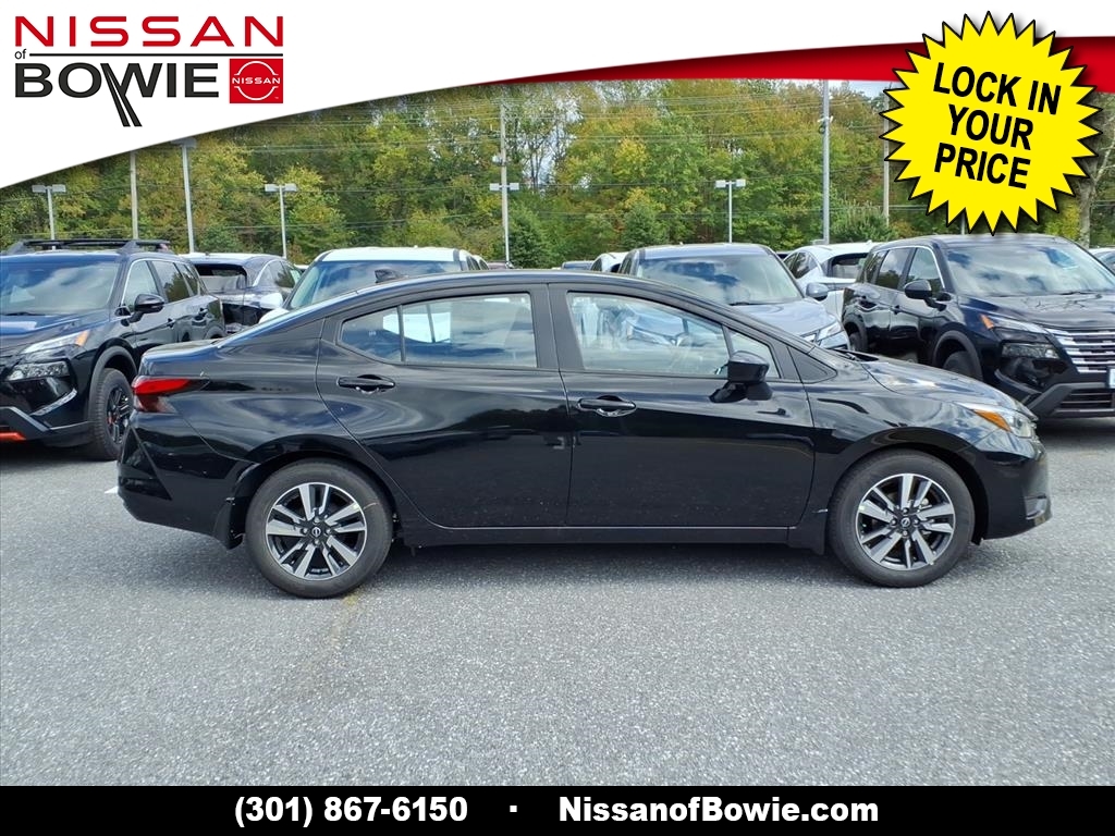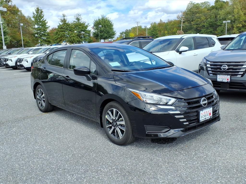 Super Black Metallic 2025 Nissan Versa 1.6 SV FWD CVT 1.6L I4 DOHC 16V Check out this 2025 Nissan Versa in Super Black Metallic with Graphite Cloth, No Money Down / $0 Down. Recent Arrival! 32/40 City/Highway MPG