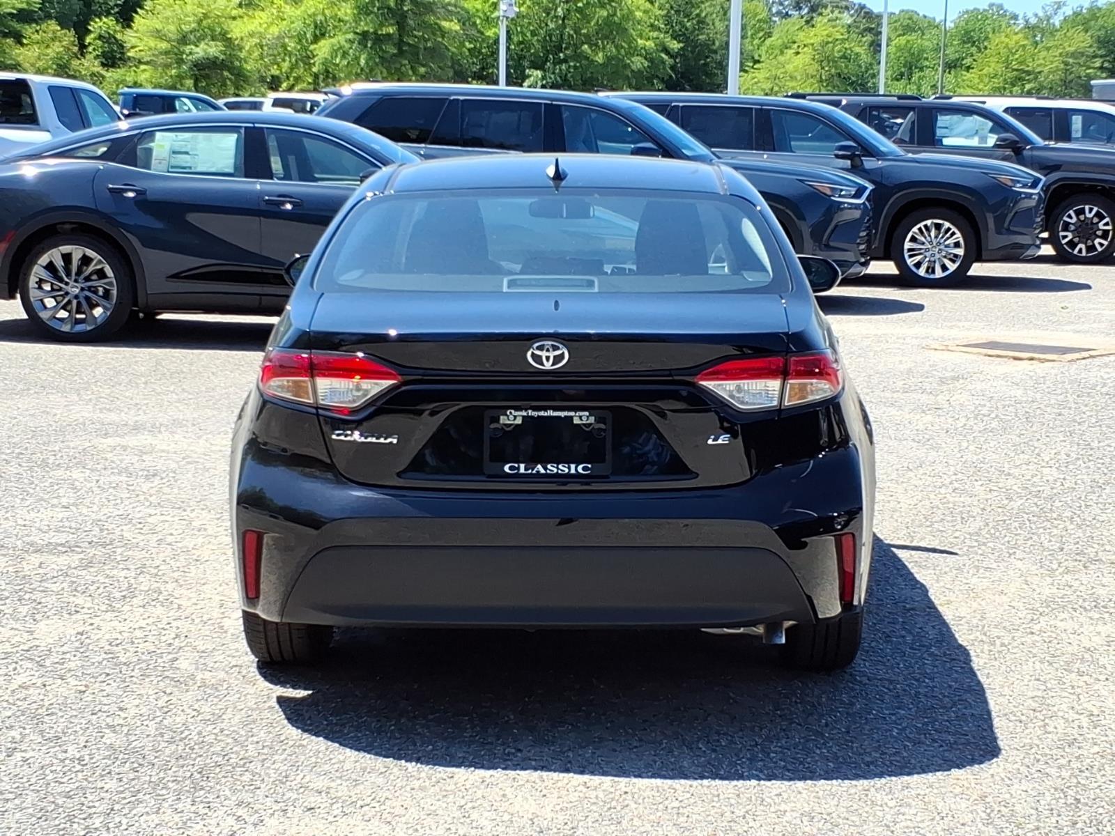 This New 2026 Toyota Corolla LE, is Midnight Black Metallic in color with an Black interior. Stock Number TP446640. You can connect with us by calling 757-838-5000 Important Package and Feature Information Convenience Unresponsive driver assistant - a reaction to inaction. Maybe you fell asleep. Maybe you lost consciousness. No matter how it happens, Unresponsive driver assistant works to help lessen the danger when it does. It detects prolonged driver unresponsiveness, automatically bringing the vehicle to a stop and turning on the hazard lights. If equipped, emergency services will also be contacted. Unresponsive driver assistant is safety that never sleeps.Safety and Security Hands-on cruise control. Set it and forget it. Road trips used to be stressful. Cruise control only managed speed, but not distance or safety. Now, with hands-on cruise control, simply set your desired speed and let sensor technology maintain a safe distance between you and surrounding vehicles. It slows you down; speeds you up and even keeps you in your own lane. Meet your ultimate co-pilot with hands-on cruise control. Forward collision mitigation - Forward thinking. You look away for just a second and suddenly the vehicle in front of you has stopped. Thats when the forward collision mitigation system comes to life. When it senses an impending impact, it will activate a combination of features to help prevent or reduce the severity of an accident. Forward collision mitigation is always looking ahead. Pedestrian impact prevention - An extra step toward safety. Pedestrians dont always stop, look, and listen, but with Pedestrian Impact Prevention, your vehicle is equipped to better see them and avoid them. This system constantly monitors the road ahead to identify and track pedestrians. It projects that image to an interior display screen, AND should an impact become likely, Pedestrian impact prevention takes steps to avoid a collision.Technology and Telematics Apple CarPlay/Android Auto smart device wireless mirroring 50 STATE EMISSIONS, MIDNIGHT BLACK METALLIC, BLACK, FABRIC SEAT TRIM, ALL WEATHER FLOOR LINER PACKAGE: TUB STYLE (TMS) At Classic Toyota Hampton, were here to S